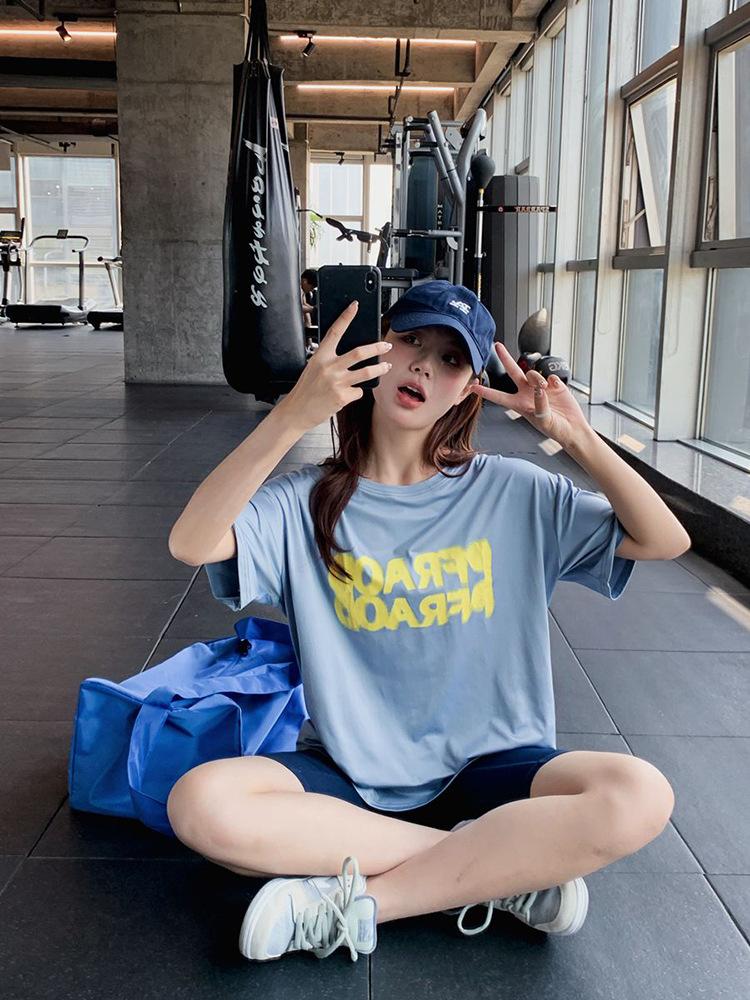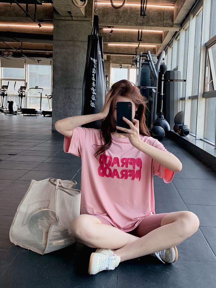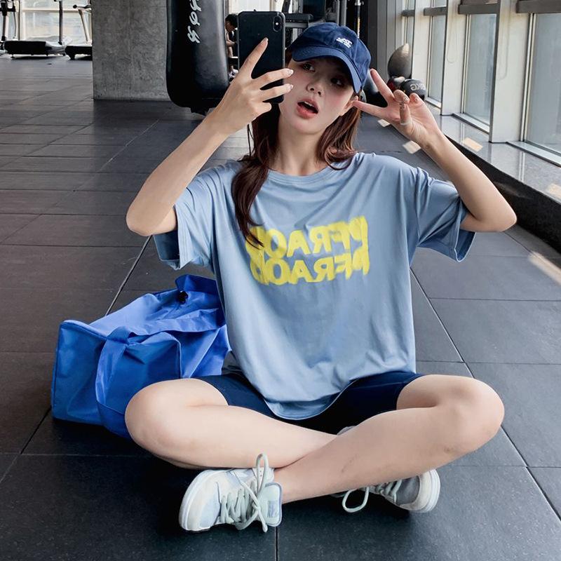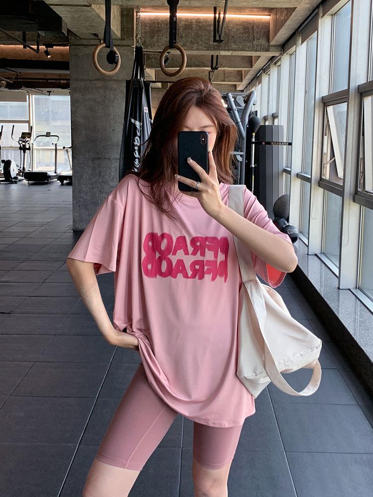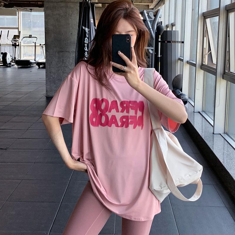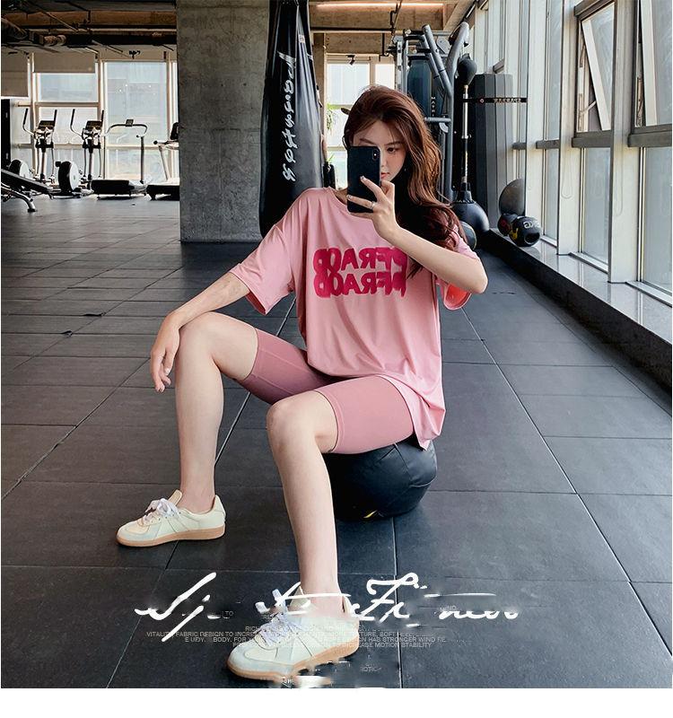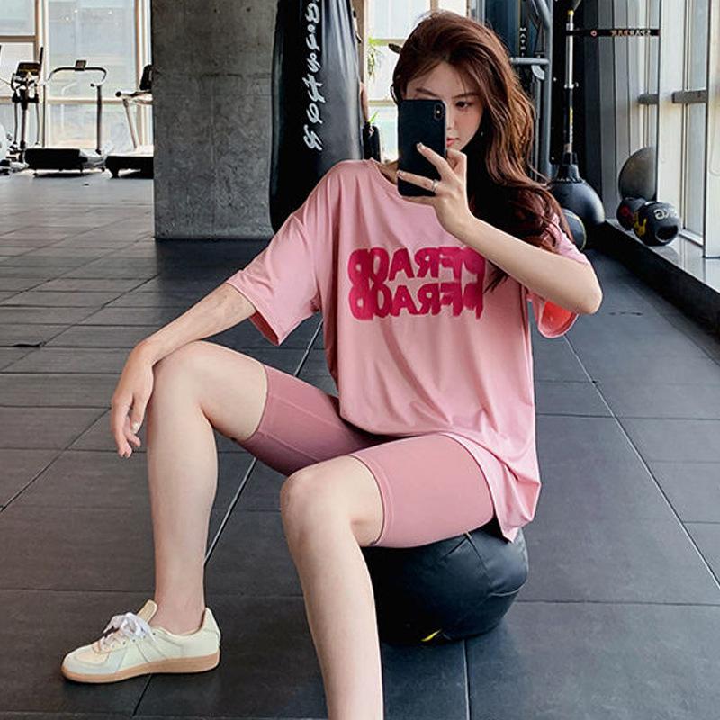 Traje de Yoga Fitness de Verano para Chica Gorda Talla Grande que Cubre las Caderas, Delgado de Manga Corta Profesional para Correr al Aire Libre, Traje Deportivo