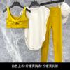 White top + lemon yellow bra + lemon yellow trousers, White top + hawaiian green bra + hawaiian green trousers...