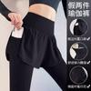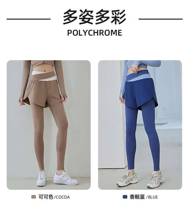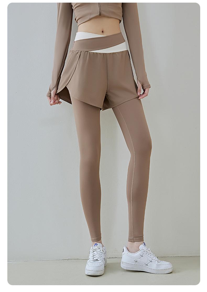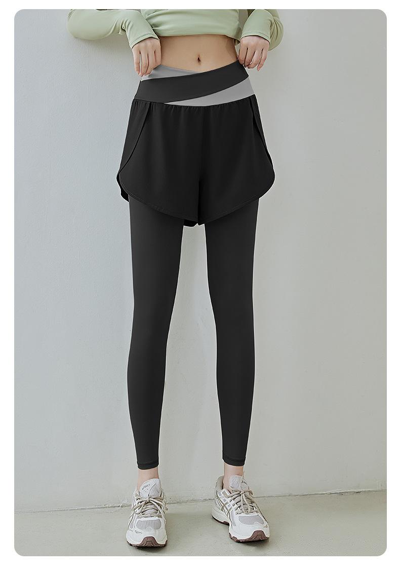 Pantalones de Yoga Color-Block con Bolsillos Incorporados, Control de Abdomen de Cintura Alta, Pantalones Deportivos Faux de Dos Piezas, Pantalones Largos, Levanta Glúteos, Pantalones de Fitness de Secado Rápido para Mujer