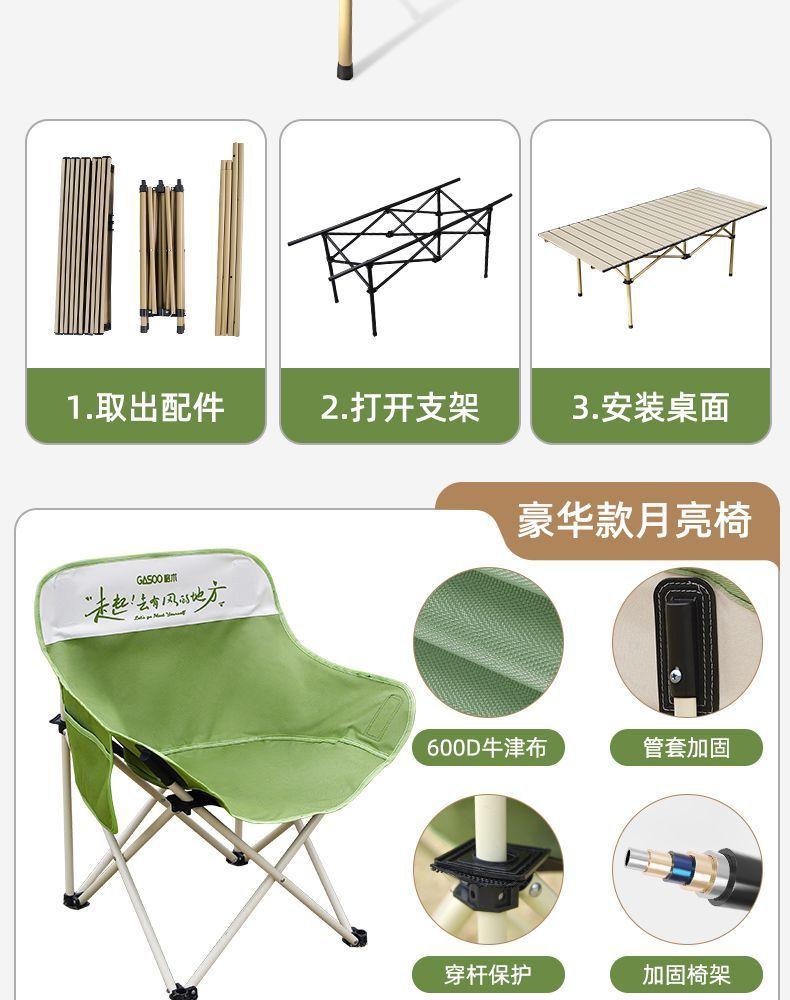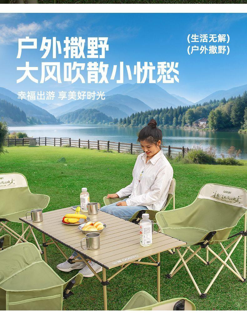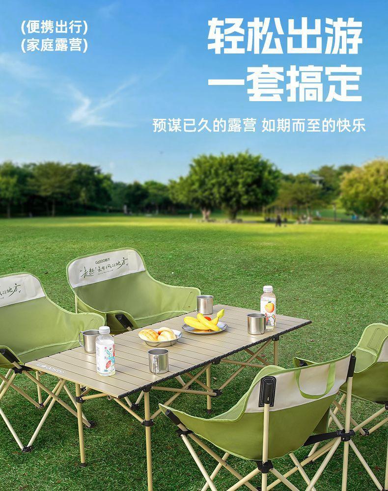 Mesa y Sillas de Camping, Silla Luna, Portátil para Exterior Todo en Uno Plegable Mesa y Sillas Enrollables Tipo Huevo, Equipo Completo para Picnic y Camping