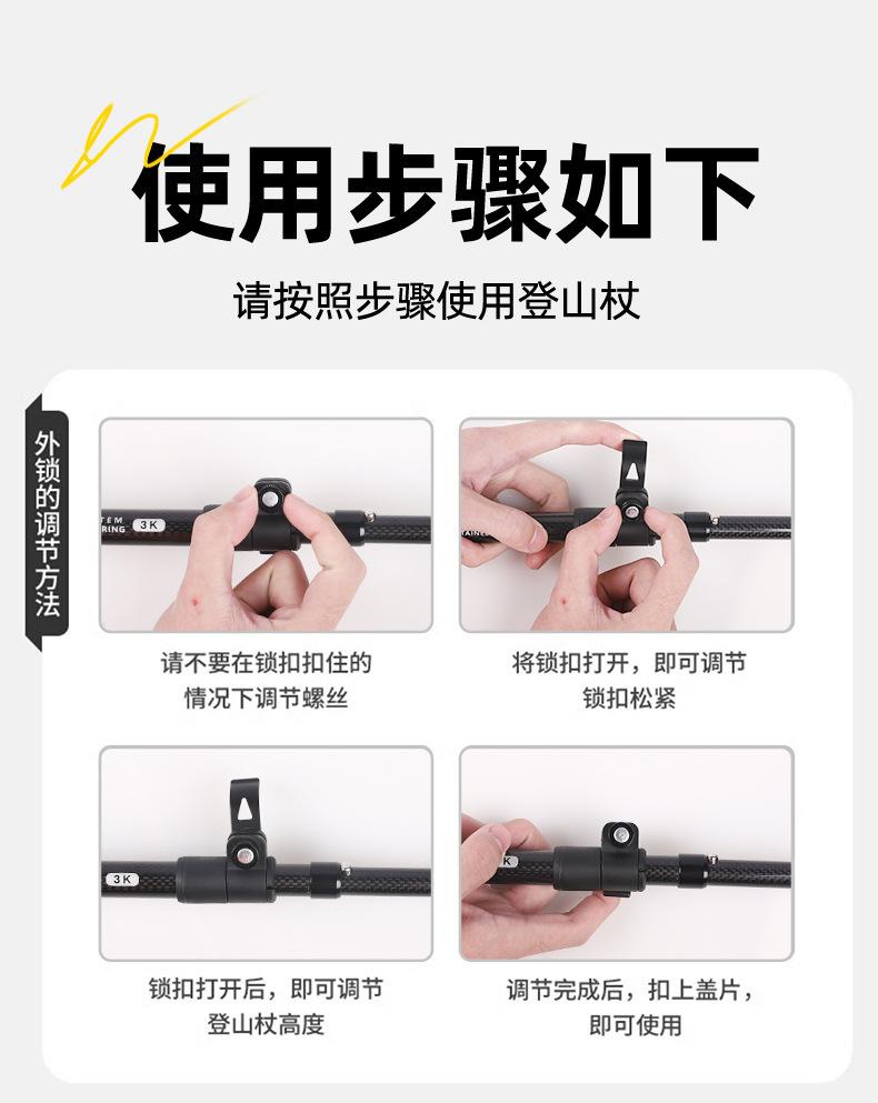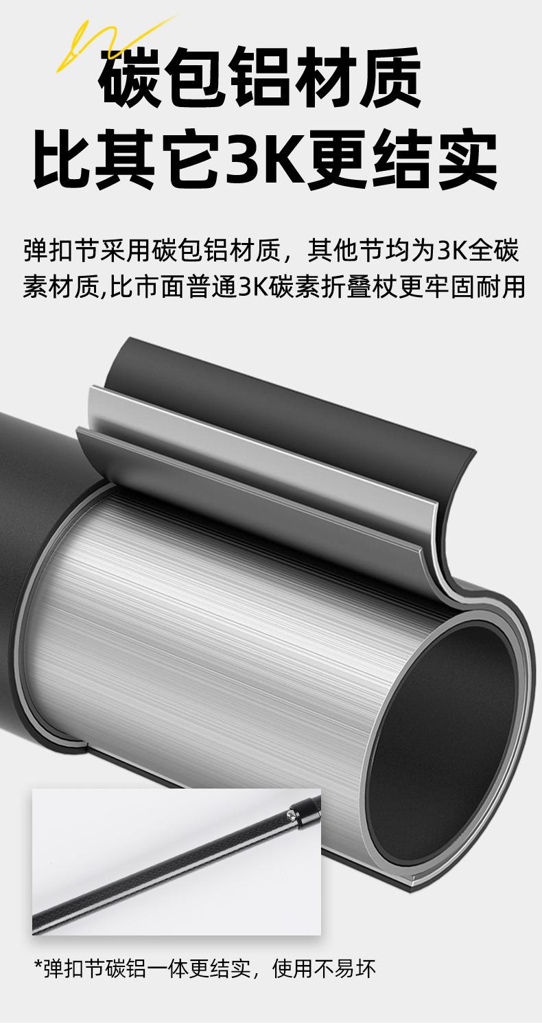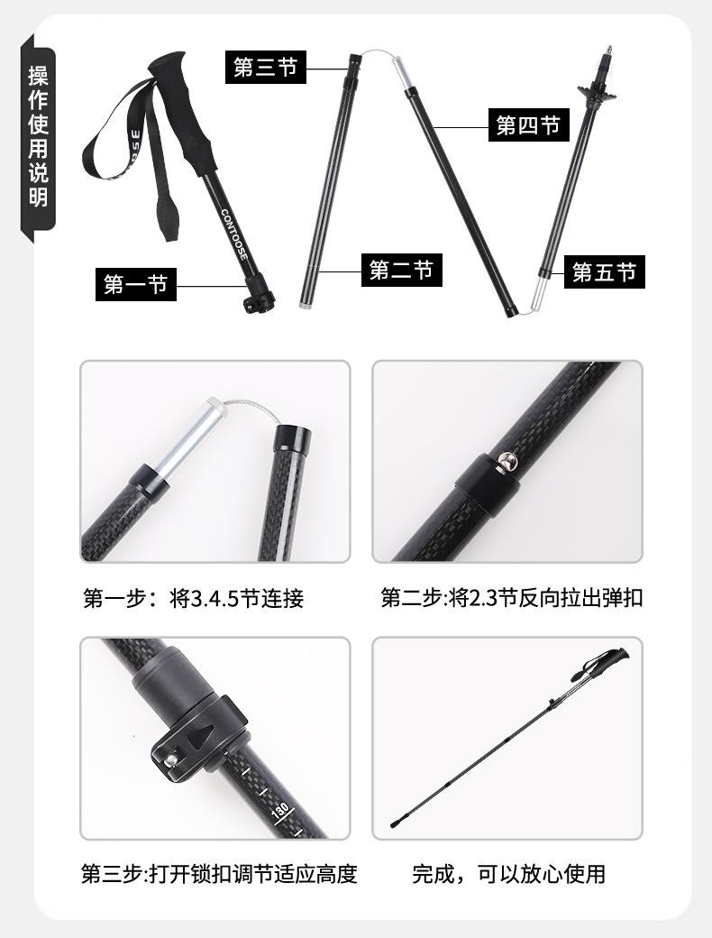 Bastón de Trekking de Fibra de Carbono 3K Ultraligero Portátil Bastón para Caminar para Exteriores Plegable Antideslizante Bastón para Caminar Bastón de Senderismo Multifuncional