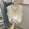 Otoño Nuevo Chaleco de lana fino casual a rayas con cuello en V para mujer, chaleco exterior de punto, estilo universitario retro, top corto de cintura alta