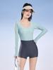 Traje de Baño de Una Pieza Estilo Coreano Adelgazante de Secado Rápido de Manga Larga Conservador Tipo Bóxer para Mujer para Surf y Snorkel Traje de Baño de Talla Grande