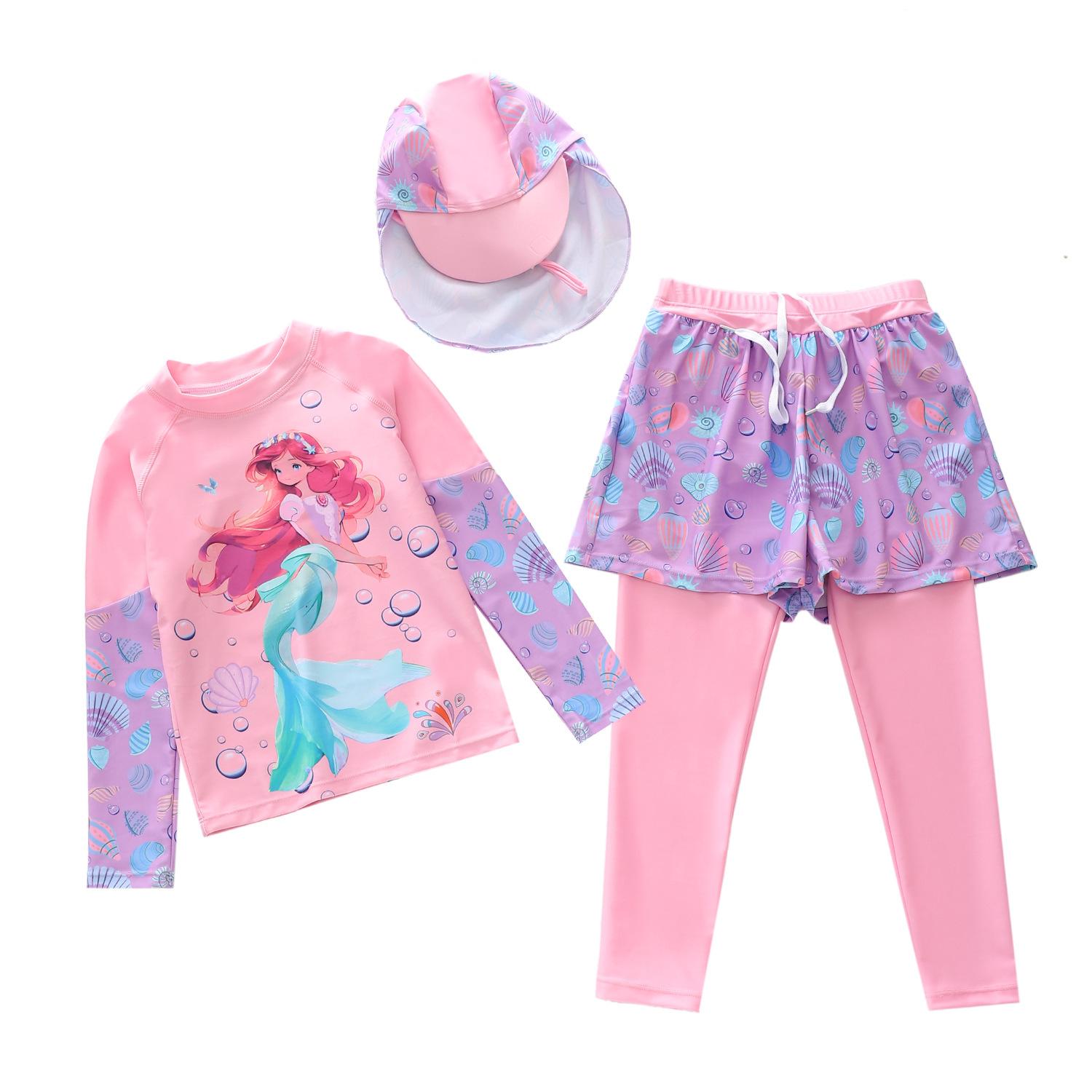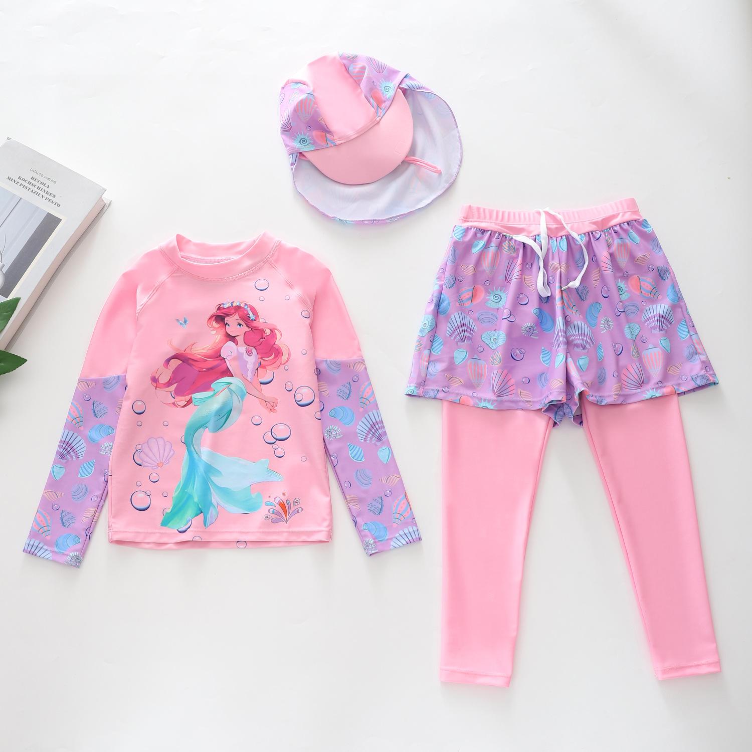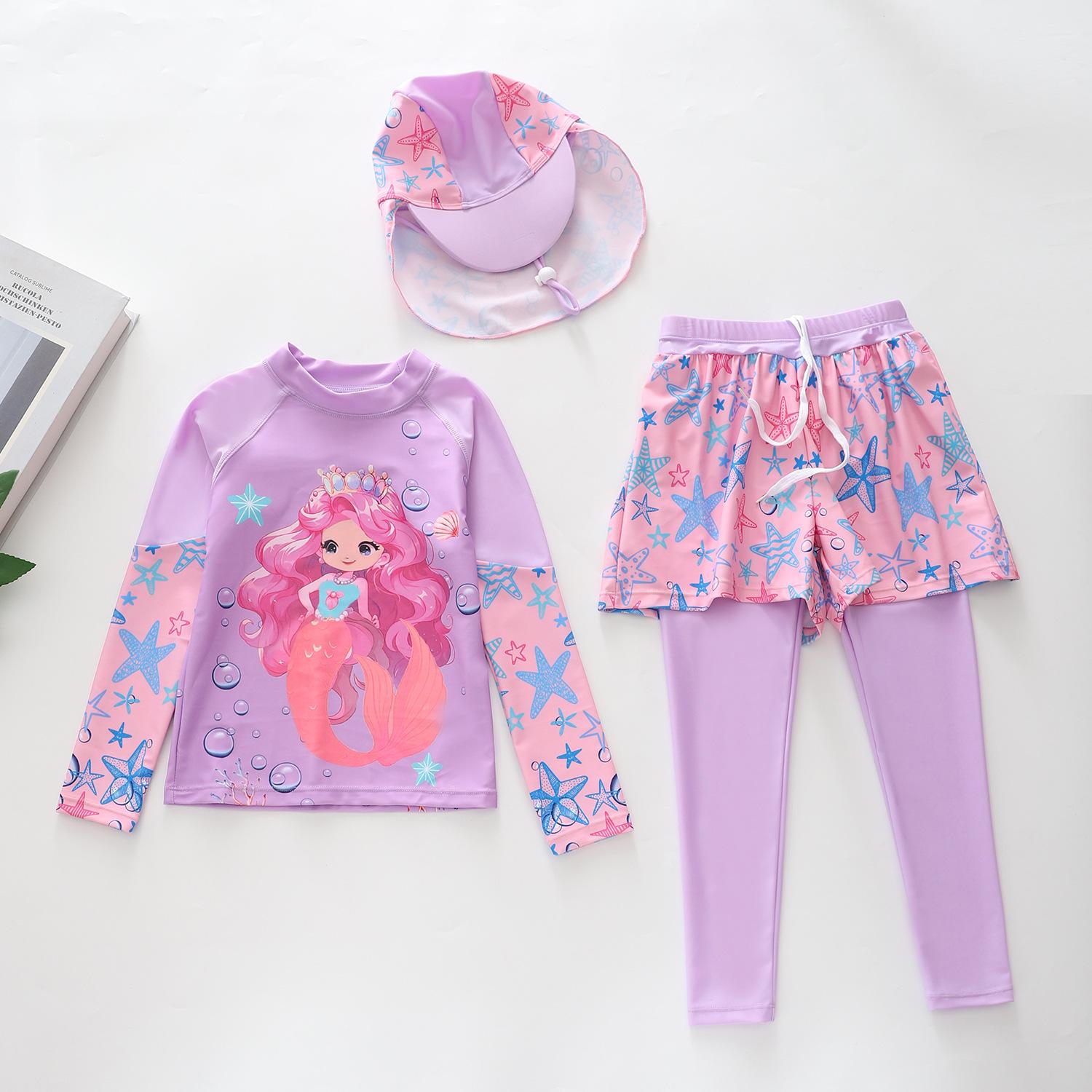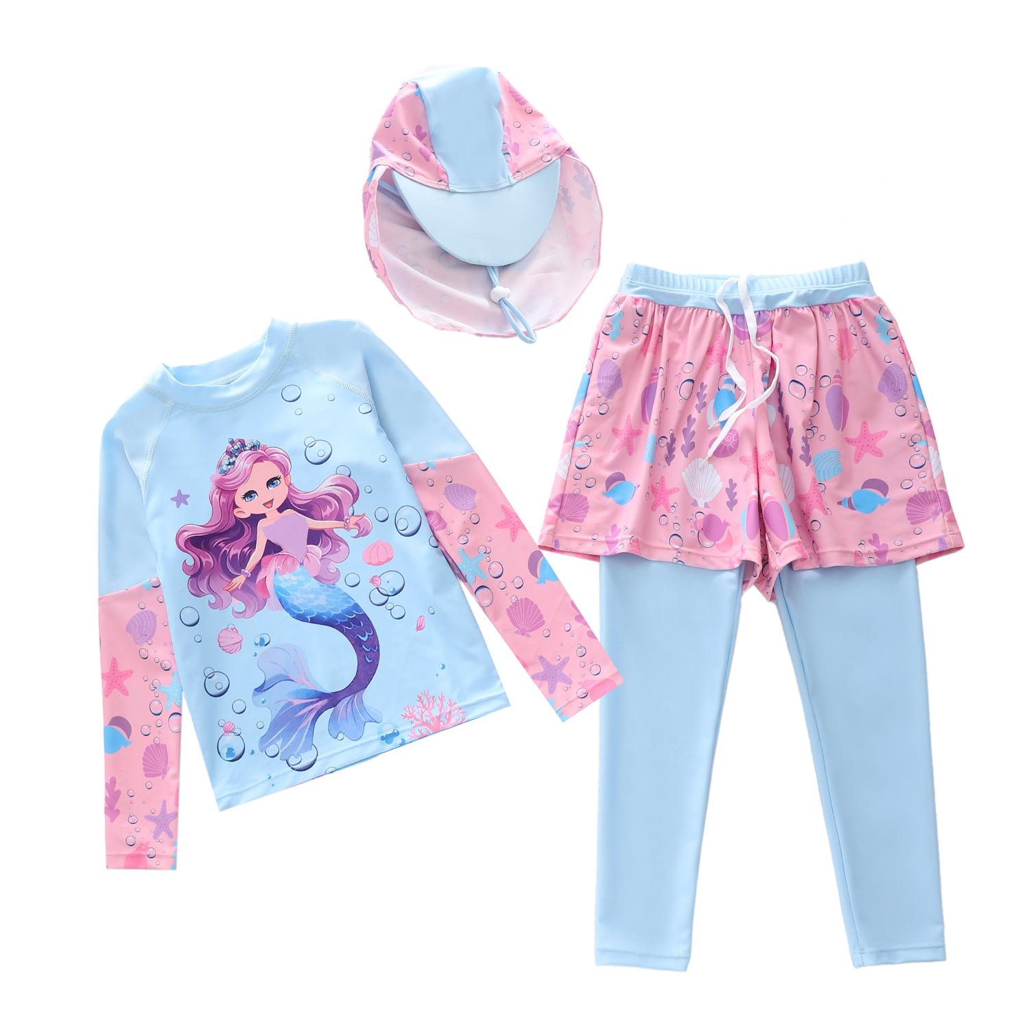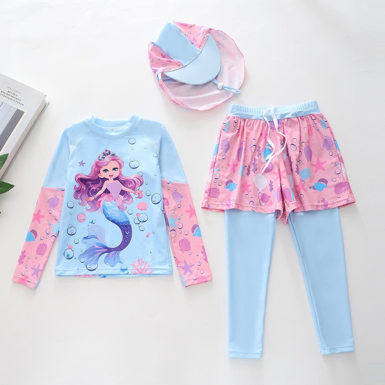 Traje de baño nuevo para niños 2024 Traje de baño dividido para niñas Pequeño Mediano y Grande Traje de baño de sirena para niños Pantalones de manga larga Gorra protectora solar Traje de baño