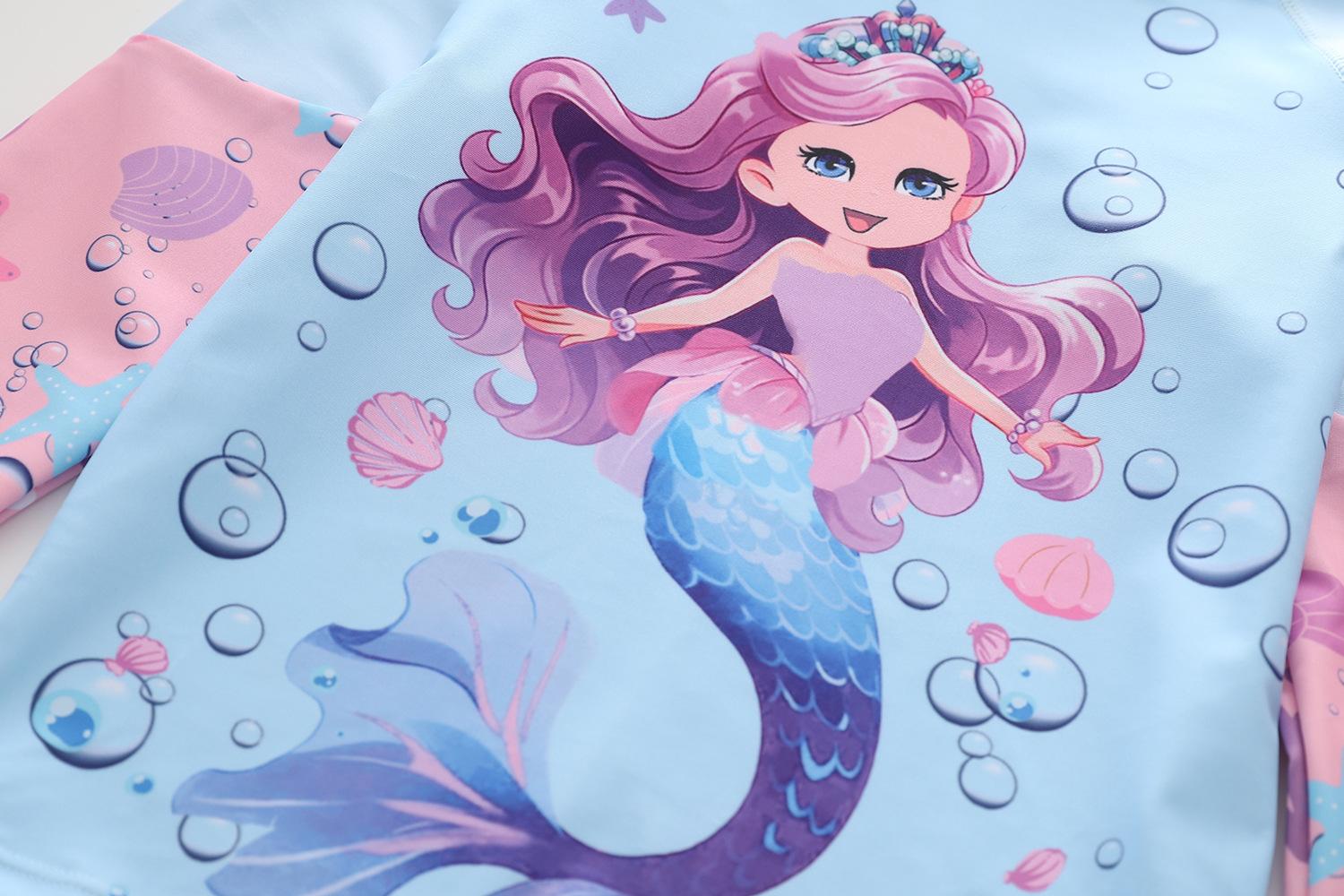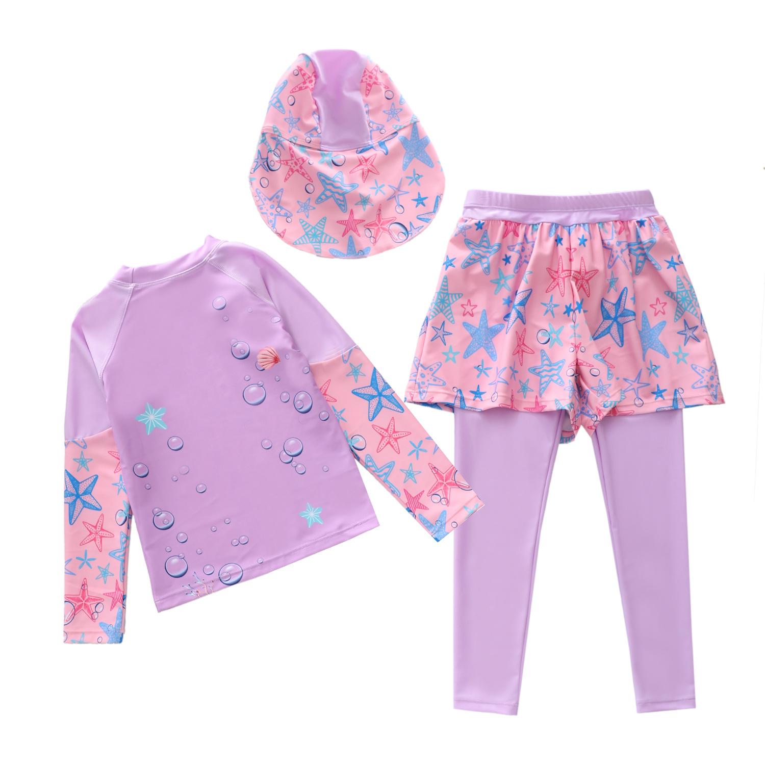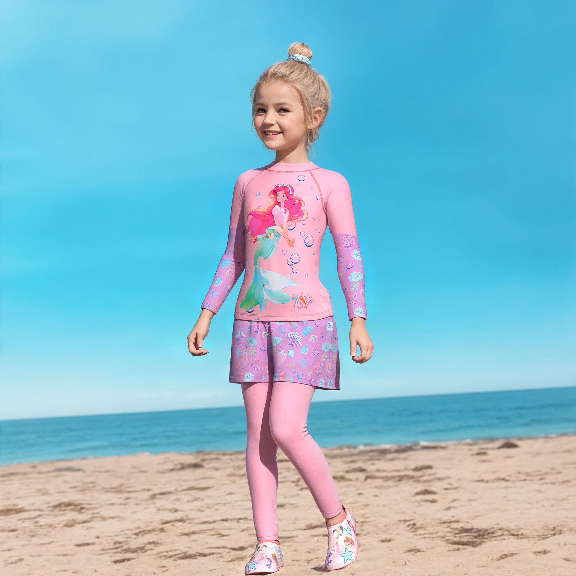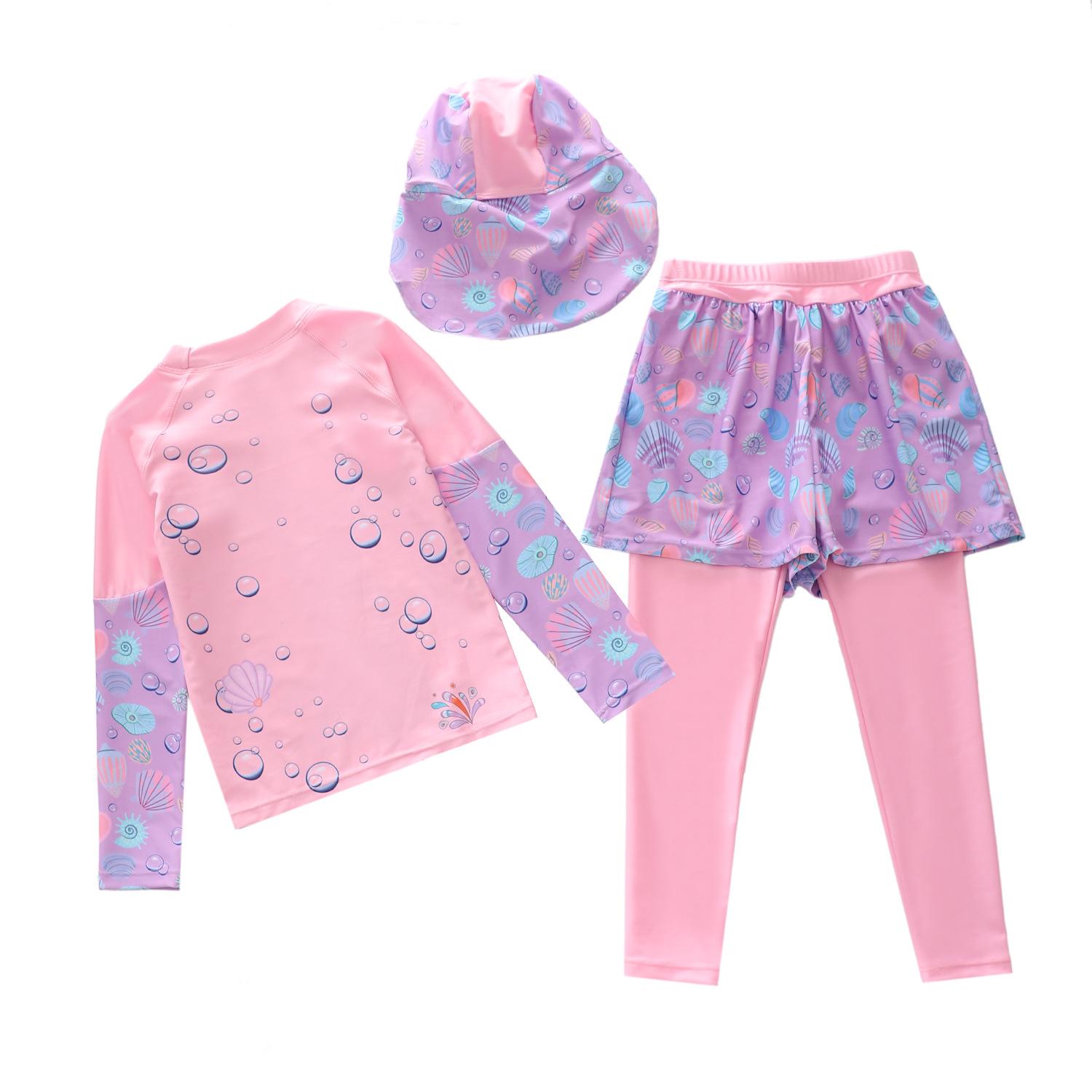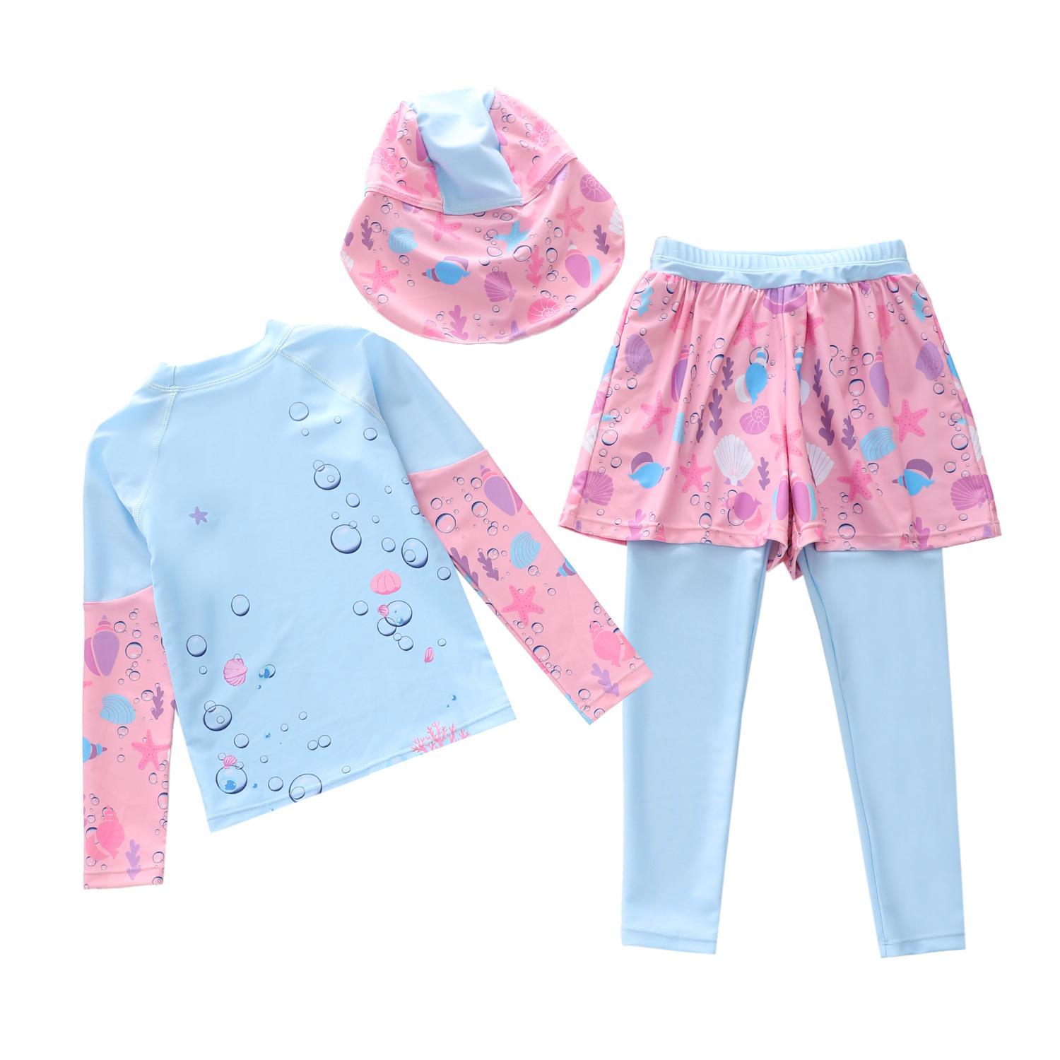 Traje de baño nuevo para niños 2024 Traje de baño dividido para niñas Pequeño Mediano y Grande Traje de baño de sirena para niños Pantalones de manga larga Gorra protectora solar Traje de baño