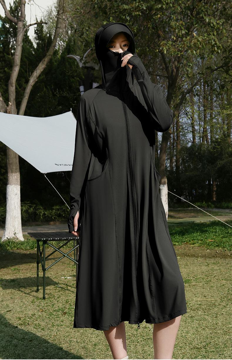 2025 Nuevo Verano Upf50+ Hilo Original Seda de Hielo Ropa de Protección Solar para Mujer de Manga Larga Negra Ala de Goma Ligera y Transpirable Ropa de Protección Solar
