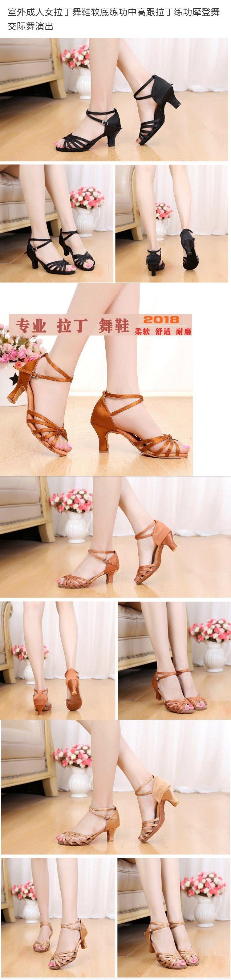 Zapatos de Baile Latino para Mujer Adulta para Exterior Suela Blanda Práctica Tacón Medio-Alto Práctica Latina Baile Moderno Baile de Salón Actuación