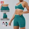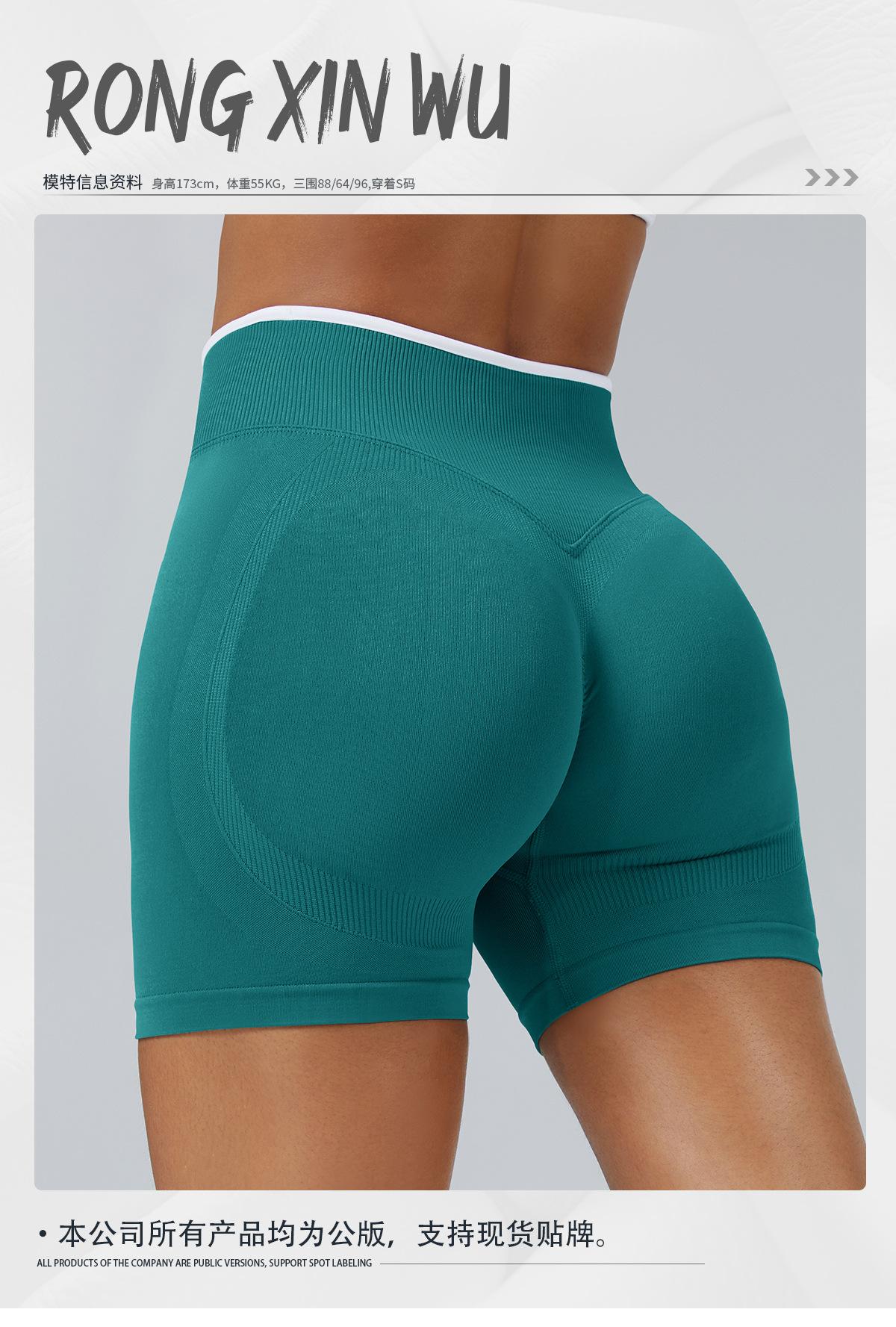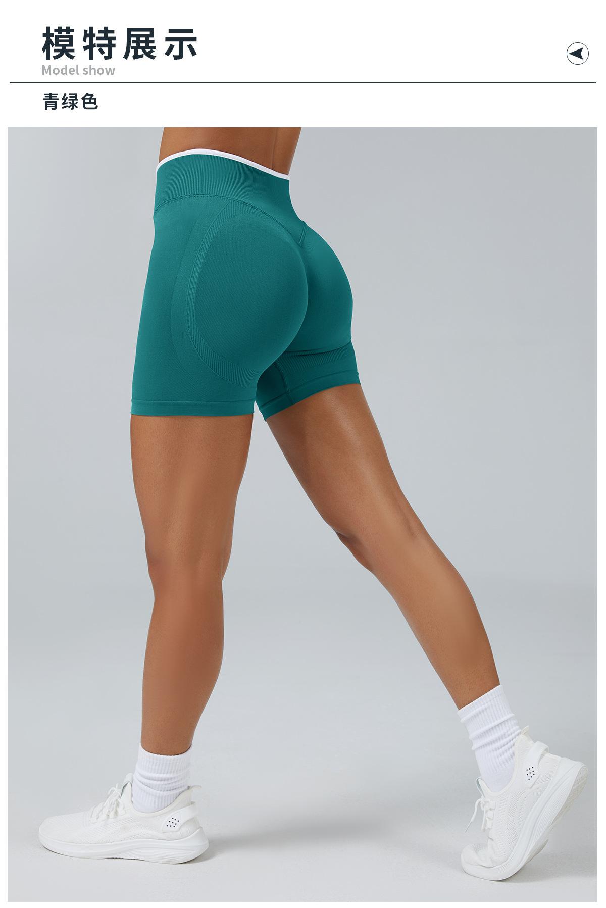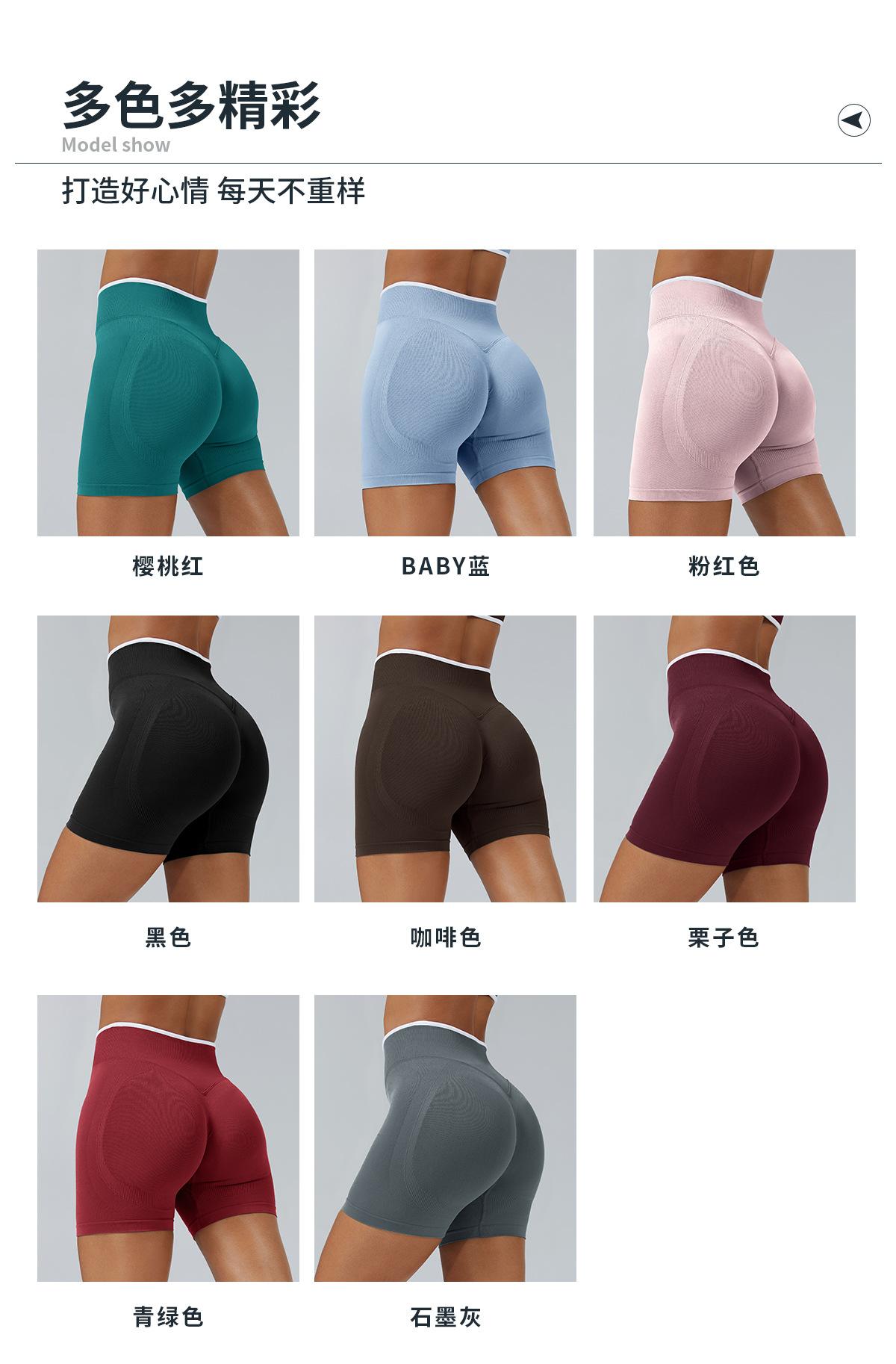 Shorts de Yoga Ajustados Sin Costuras con Bloques de Color Europeos y Americanos Transfronterizos, Levanta Glúteos Melocotón, Shorts Deportivos para Correr, Pantalones Deportivos de Fitness para Mujer
