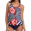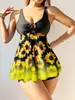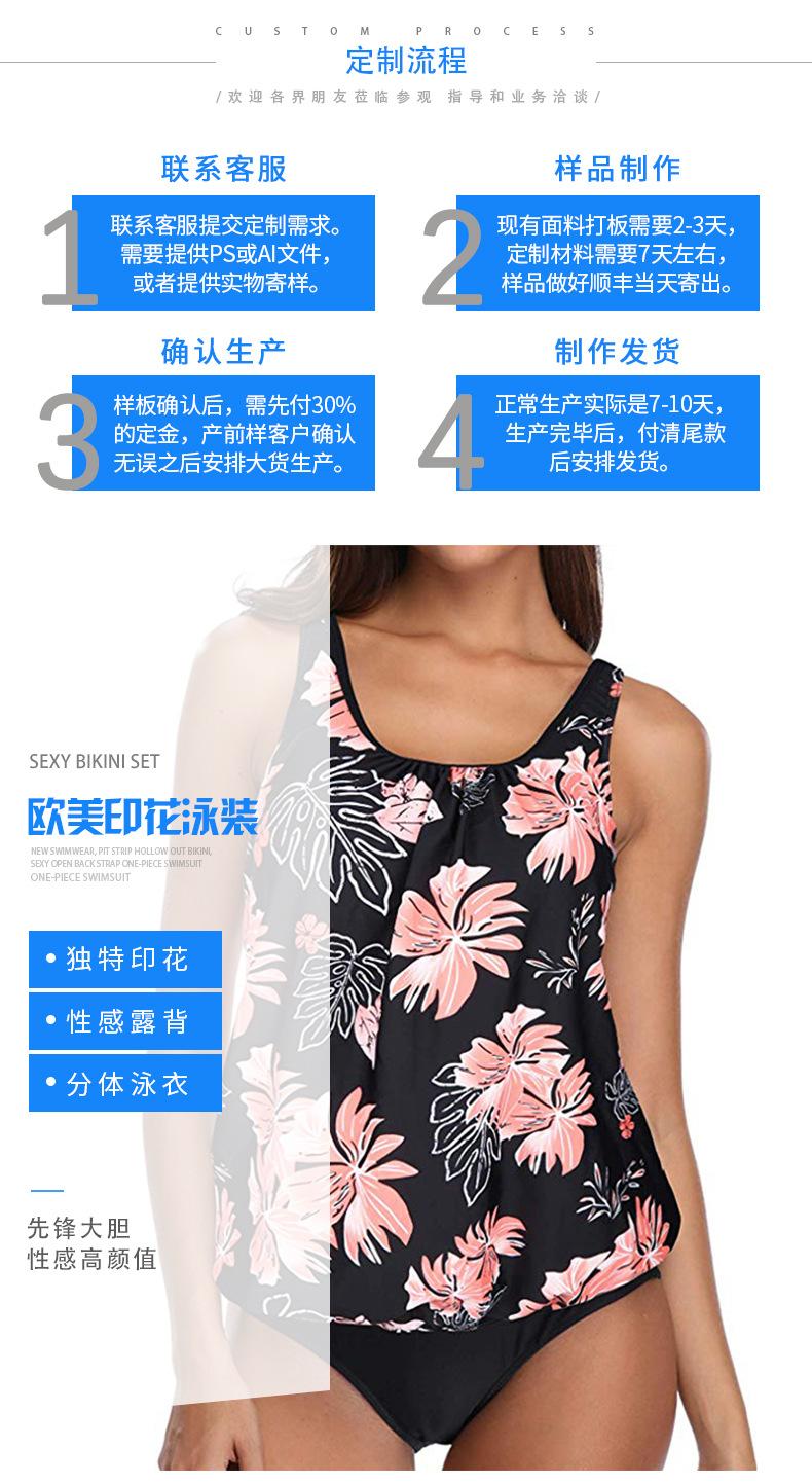 | Traje de baño con estampado transfronterizo de talla grande europeo y americano, bikini sexy con escote en V dividido, sin espalda, traje de baño con tirantes ajustable |