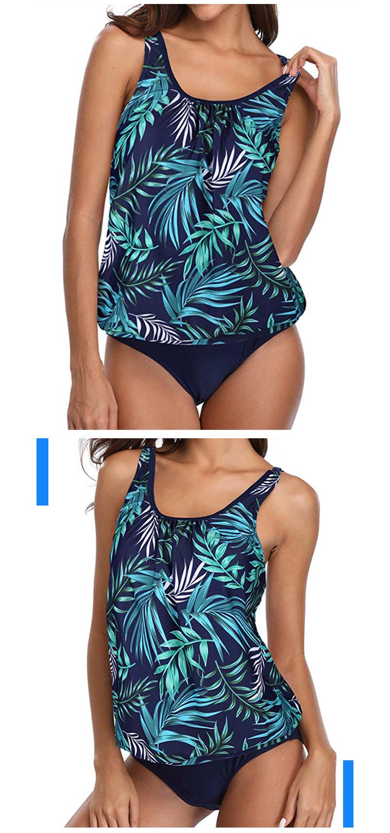 | Traje de baño bikini de gran venta transfronterizo europeo y americano con soporte de acero fruncido con estampado de leopardo dividido ajustable con doble tirante en el hombro. |