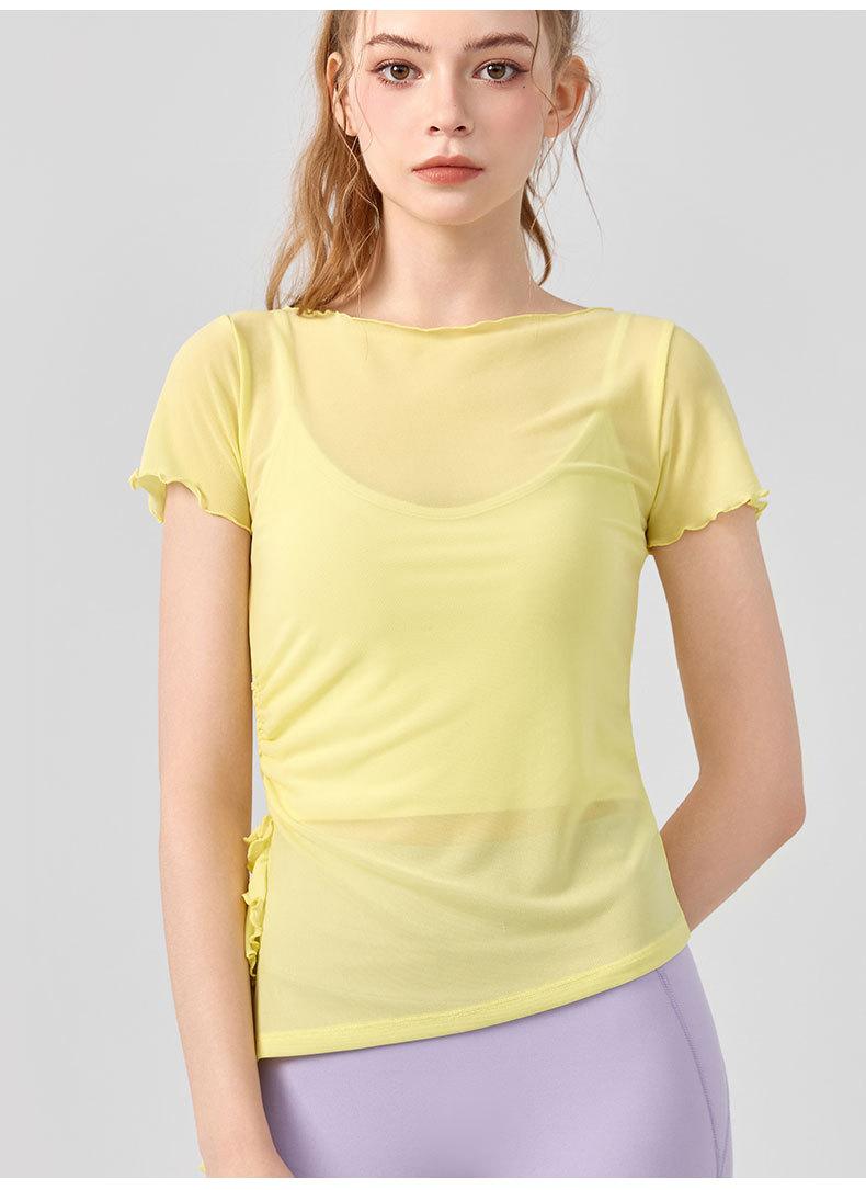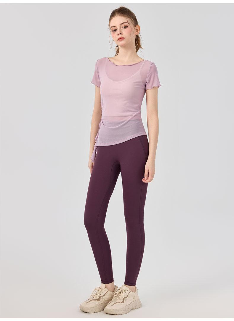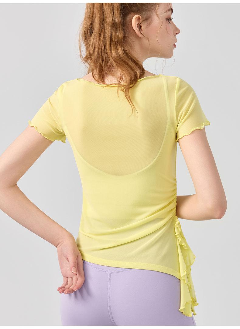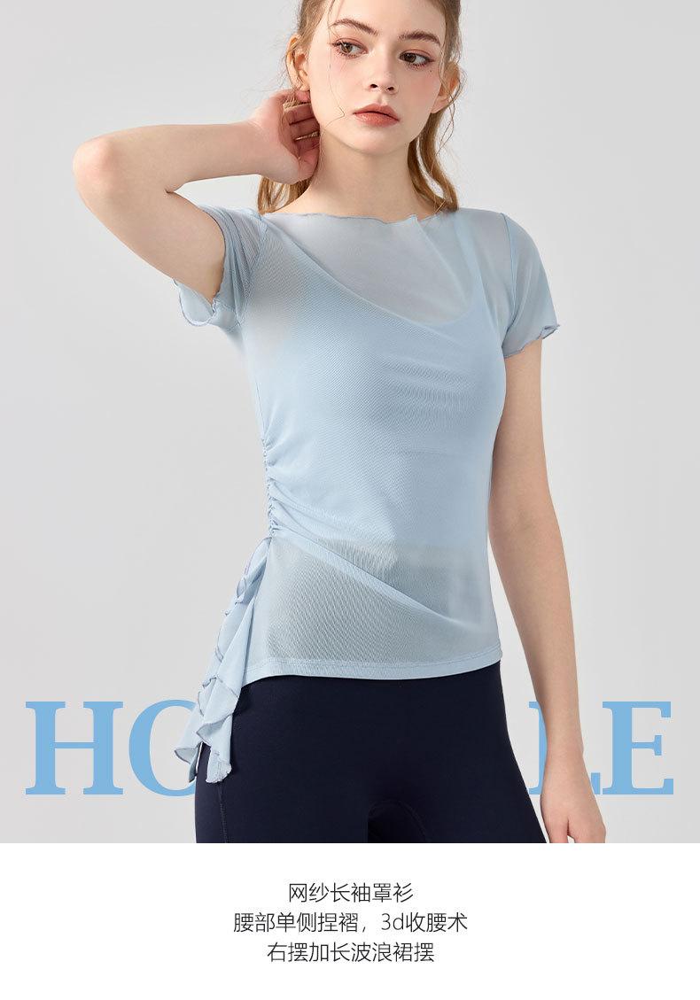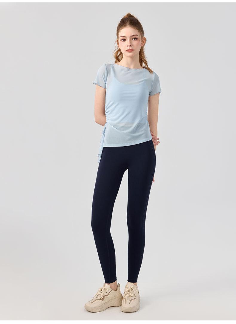 Tops de Yoga para Mujer Verano Pilates Deportes Fitness Camisetas de Manga Corta Look Adelgazante Transpirables Cubre Cintura Ropa de Yoga de Secado Rápido
