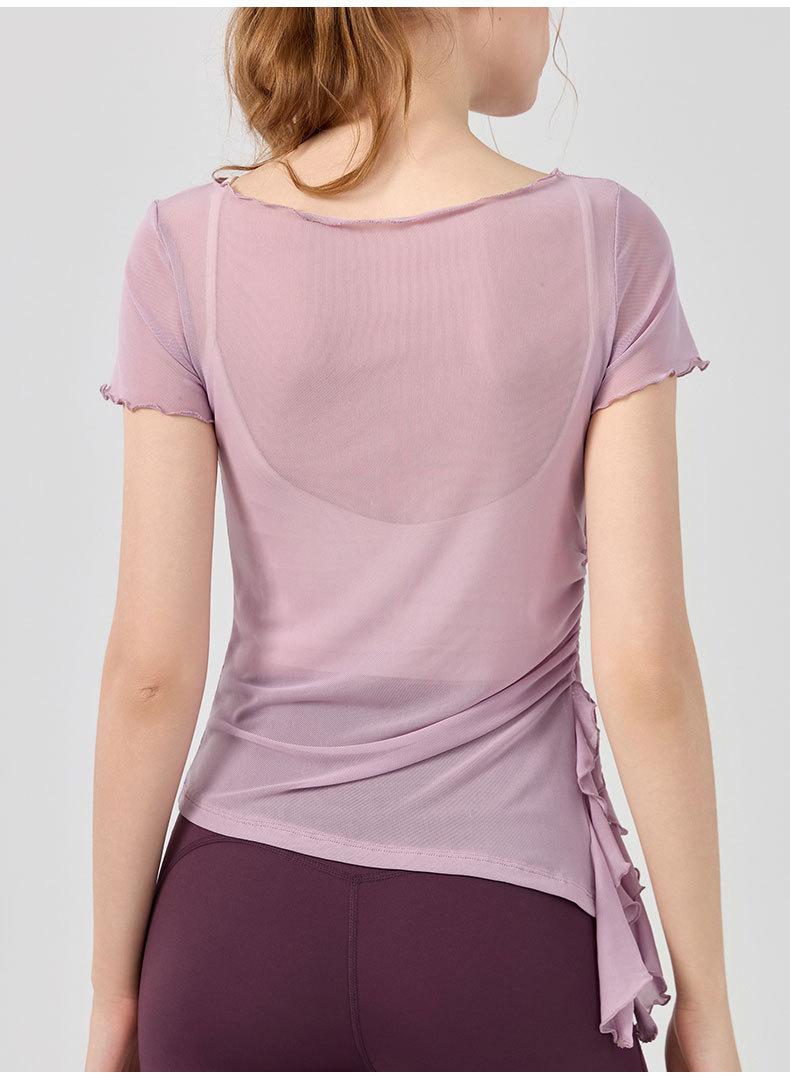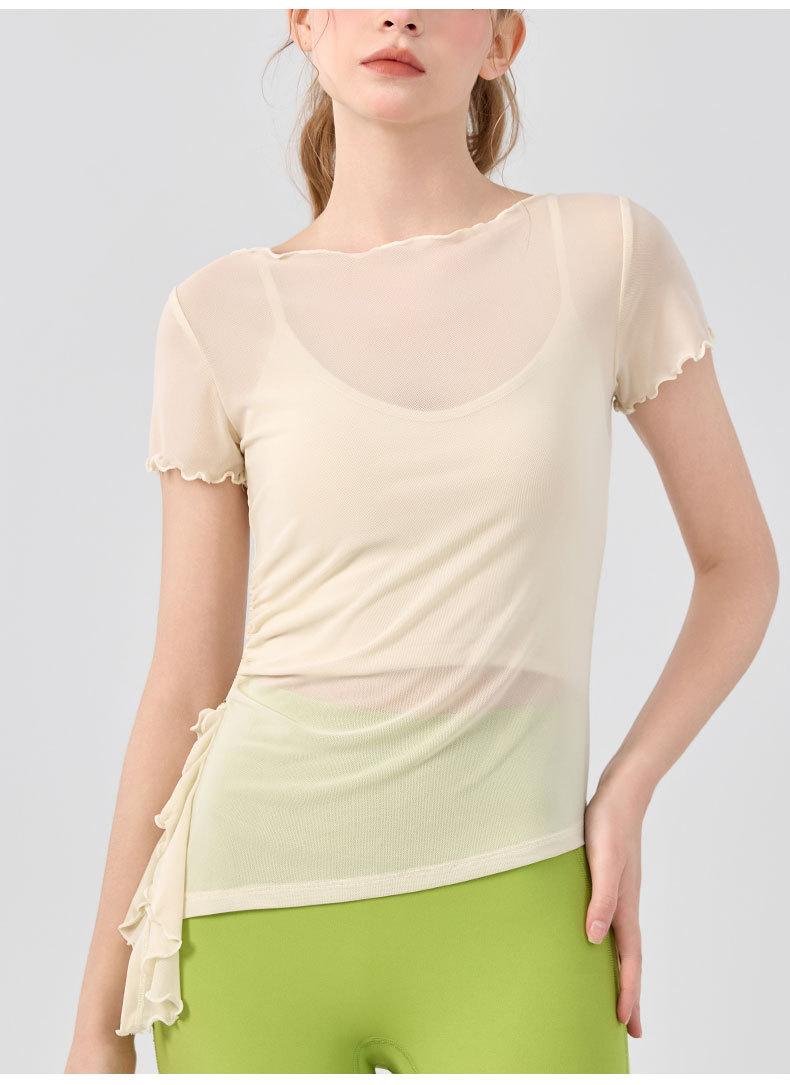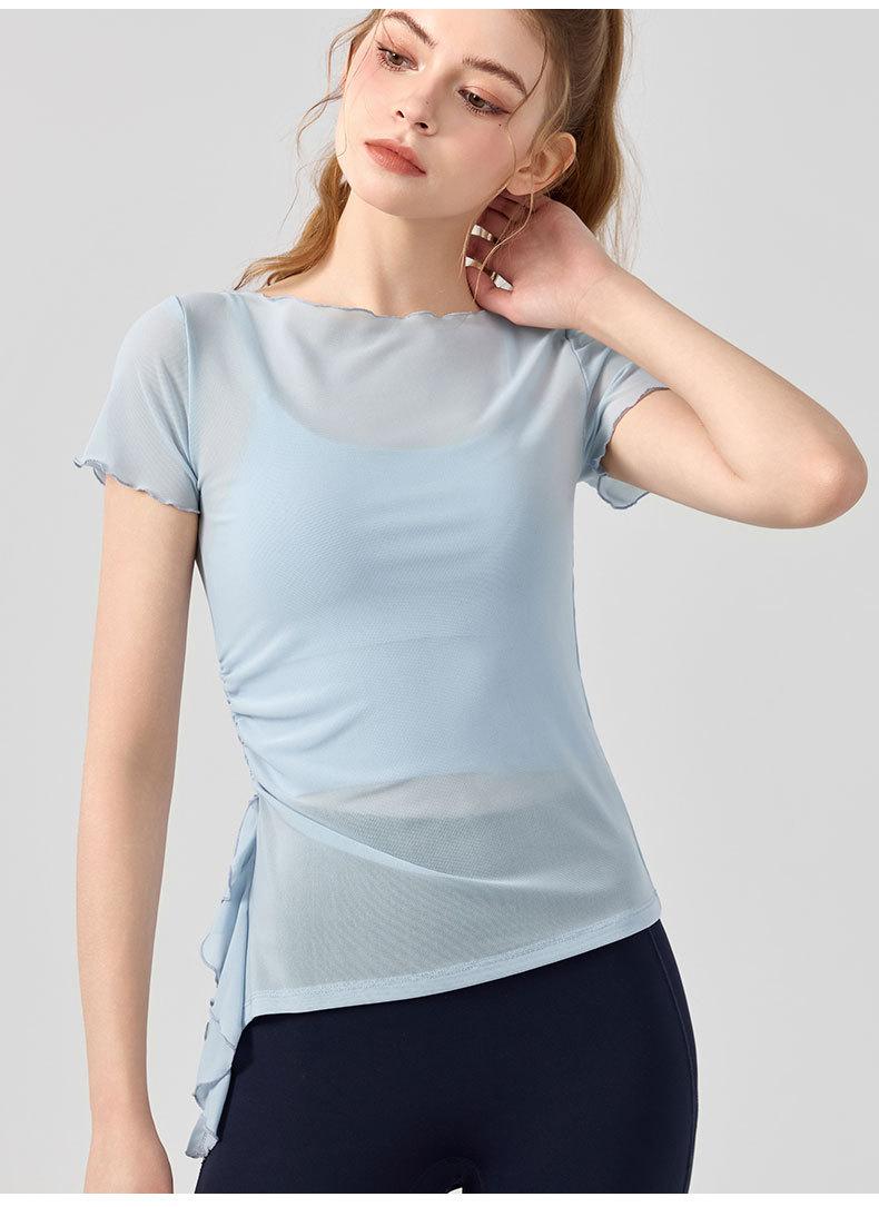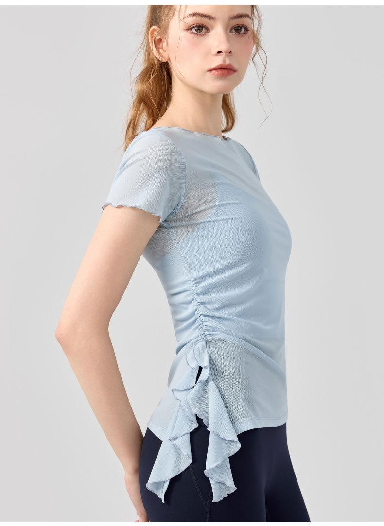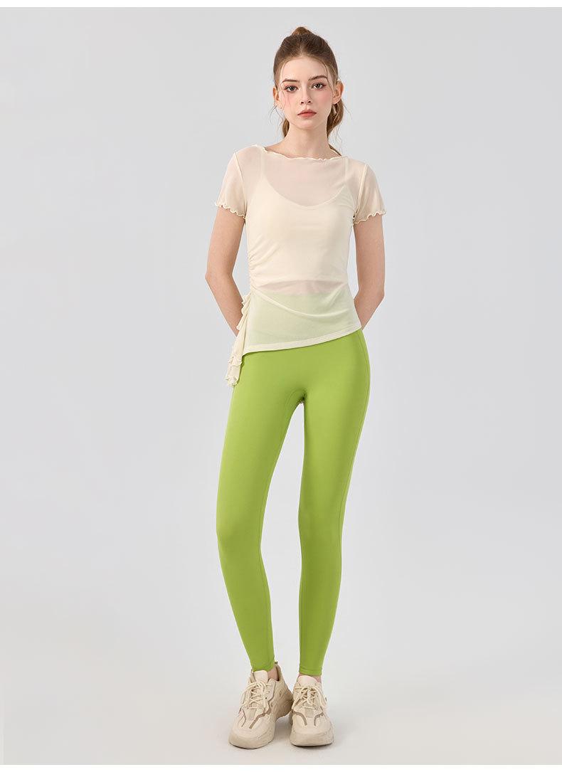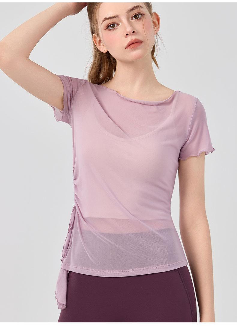 Tops de Yoga para Mujer Verano Pilates Deportes Fitness Camisetas de Manga Corta Look Adelgazante Transpirables Cubre Cintura Ropa de Yoga de Secado Rápido