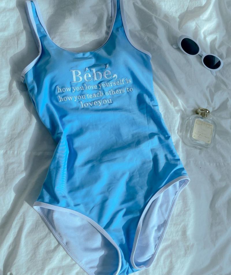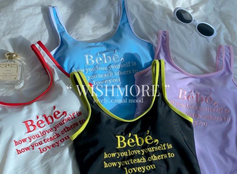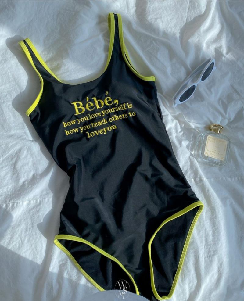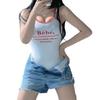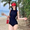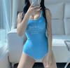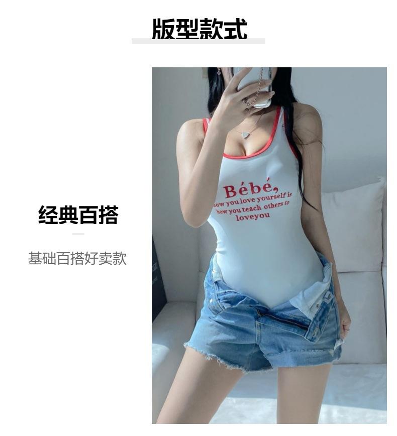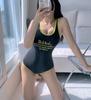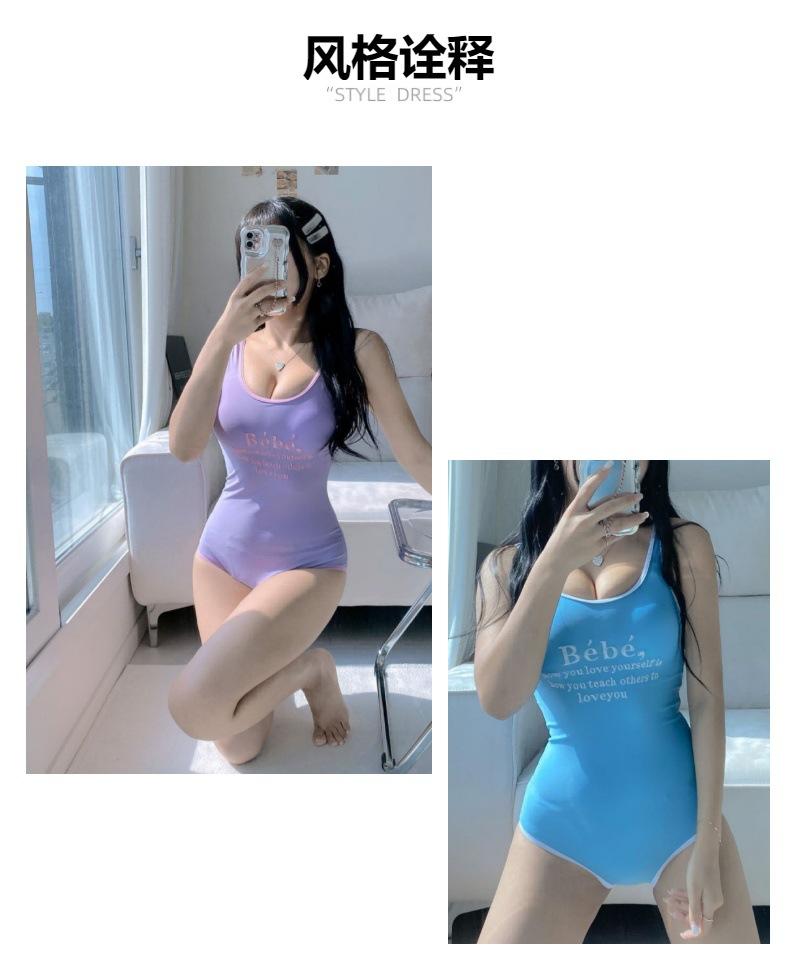 Traje de Baño Deportivo Simple con Letras Estilo Ins Coreano para Mujer, Traje de Baño de Una Pieza de Carreras de Alta Gama con Aspecto Adelgazante para Mujer