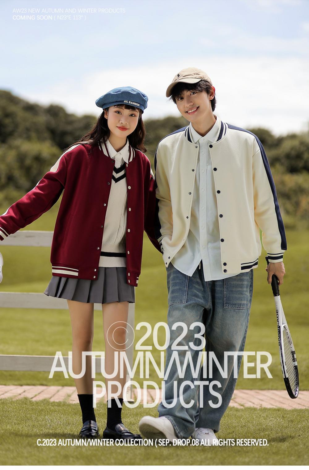 Traje de Béisbol de Color Contrastante Abrigo Estampado de Logotipo Traje Deportivo de Clase Otoño e Invierno Sudadera de Manga Larga Color Contrastante Retro Combinable Holgado