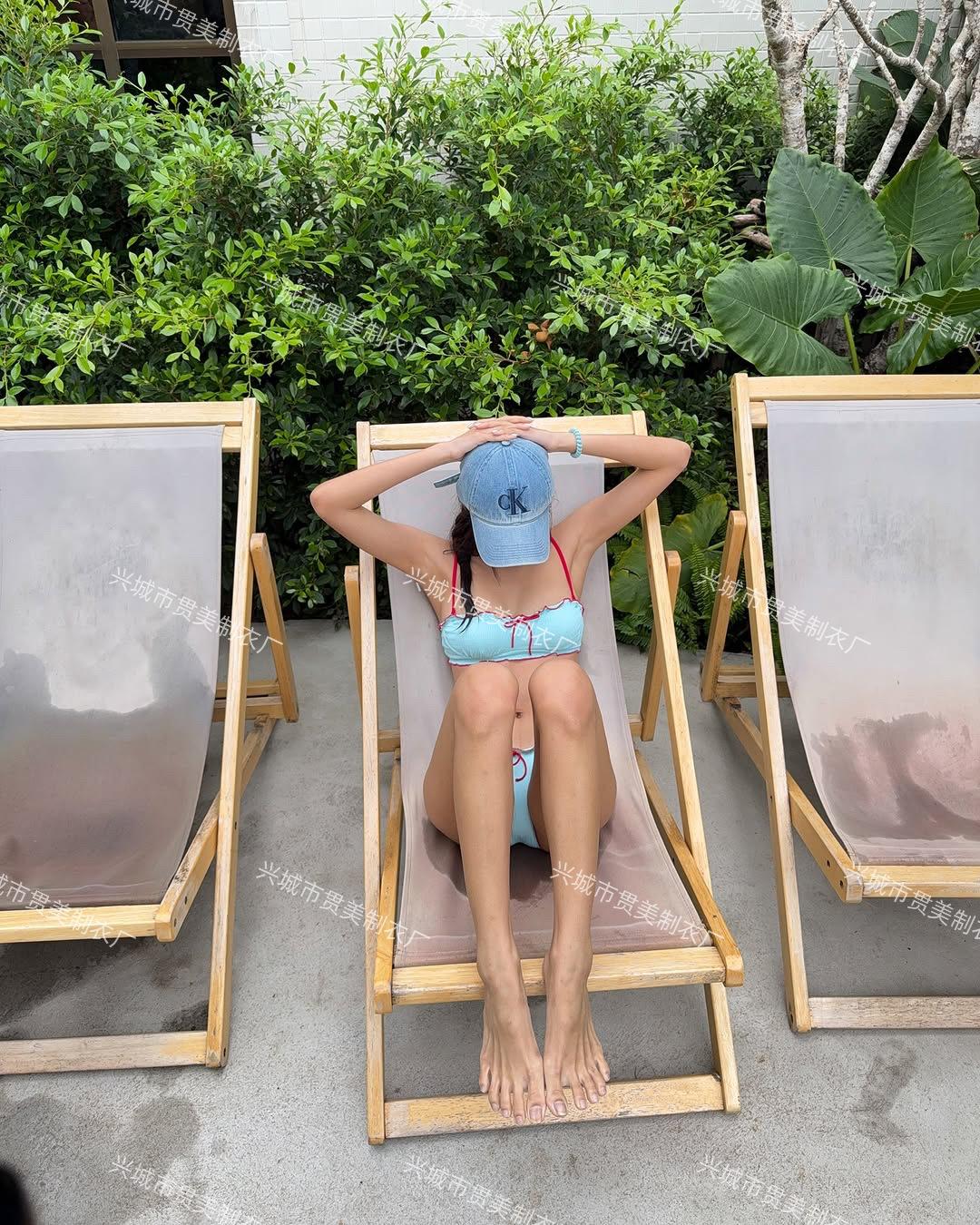 Traje de Baño Estilo Ins para Mujer Nuevo Bikini Dulce y Sexy Set de Tres Piezas Pecho Pequeño Dividido Traje de Baño para Vacaciones en la Playa Aguas Termales