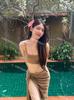 Nuevo Bikini Tubo de Color Sólido de Alta Gama Sexy Estilo Resort, Hermosa Falda Larga con Abertura Traje de Baño Dividido de Tres Piezas para Mujer