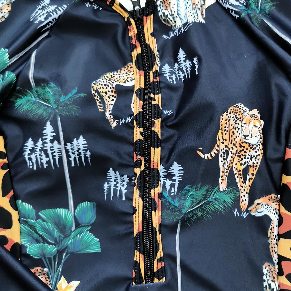 Traje de baño de una pieza de manga larga con cremallera europea y americana 2025 para mujer, traje de baño estampado de comercio exterior para surfear, Amazon al por mayor, traje de baño nuevo