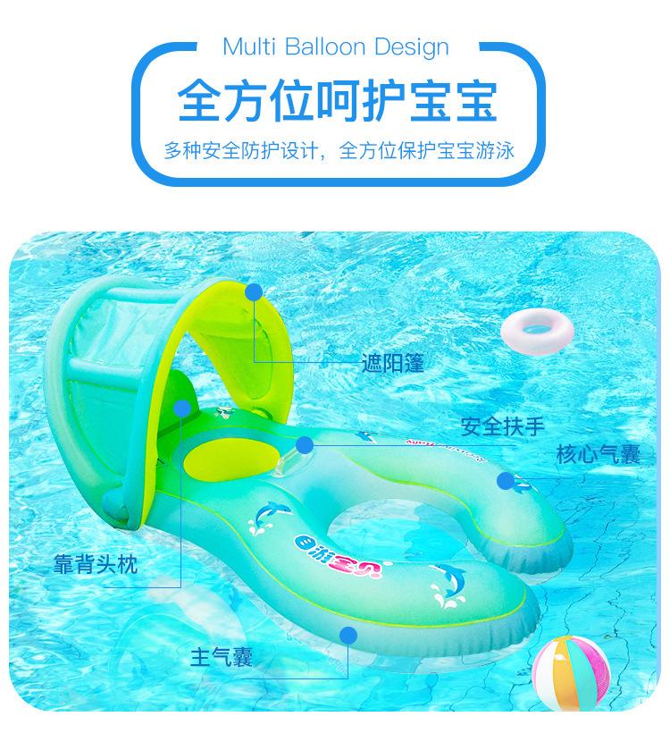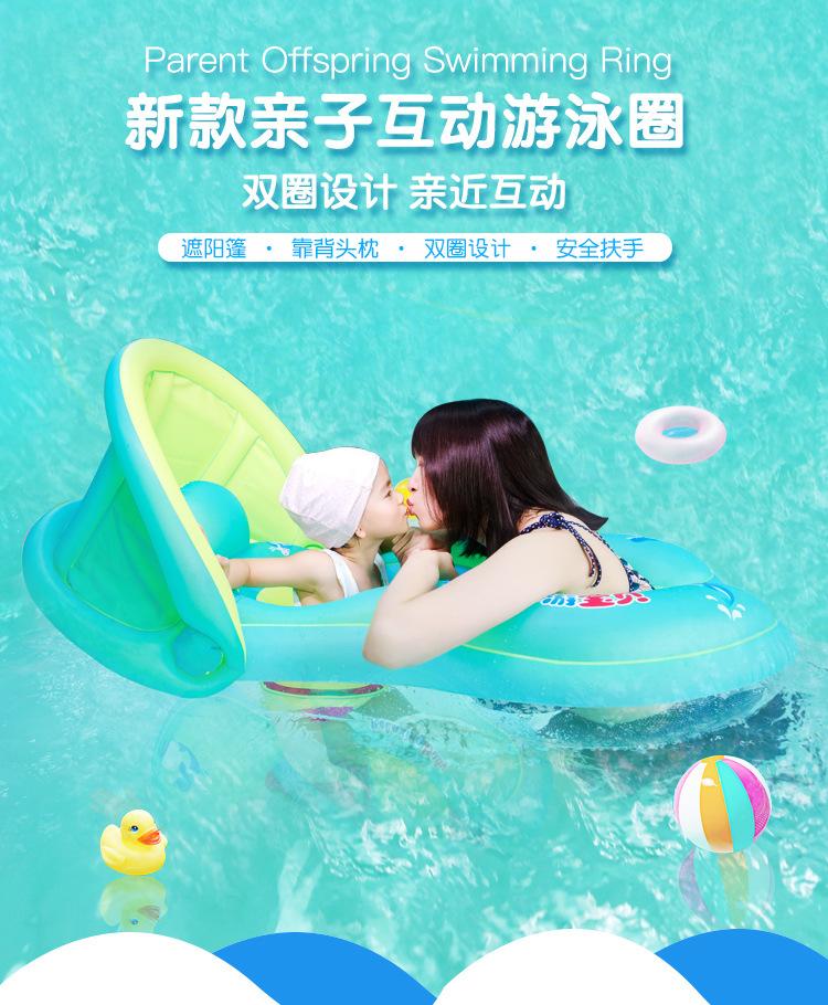 Anillo de natación inflable de PVC interactivo para padres e hijos en stock, anillo de natación para niños, sombrilla anti-DDoS desmontable, juguete de barco para madre e hijo