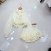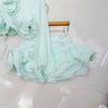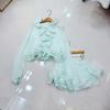 Top Transparente de Chifón con Volantes Transfronterizo Europeo y Americano Cárdigan con Cordones + Set de Falda Plisada tipo Pastel
