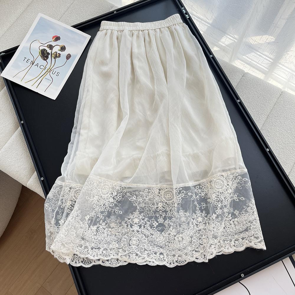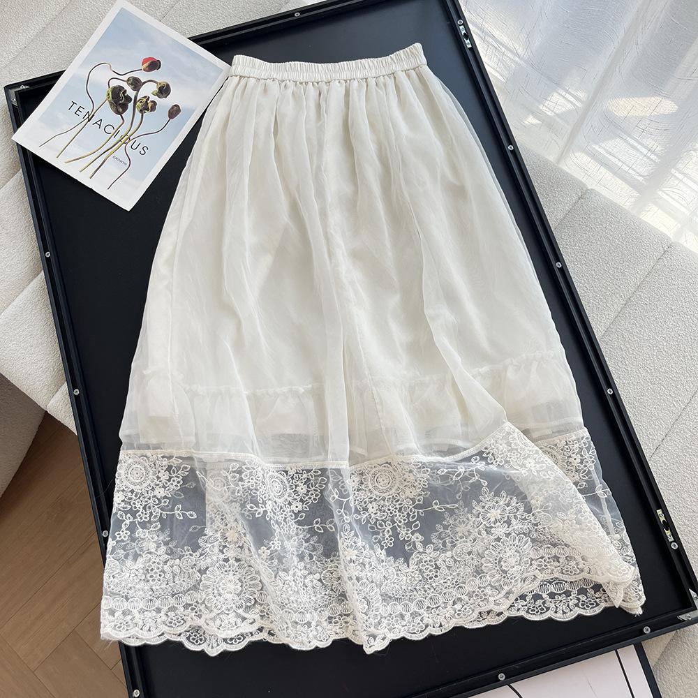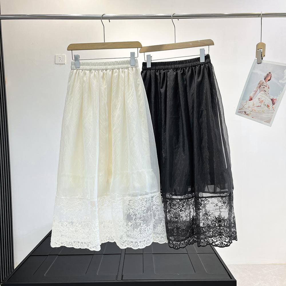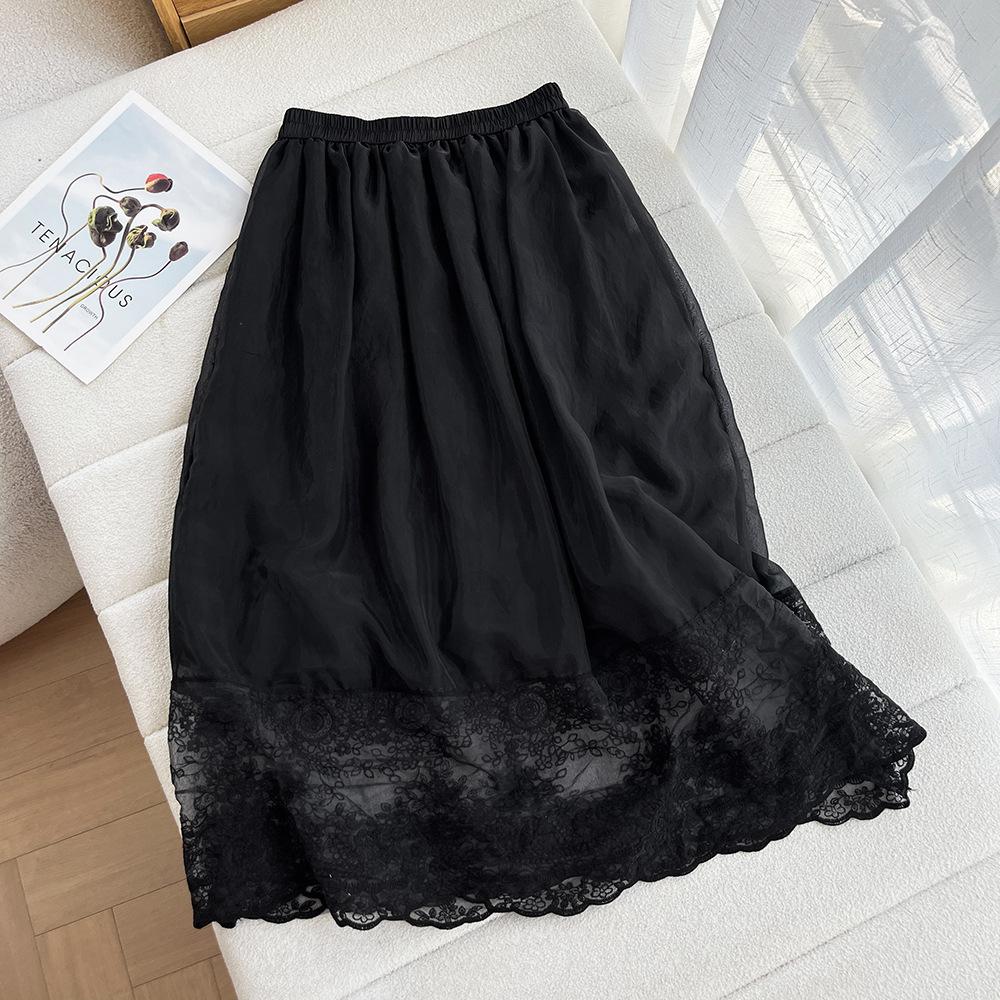 00Sy-8529 Falda de Encaje con Empalme Falso de Dos Piezas 2025 Verano Nueva Moda Cintura Elástica Línea A Falda Larga