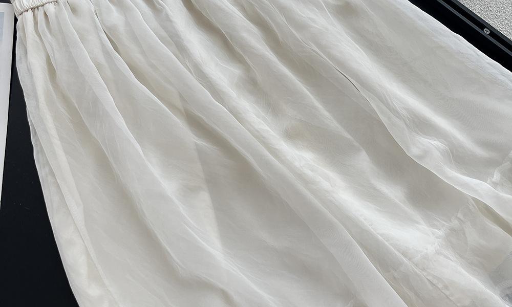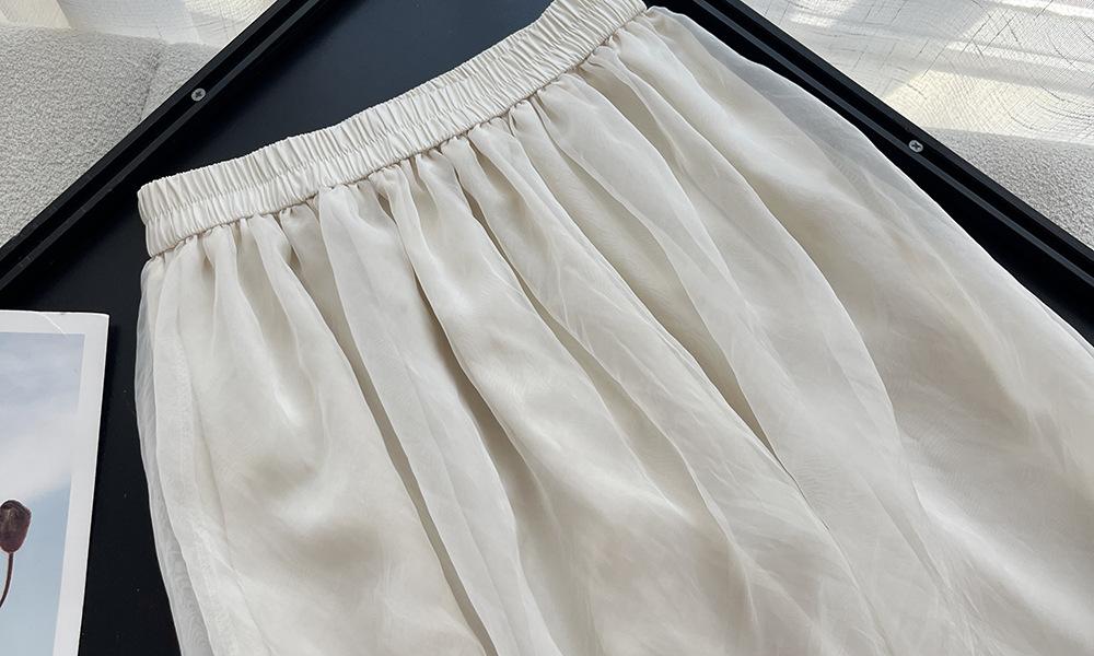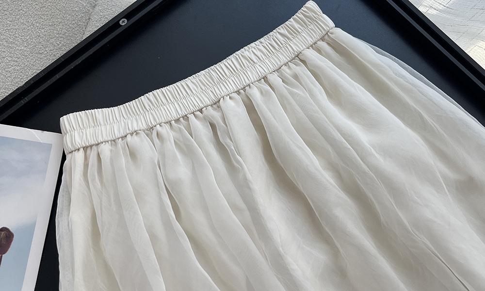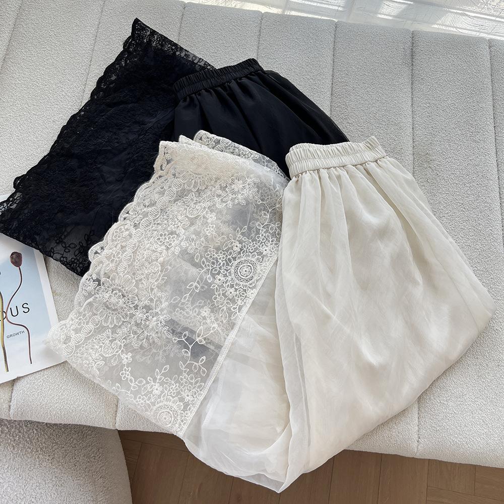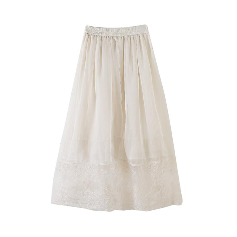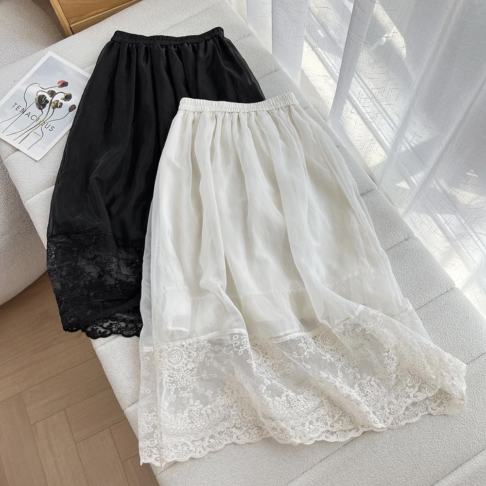 00Sy-8529 Falda de Encaje con Empalme Falso de Dos Piezas 2025 Verano Nueva Moda Cintura Elástica Línea A Falda Larga