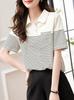Playera de Rayas de Manga Corta para Mujer 2025 Verano Nuevo para Ir al Trabajo Diseño Simple Nicho Casual Top con Cuello POLO para Mujer