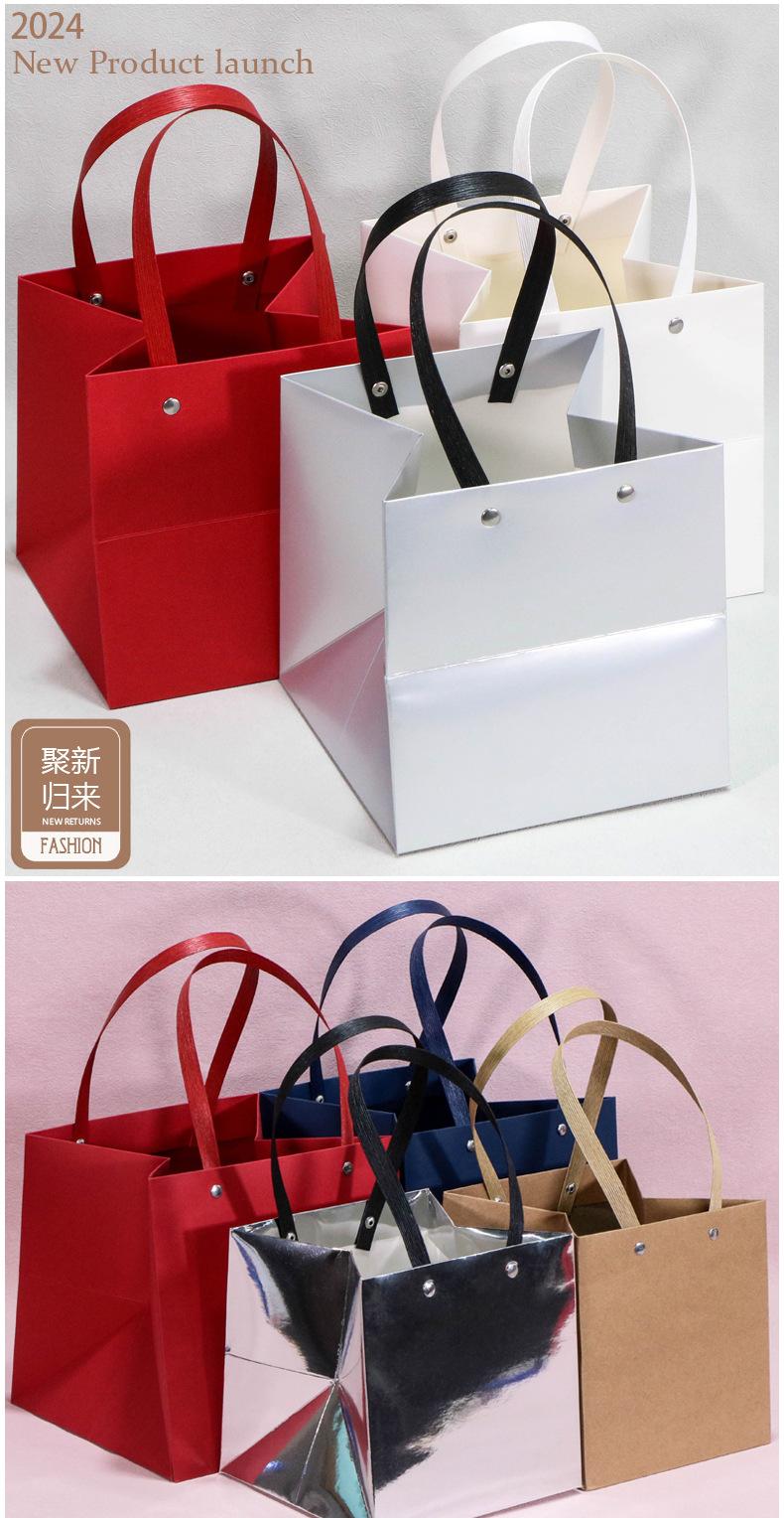 Bolsa de papel kraft bolsa de papel portátil bolsa de fondo cuadrado engrosada bolsa de embalaje para Flores Horneado bolsa de regalo de fondo ancho venta al por mayor al contado