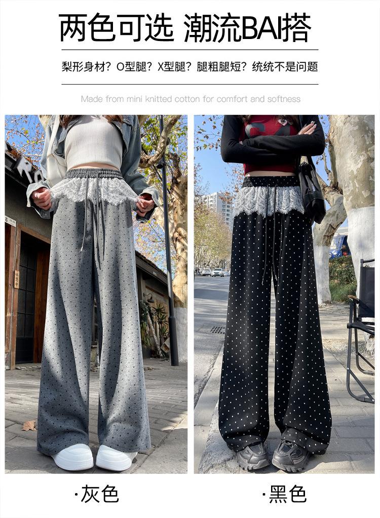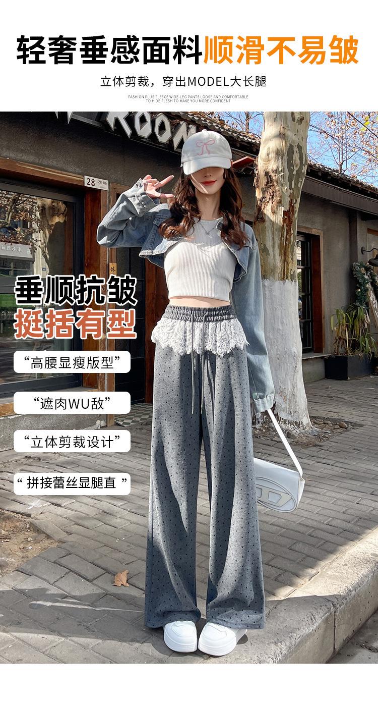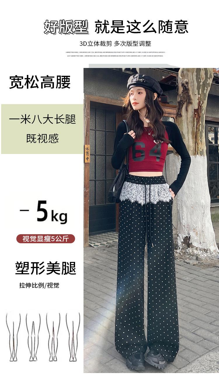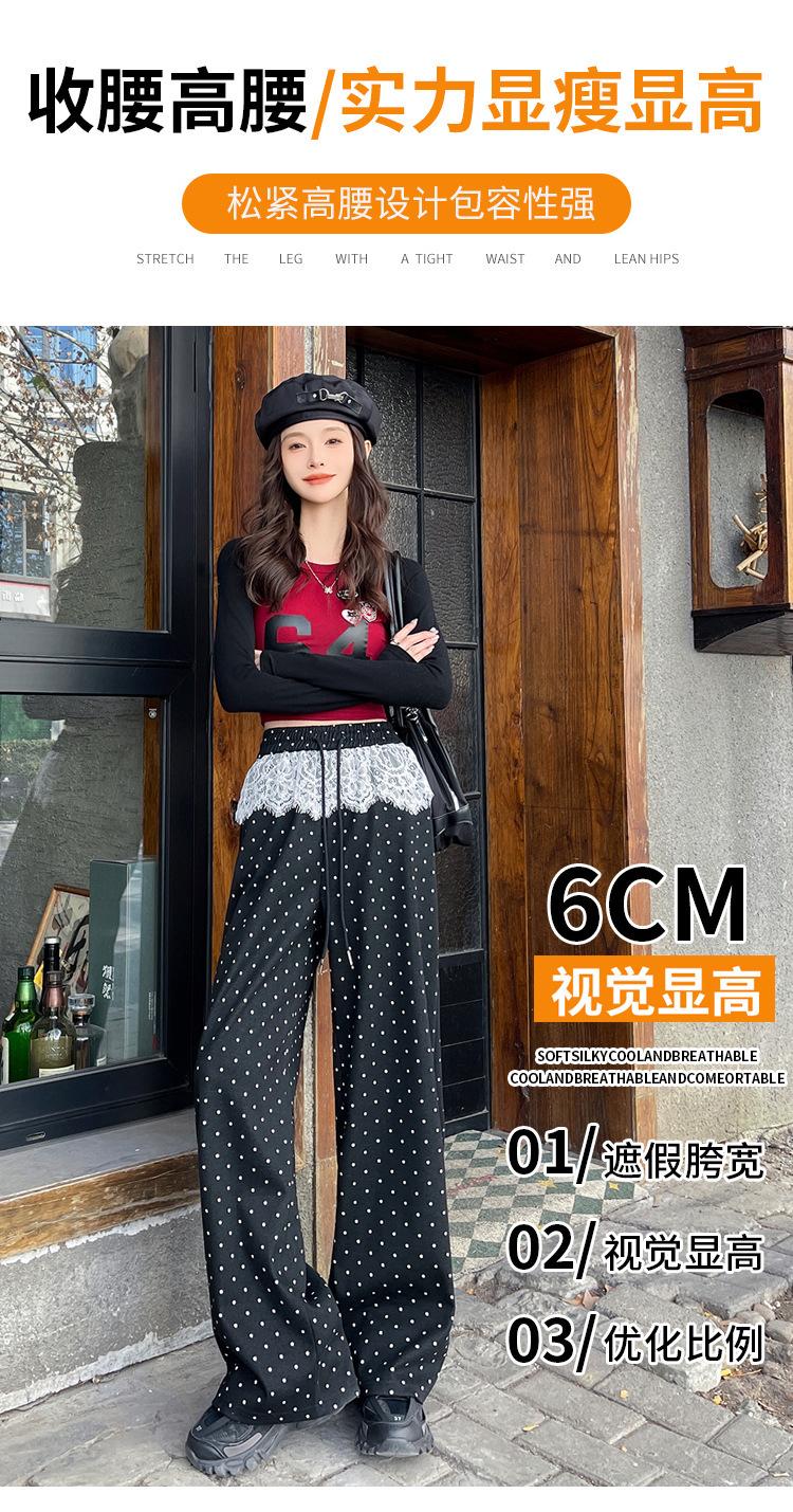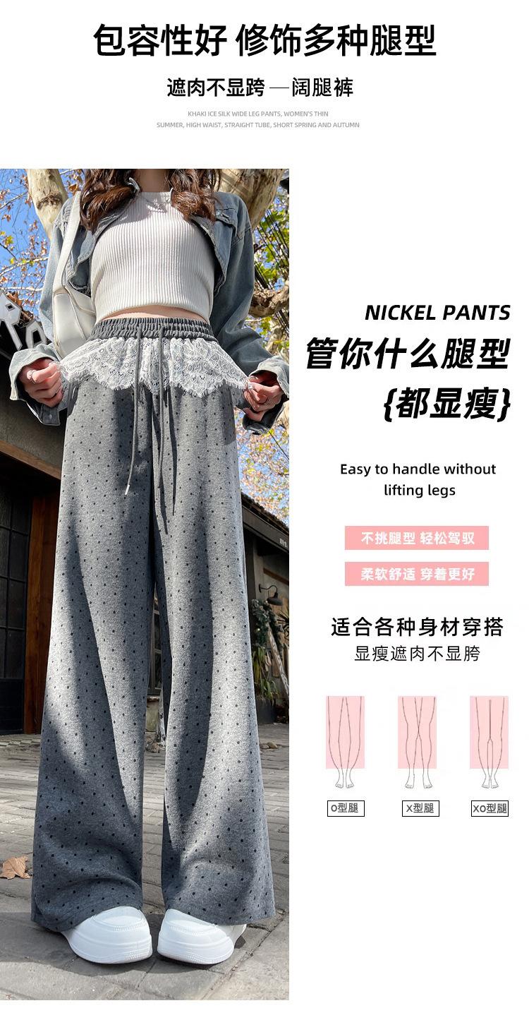 Pantalones Rectos Holgados con Drapeado de Verano para Mujer 2025 Nuevos de Encaje con Lunares de Tiro Real de Pierna Ancha y Cintura Elástica 150