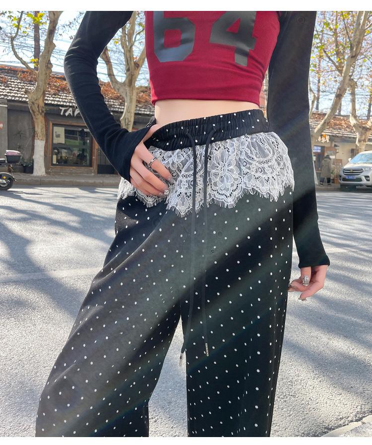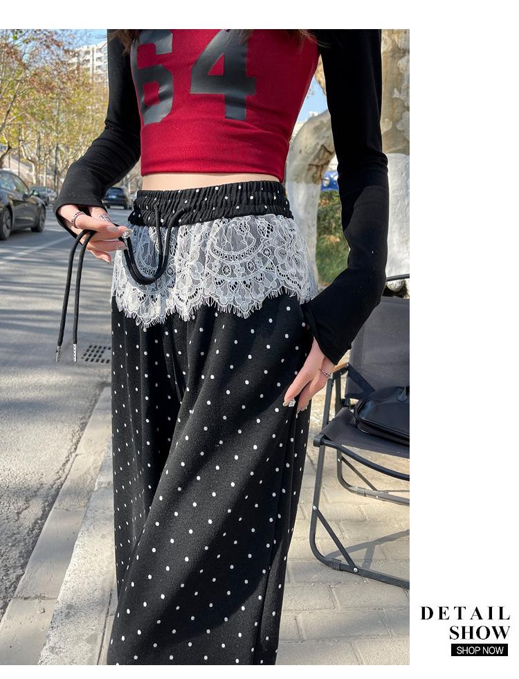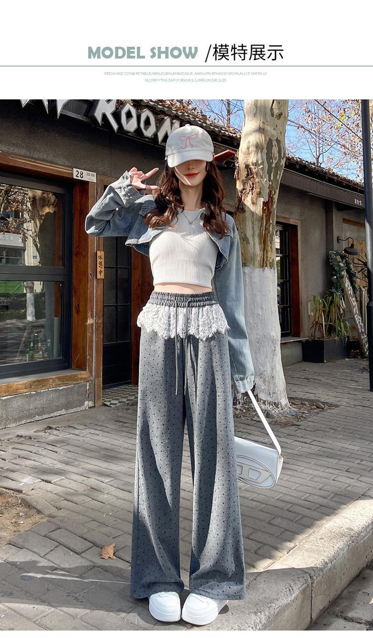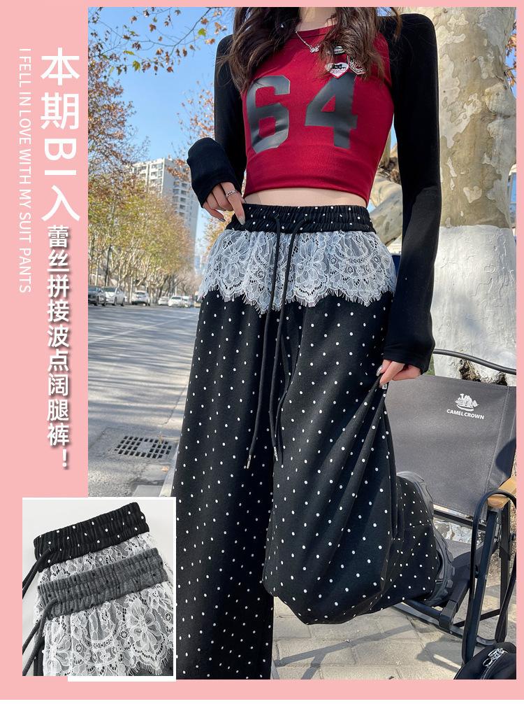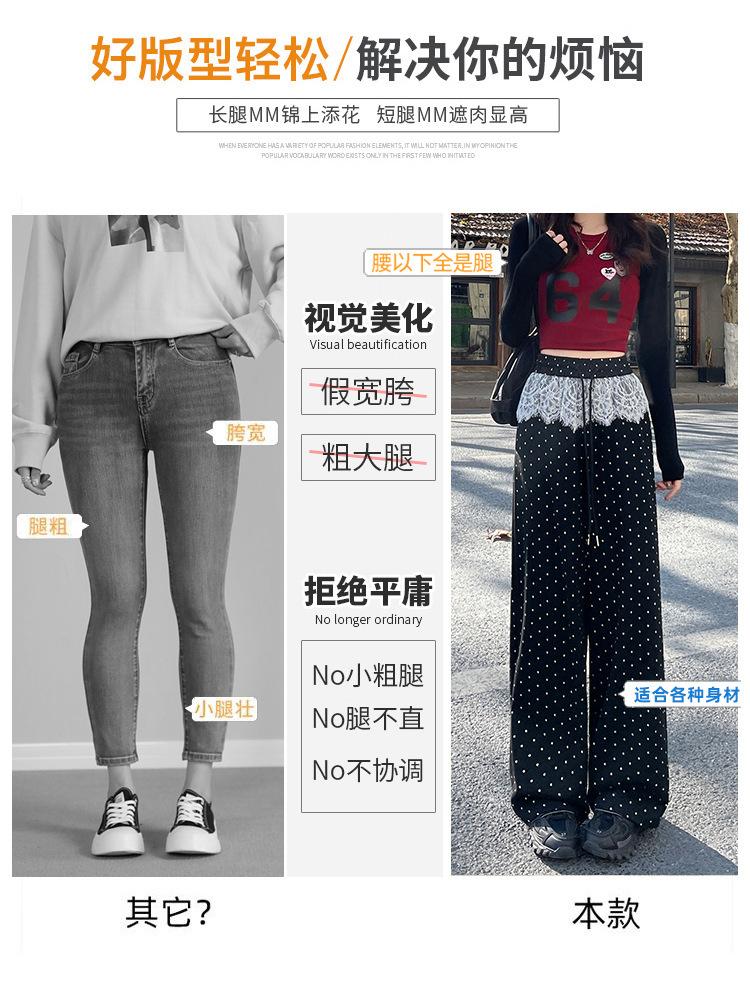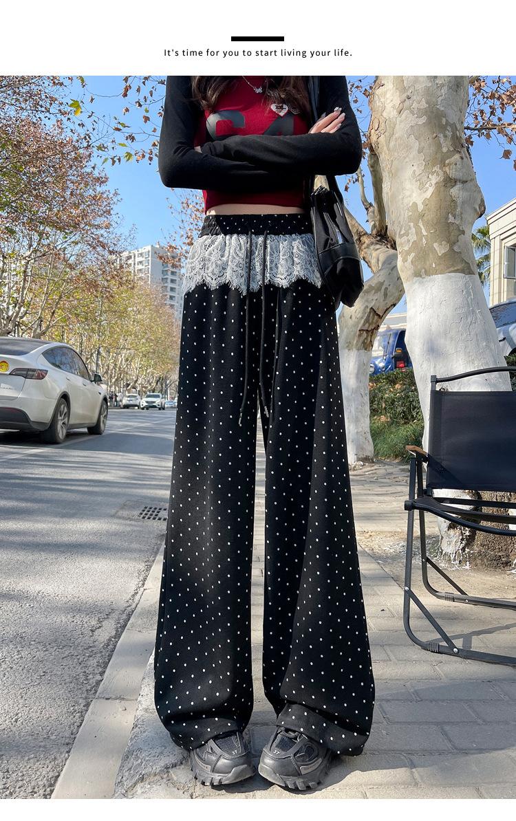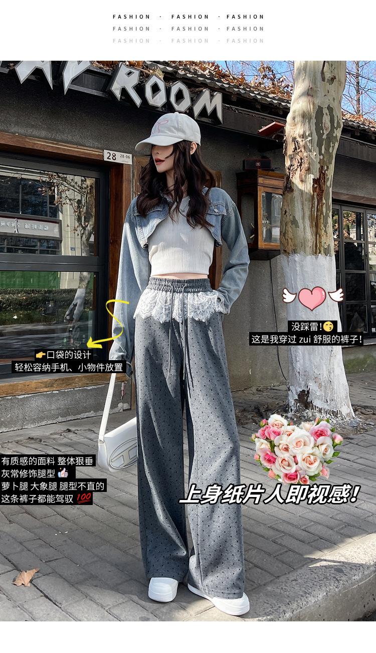 Pantalones Rectos Holgados con Drapeado de Verano para Mujer 2025 Nuevos de Encaje con Lunares de Tiro Real de Pierna Ancha y Cintura Elástica 150