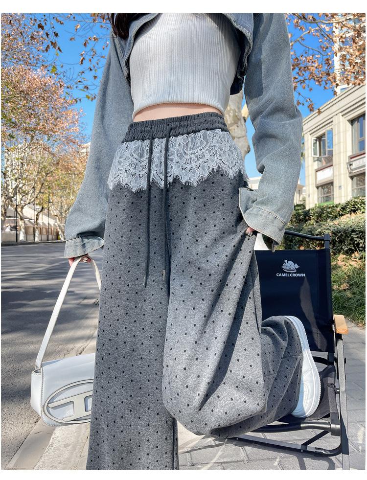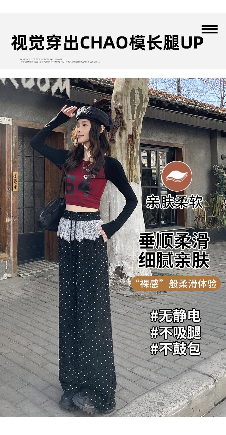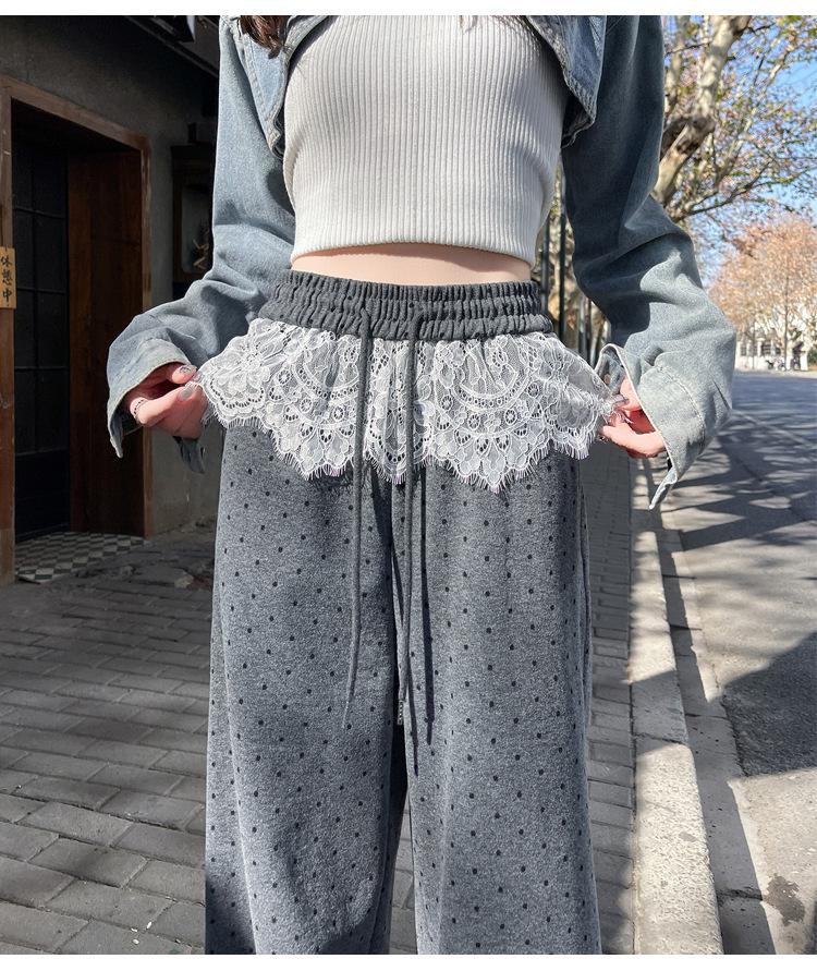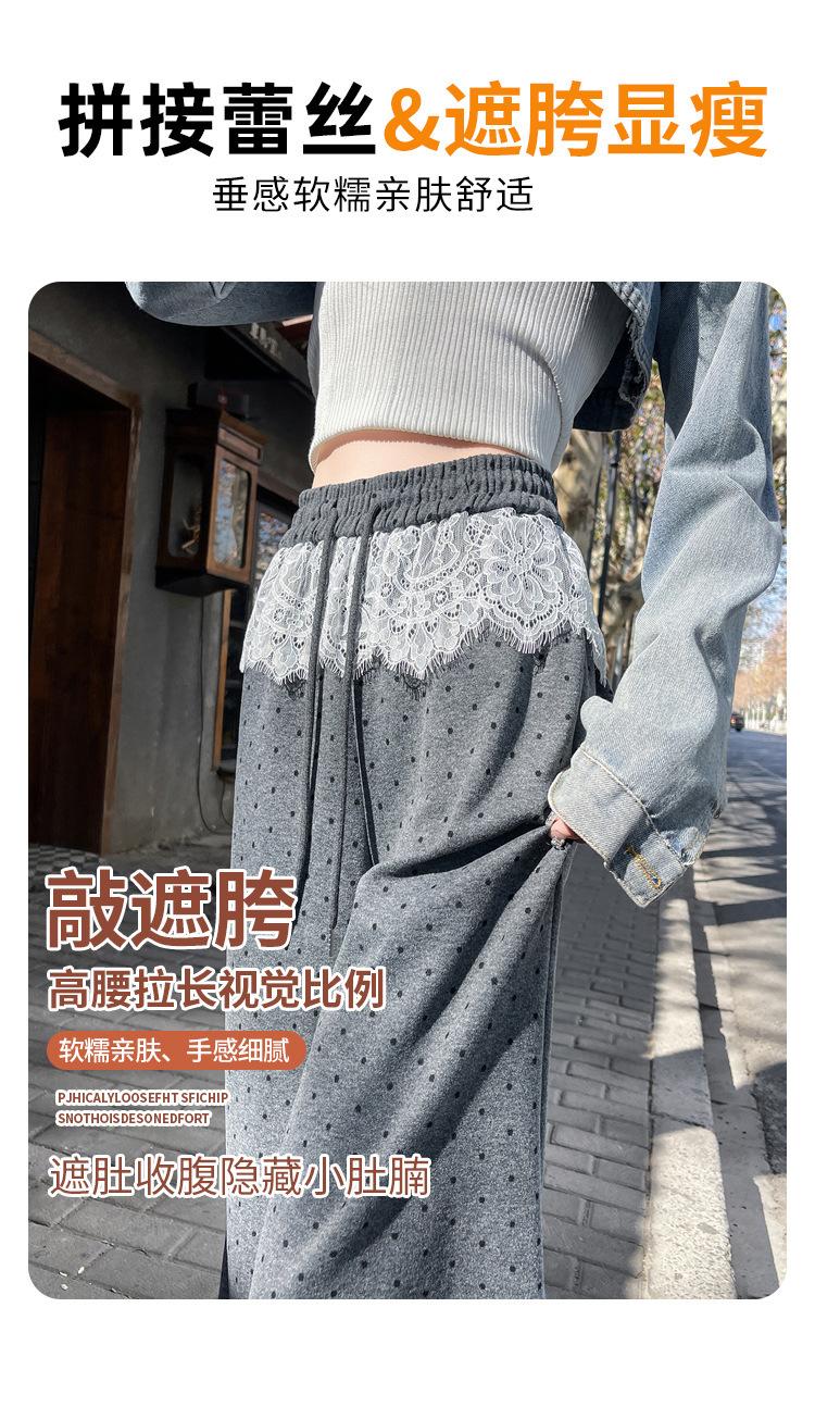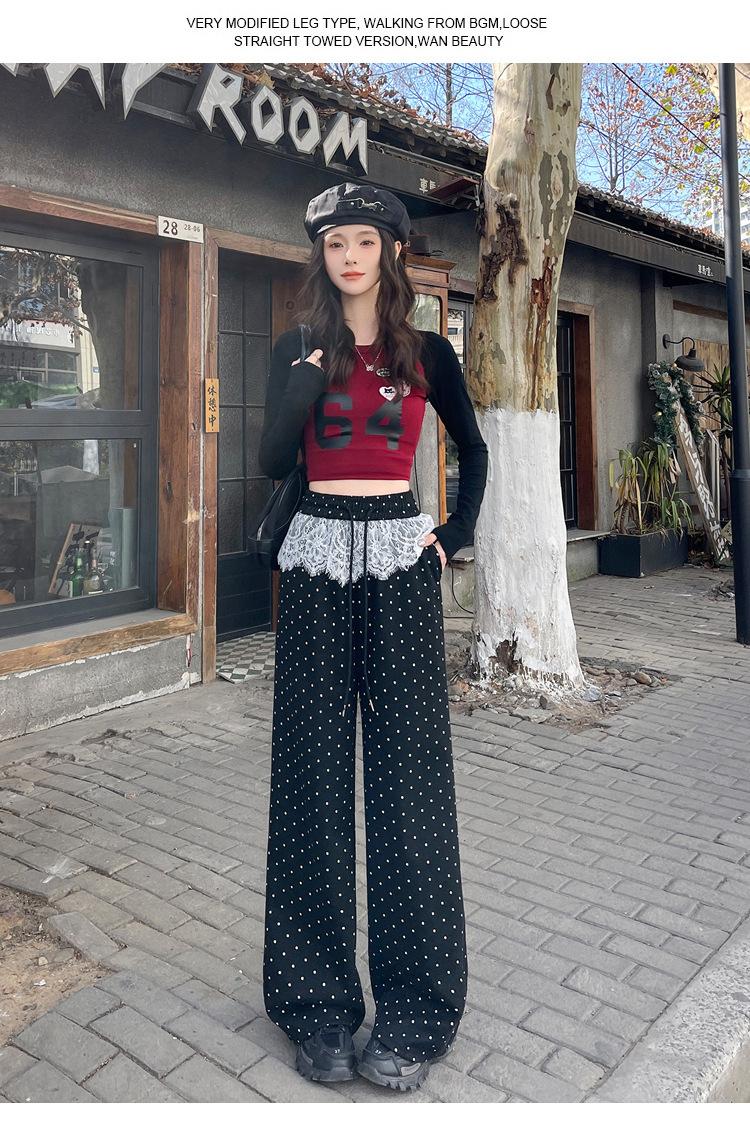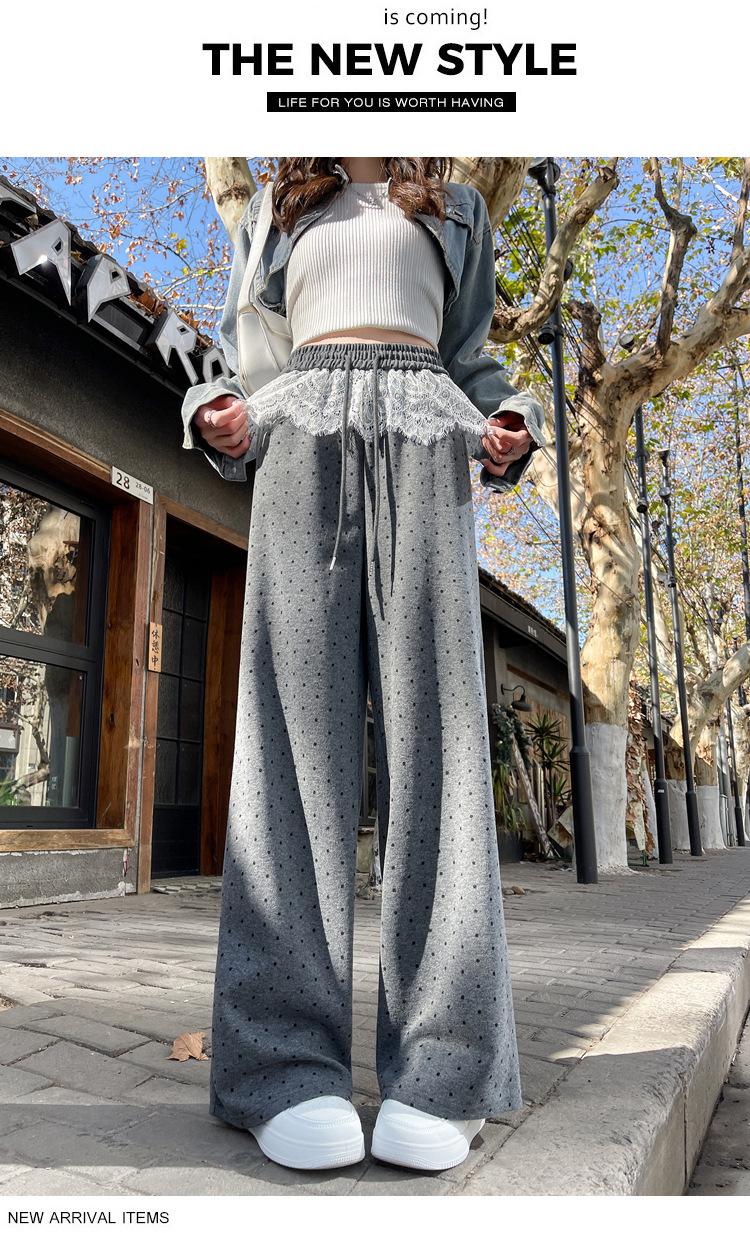 Pantalones Rectos Holgados con Drapeado de Verano para Mujer 2025 Nuevos de Encaje con Lunares de Tiro Real de Pierna Ancha y Cintura Elástica 150