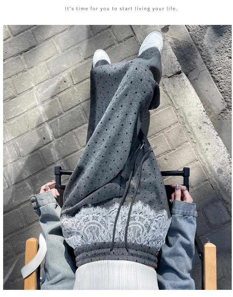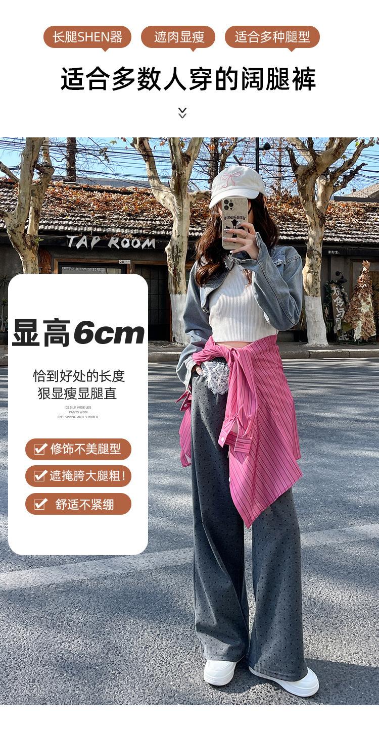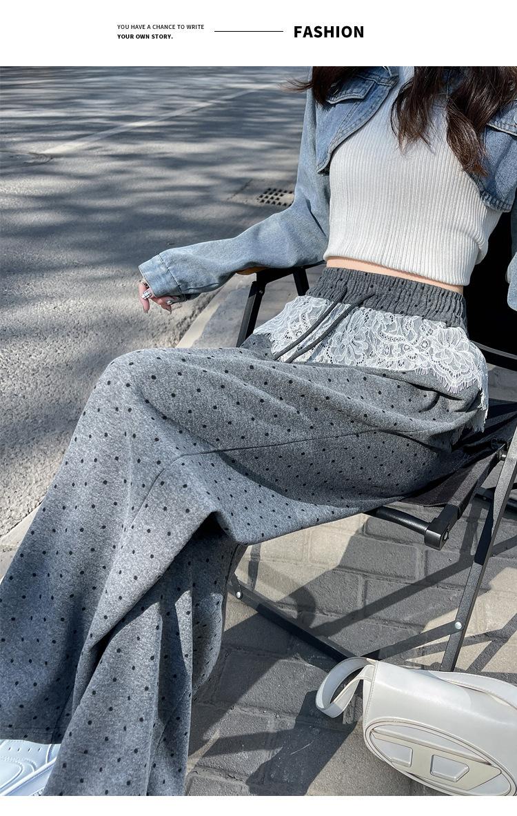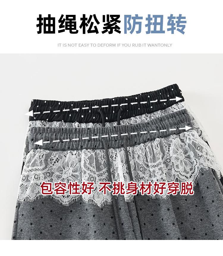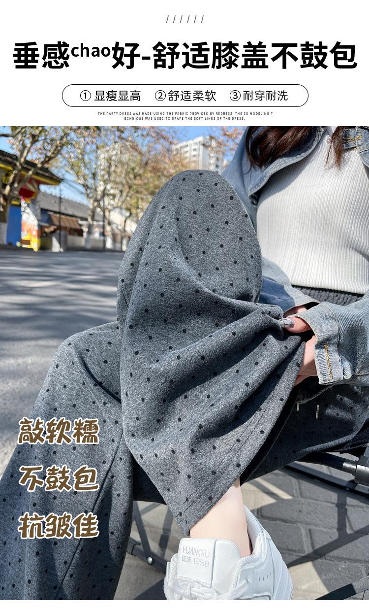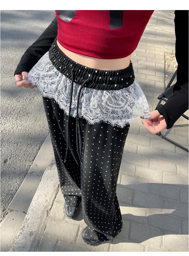 Pantalones Rectos Holgados con Drapeado de Verano para Mujer 2025 Nuevos de Encaje con Lunares de Tiro Real de Pierna Ancha y Cintura Elástica 150