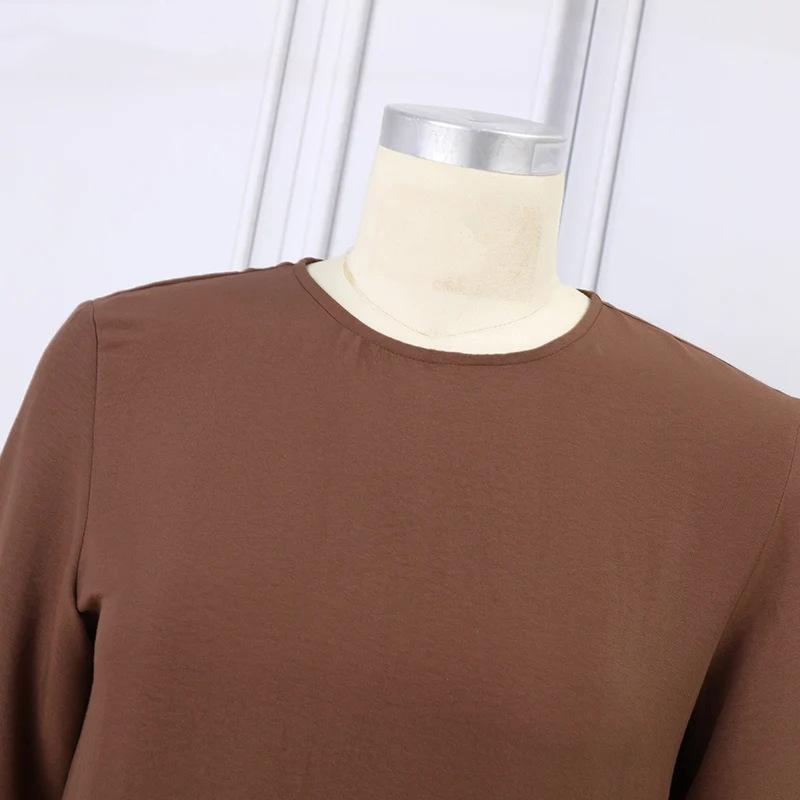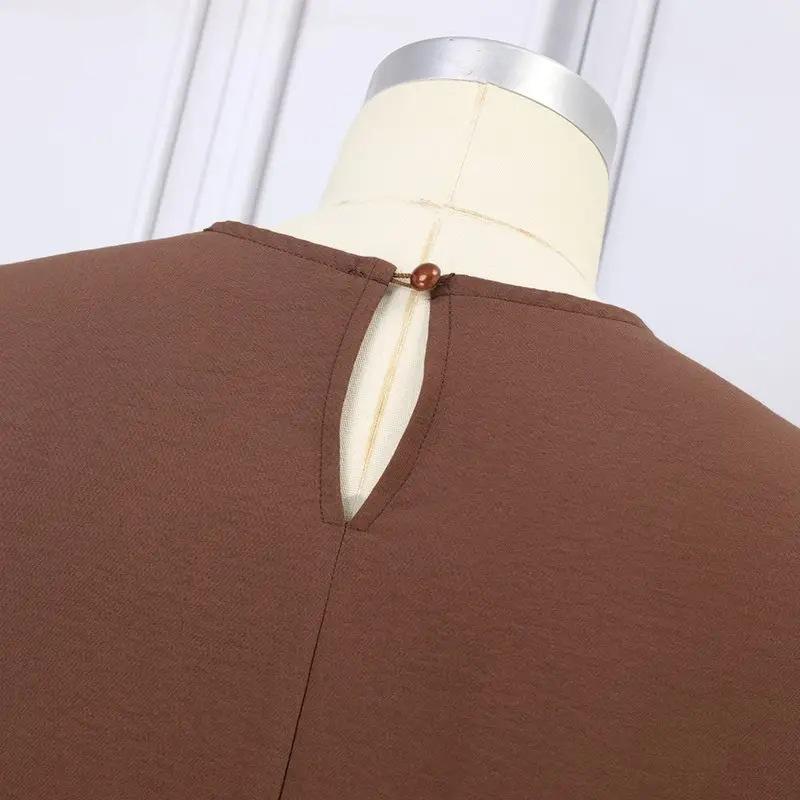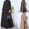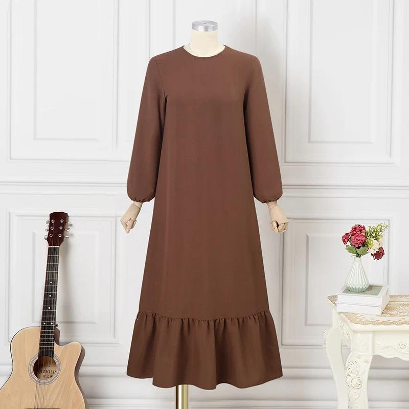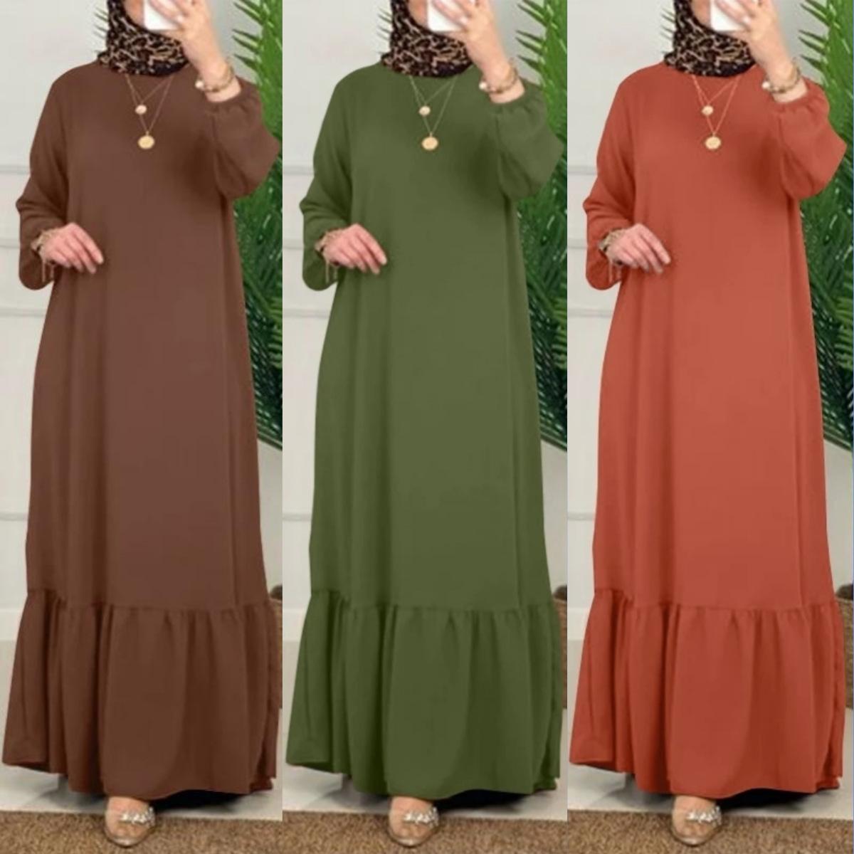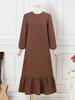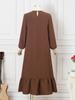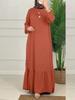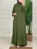 Ropa Musulmana Vestido de Color Sólido Manga Abullonada Dobladillo con Volantes Vestido Vintage Bata Bolsillo para Mujer Vestido Largo Holgado