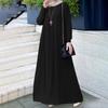 2024 Falda plisada elegante de estilo árabe para mujer musulmana, color sólido, cuello redondo, manga larga, vestido plisado