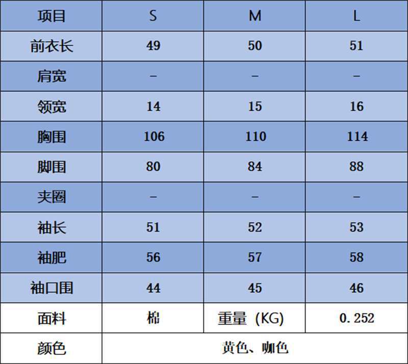 S, M, L