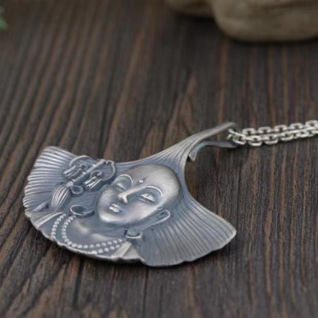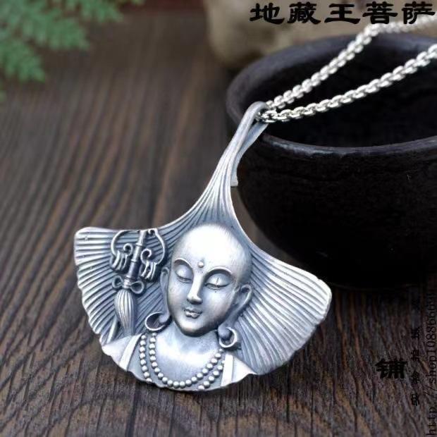 Estatua de Buda Ksitigarbha Bodhisattva Collar Colgante Estilo Antiguo Colgante Estilo Étnico Plata