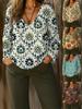 2023 transfronterizo europeo y americano ropa de mujer para comercio exterior Amazon estación independiente pequeño floral cuello en V cremallera manga larga top camiseta mujer