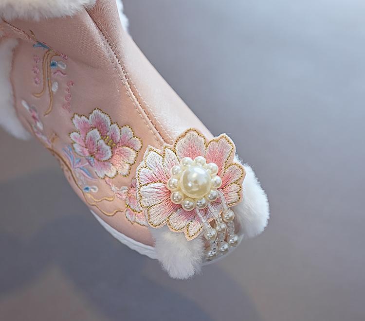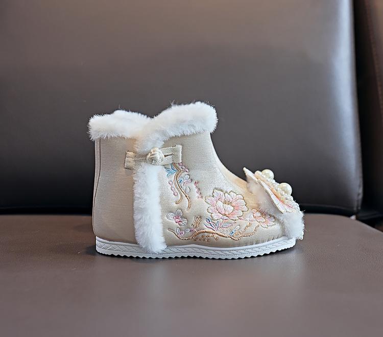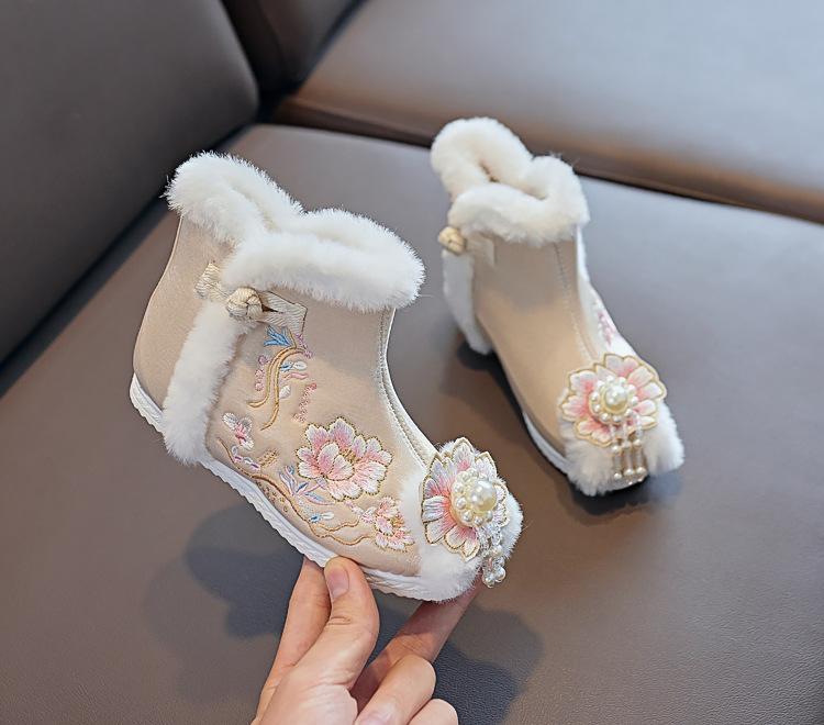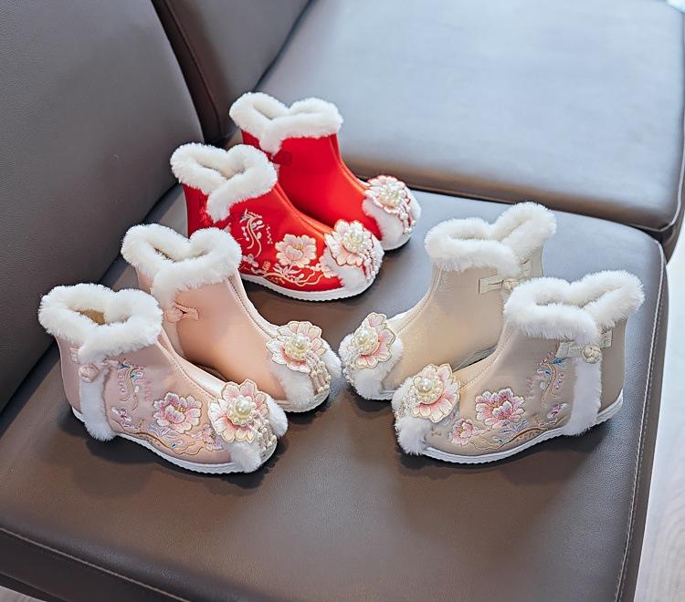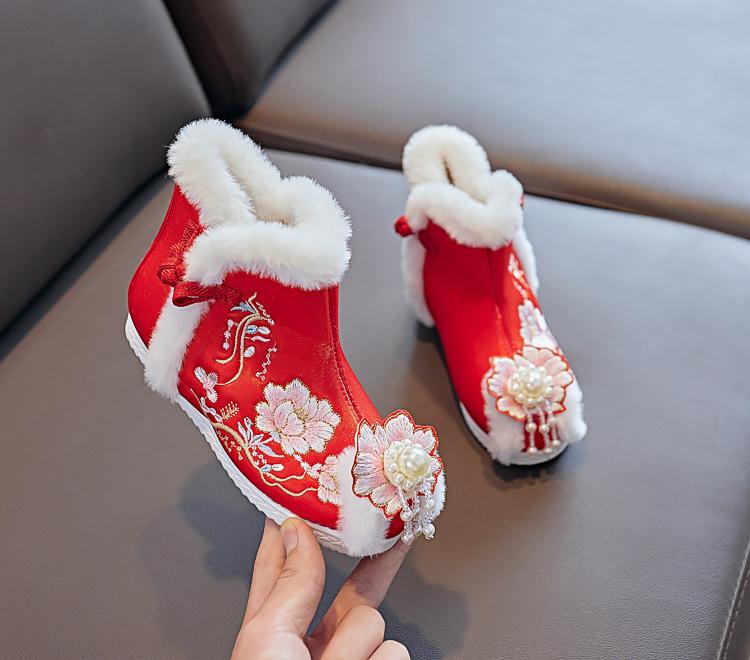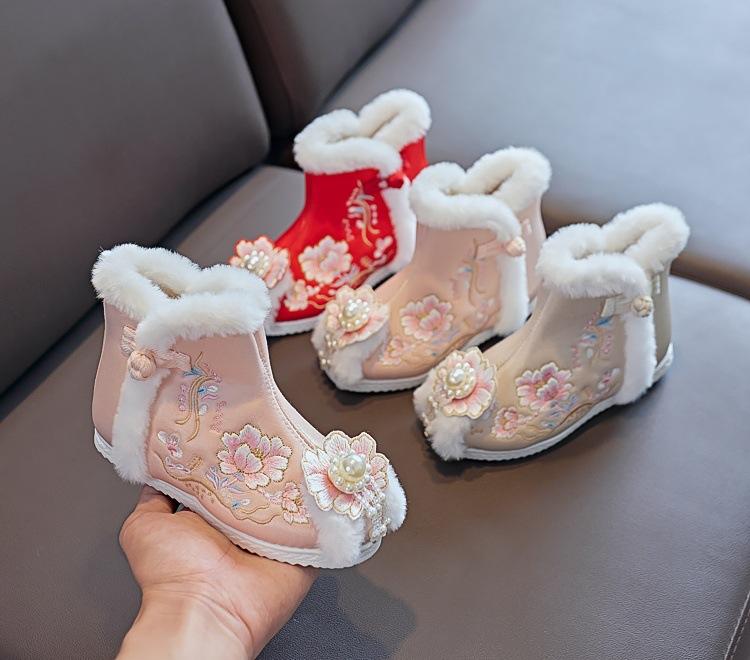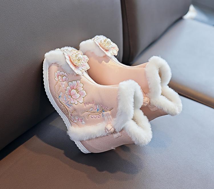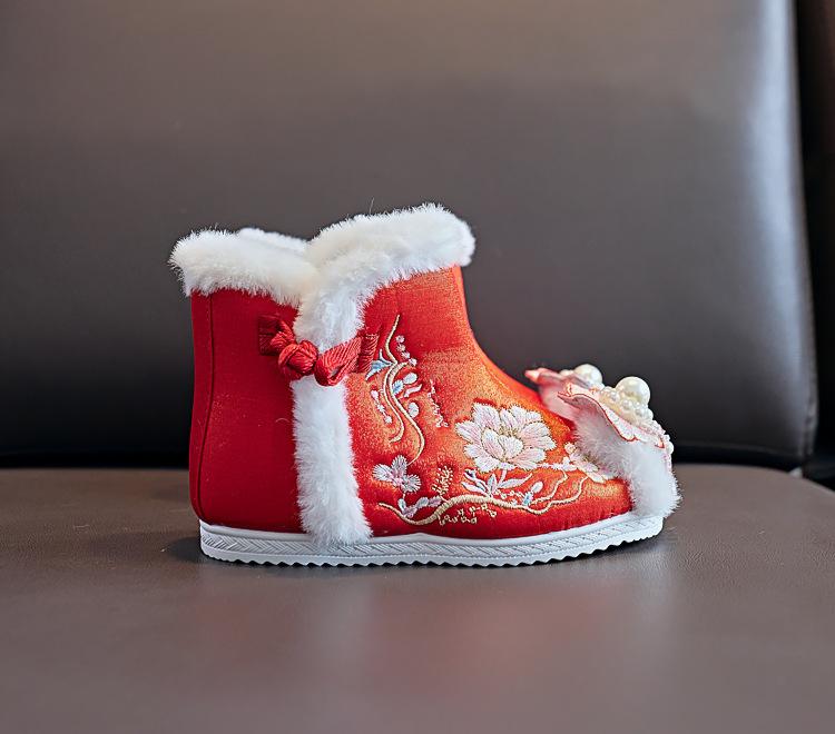 Zapatos para niños de la dinastía Han, Zapatos bordados para niñas de estilo antiguo, Zapatos para presentación de disfraces para niñas pequeñas de estilo chino, Zapatos de tela de Pekín antiguo, Zapatos para niños