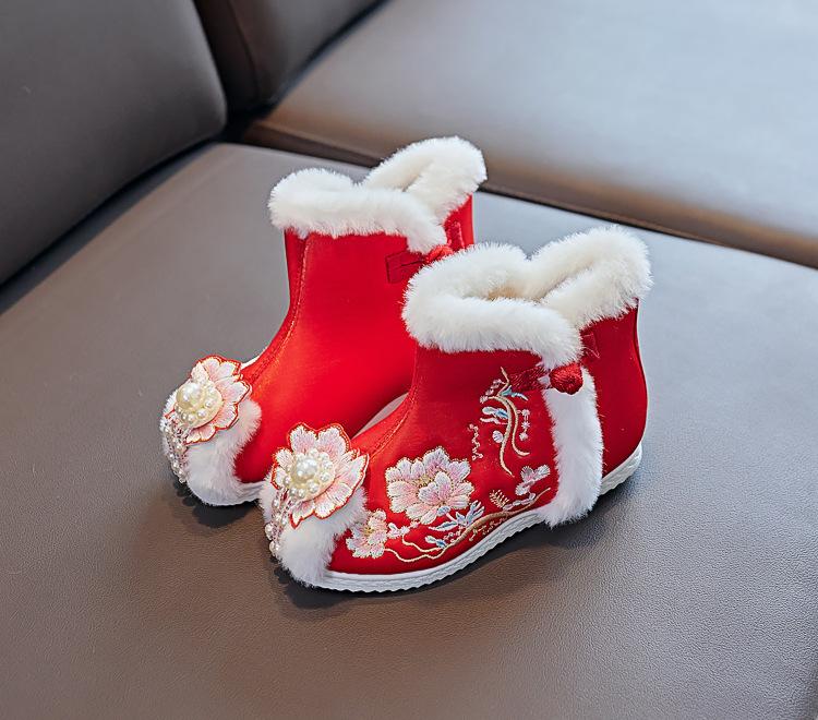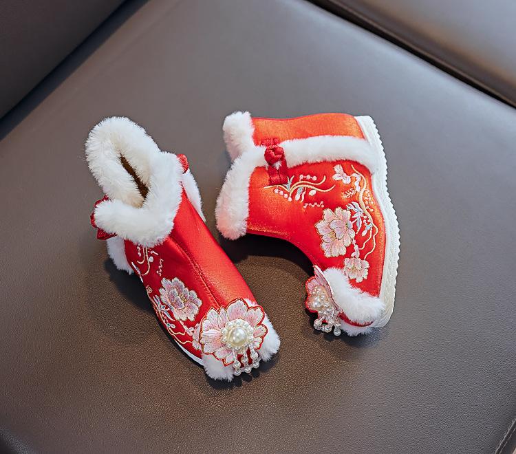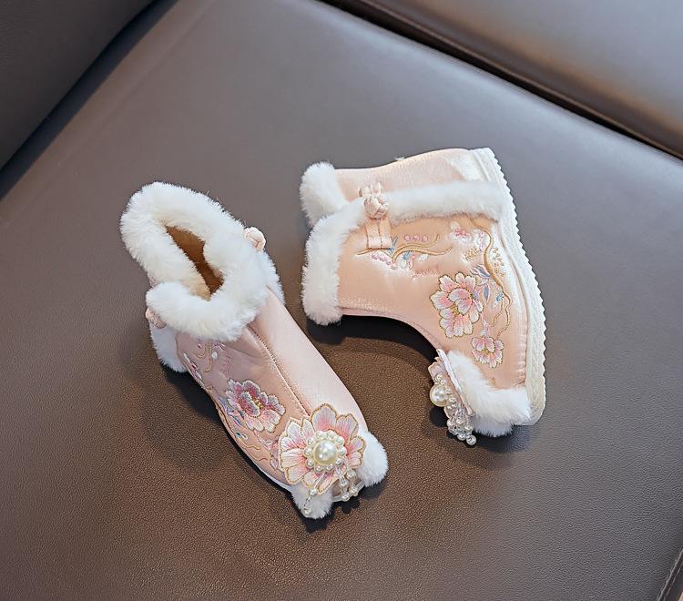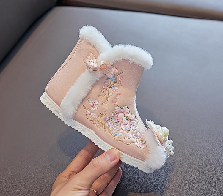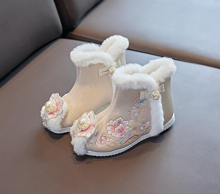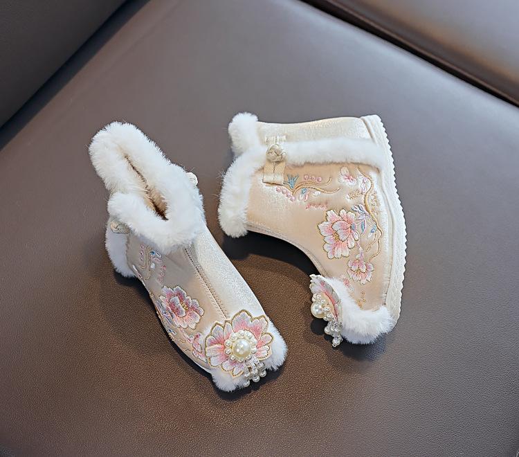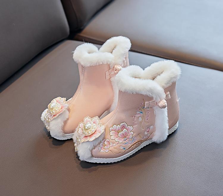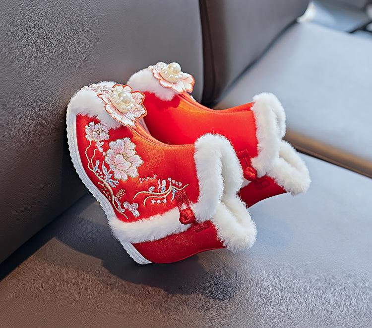 Zapatos para niños de la dinastía Han, Zapatos bordados para niñas de estilo antiguo, Zapatos para presentación de disfraces para niñas pequeñas de estilo chino, Zapatos de tela de Pekín antiguo, Zapatos para niños