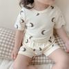 Ropa de casa para niños estilo europeo y americano, conjunto de pijama de verano para niños, conjunto de manga corta de algodón puro, ropa linda de luna