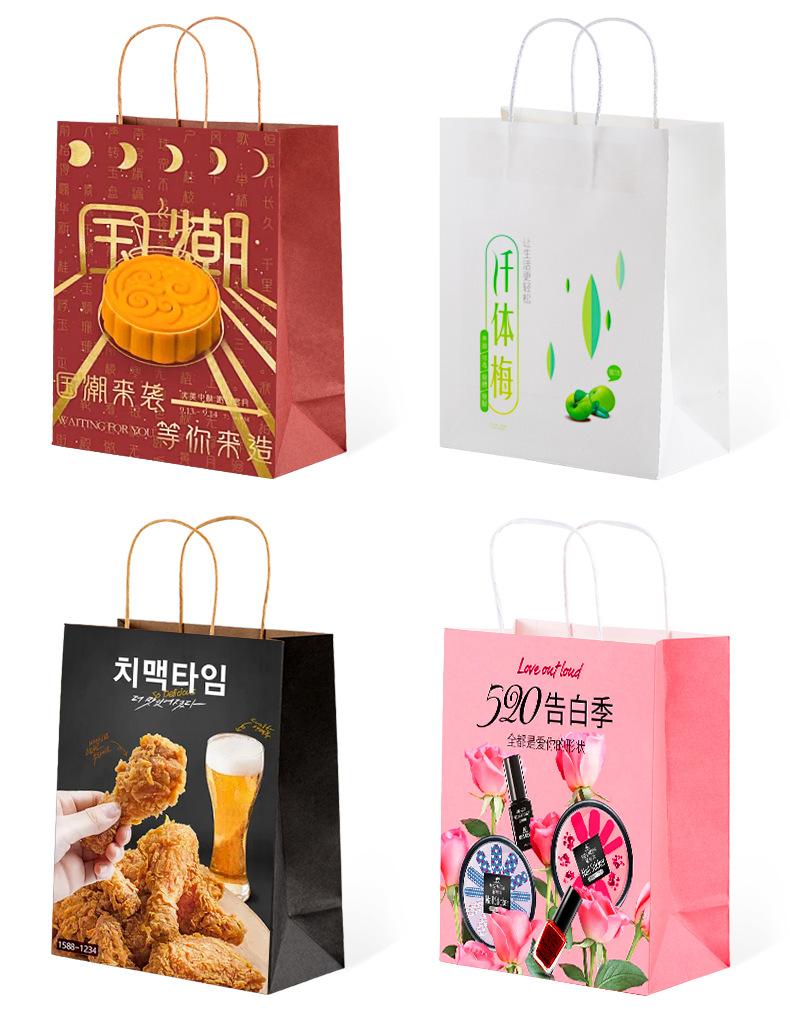Bolsa de Papel Kraft Color Personalizada Engrosada Para Llevar Bolsa Para Hornear Bolsa de Mano Para Regalo Logotipo Impreso Personalizado