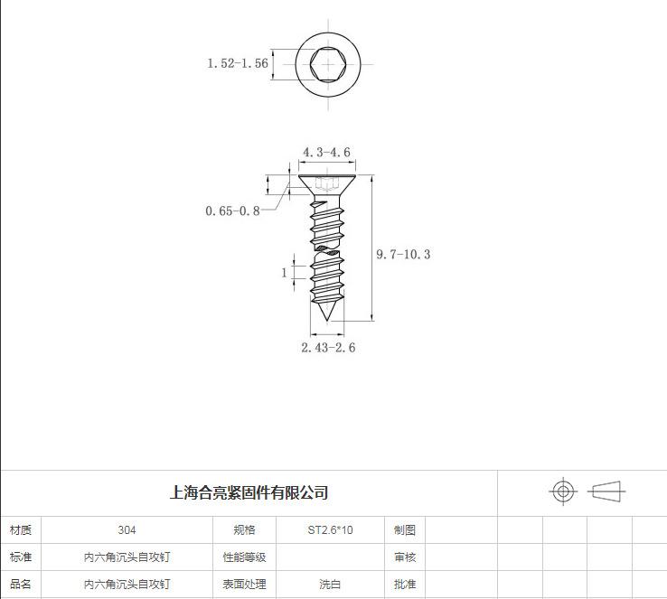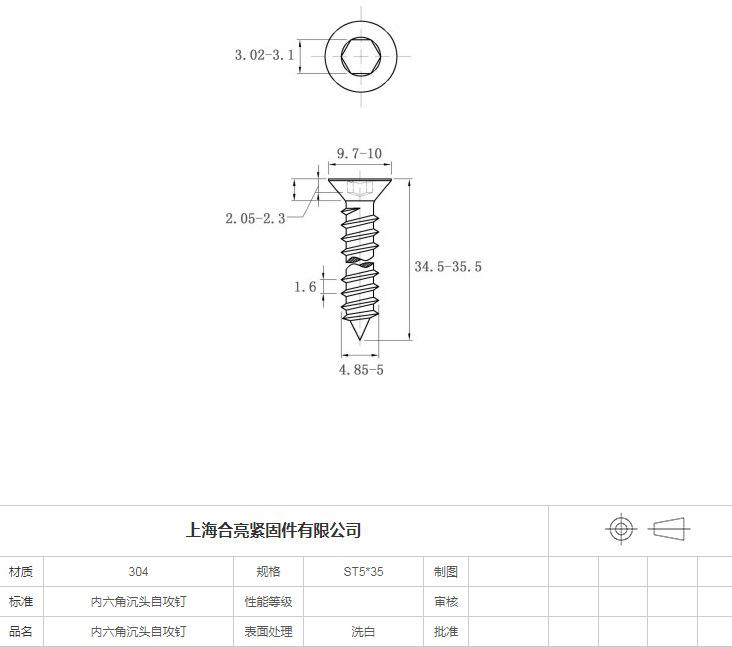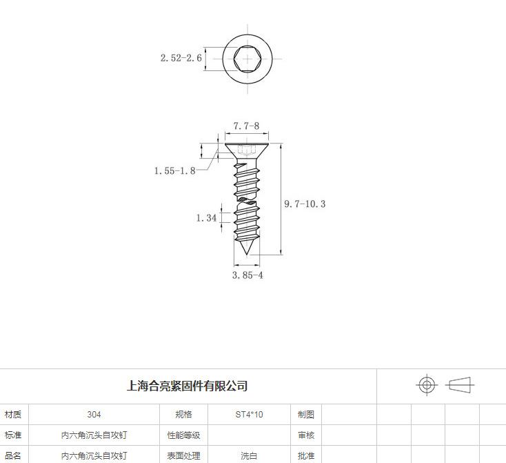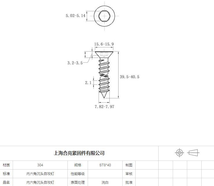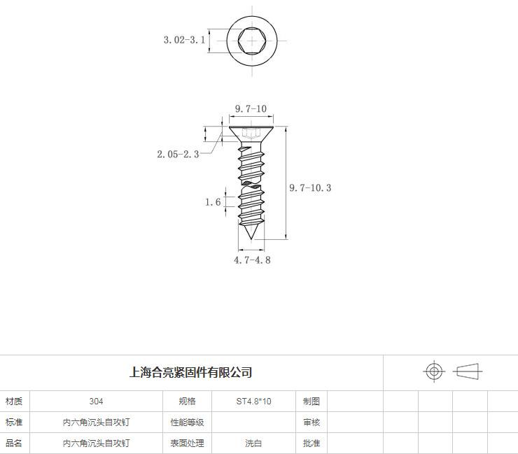 Acero inoxidable 304 cabeza avellanada hexagonal tornillo autorroscante