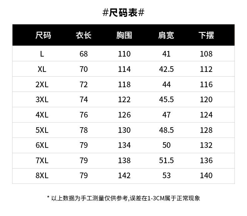 L, XL, XXL, XXXL, XXXXL, 5XL, 6XL, 7XL, 8XL