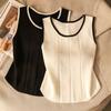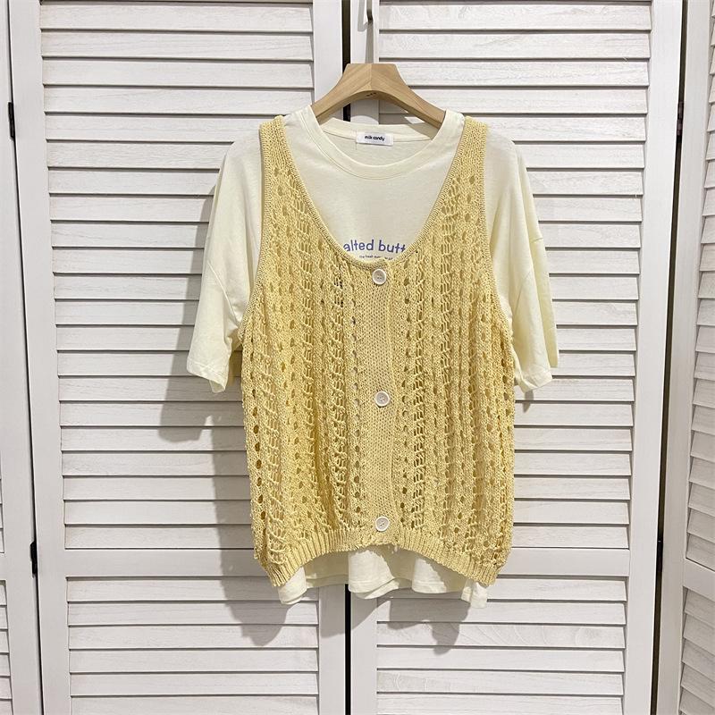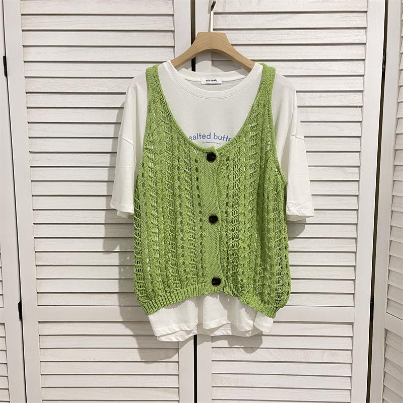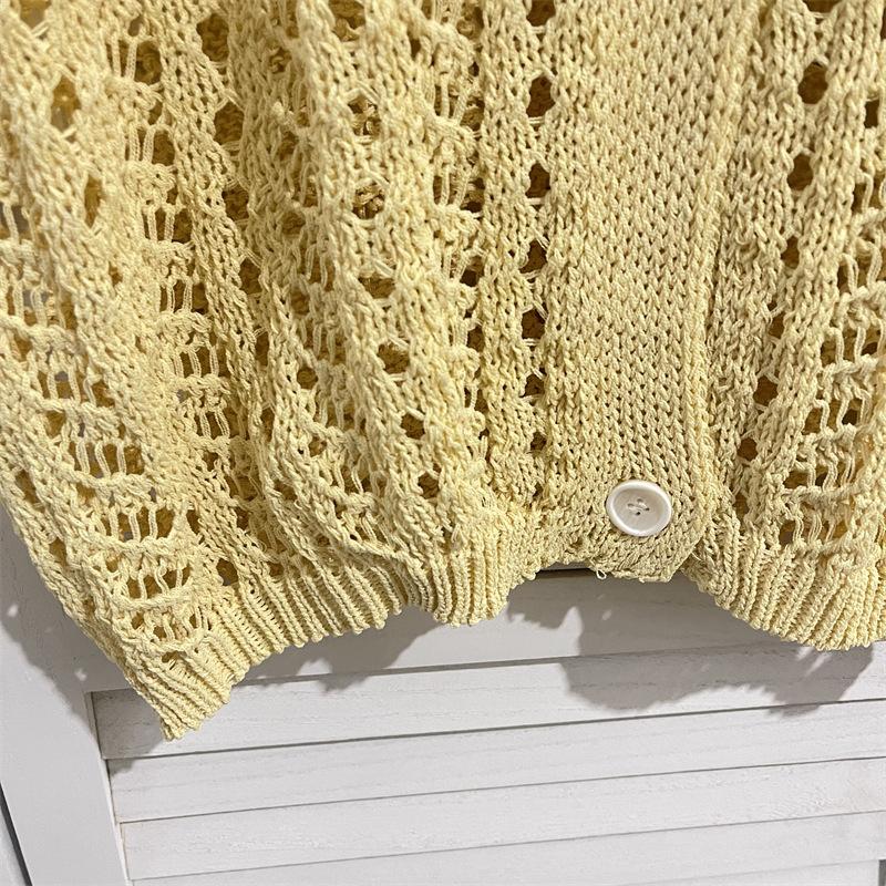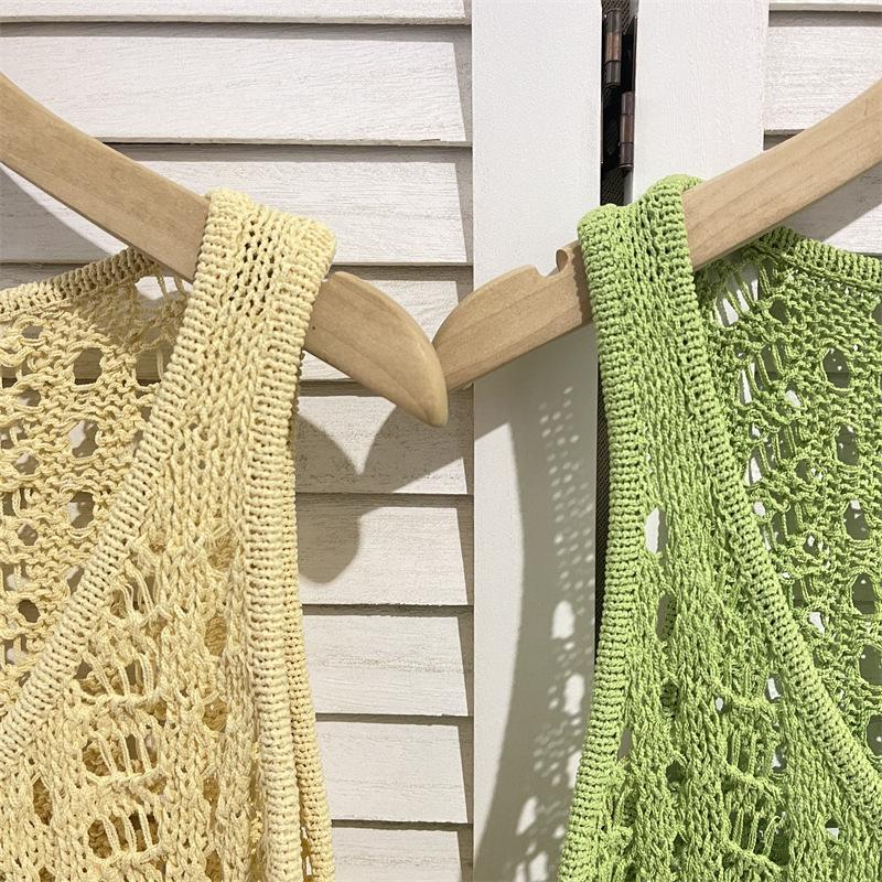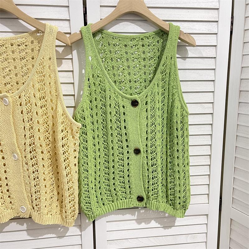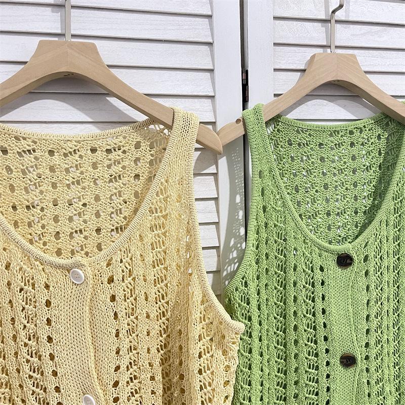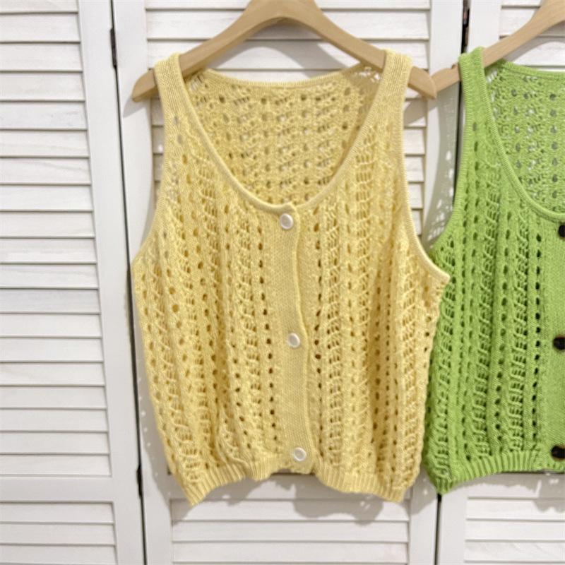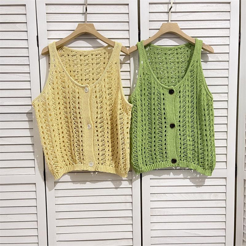 Chaleco tejido calado sencillo de color dopamina para mujer