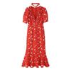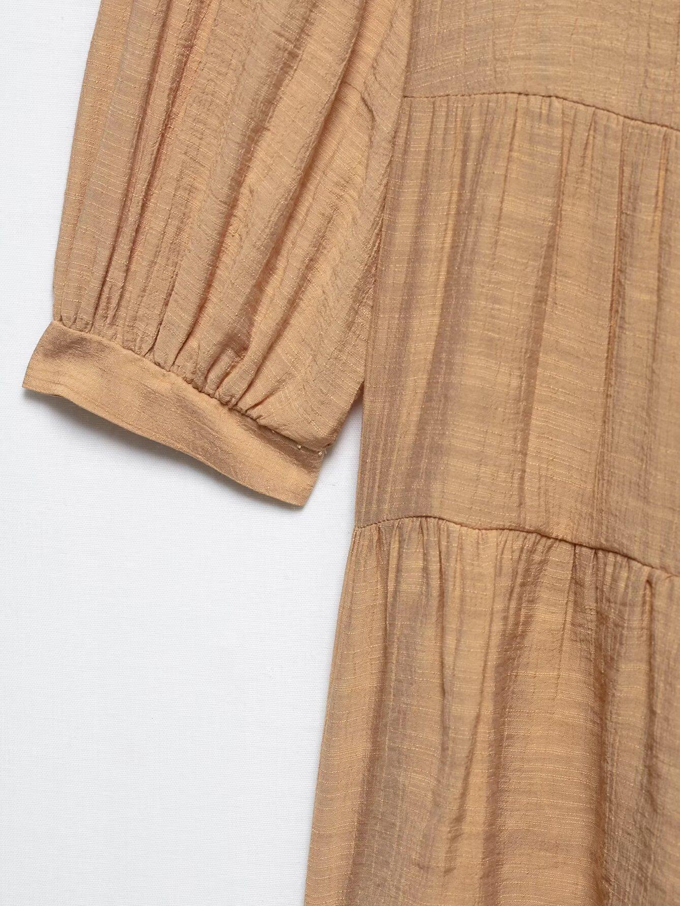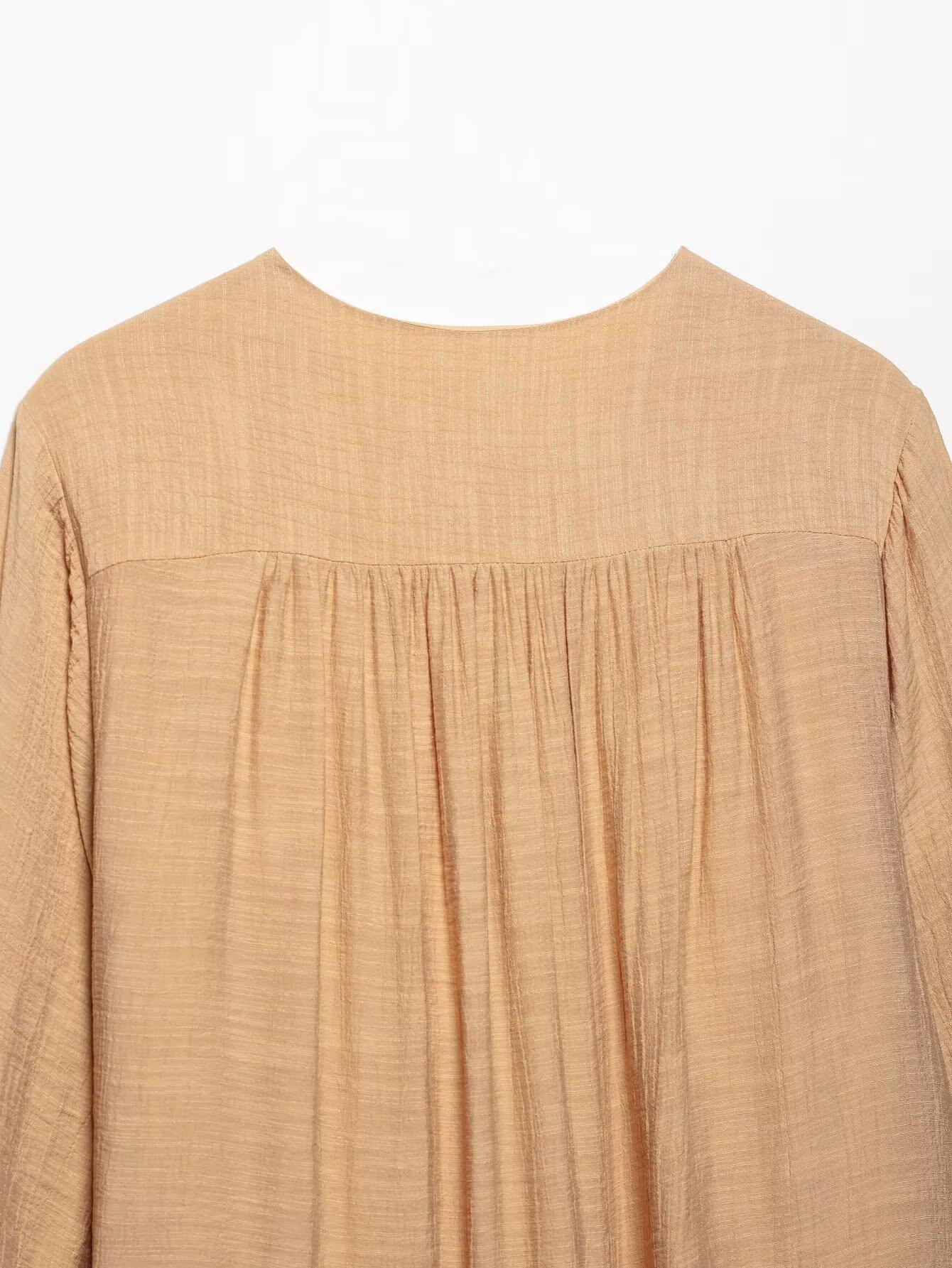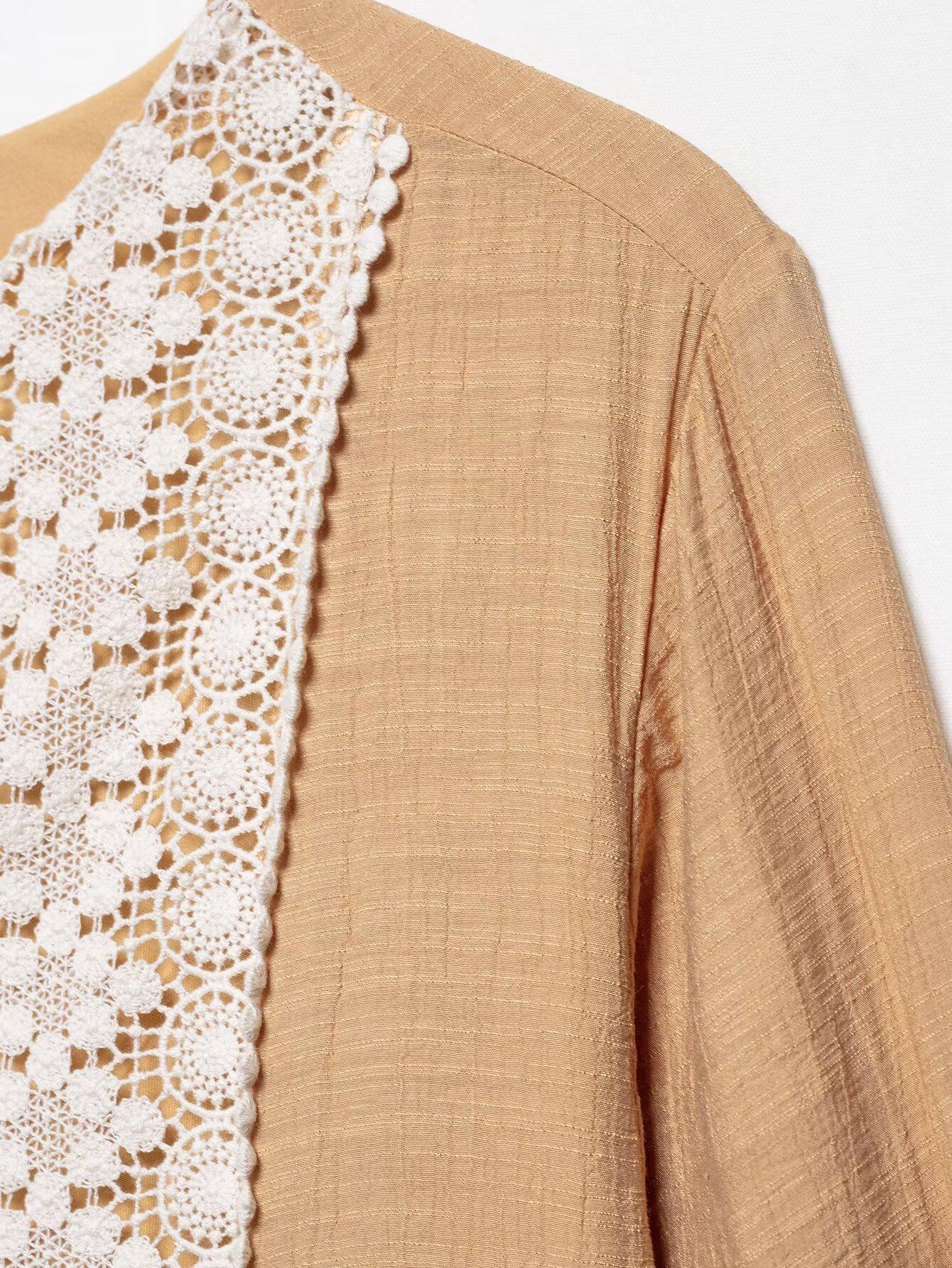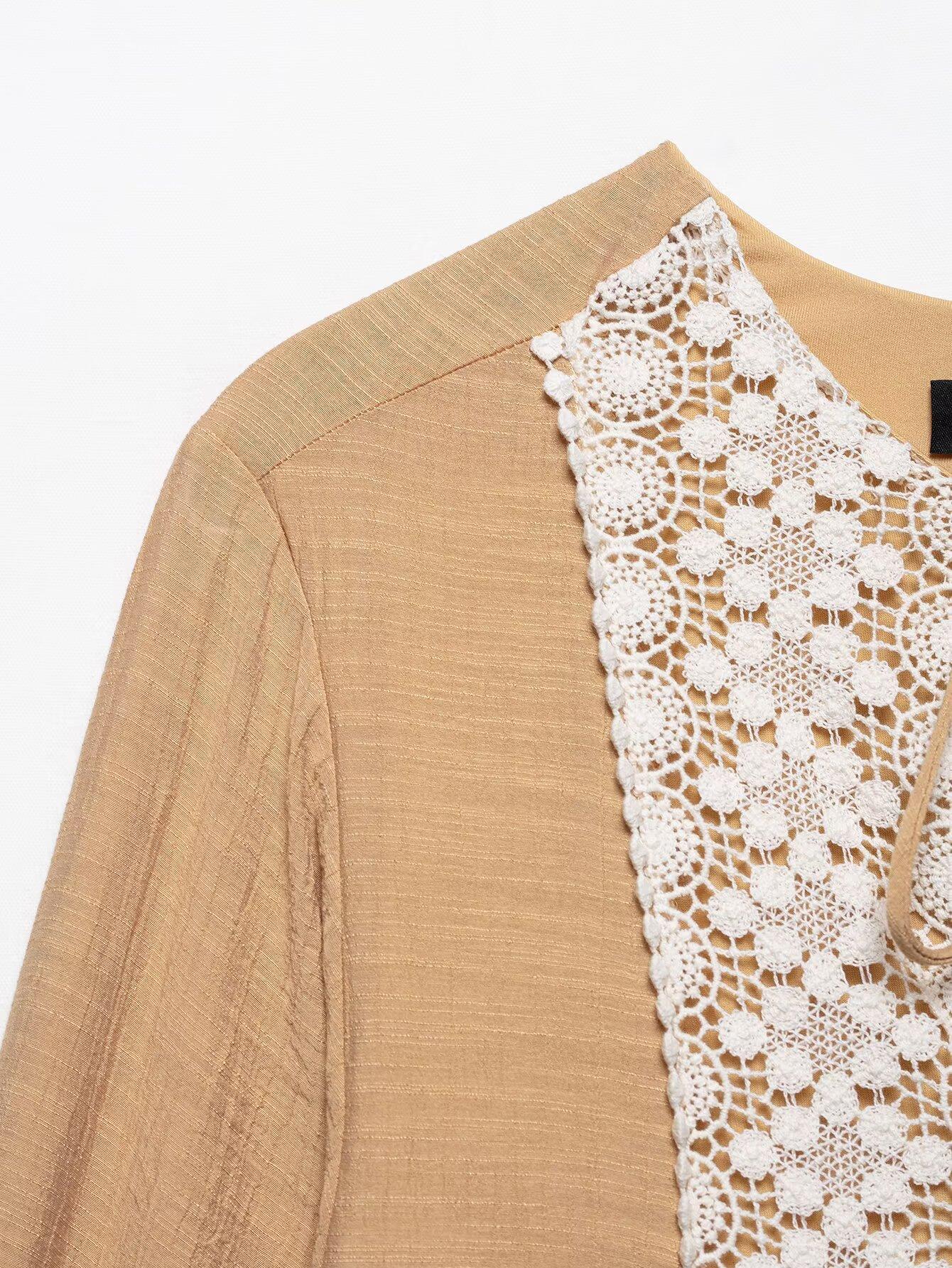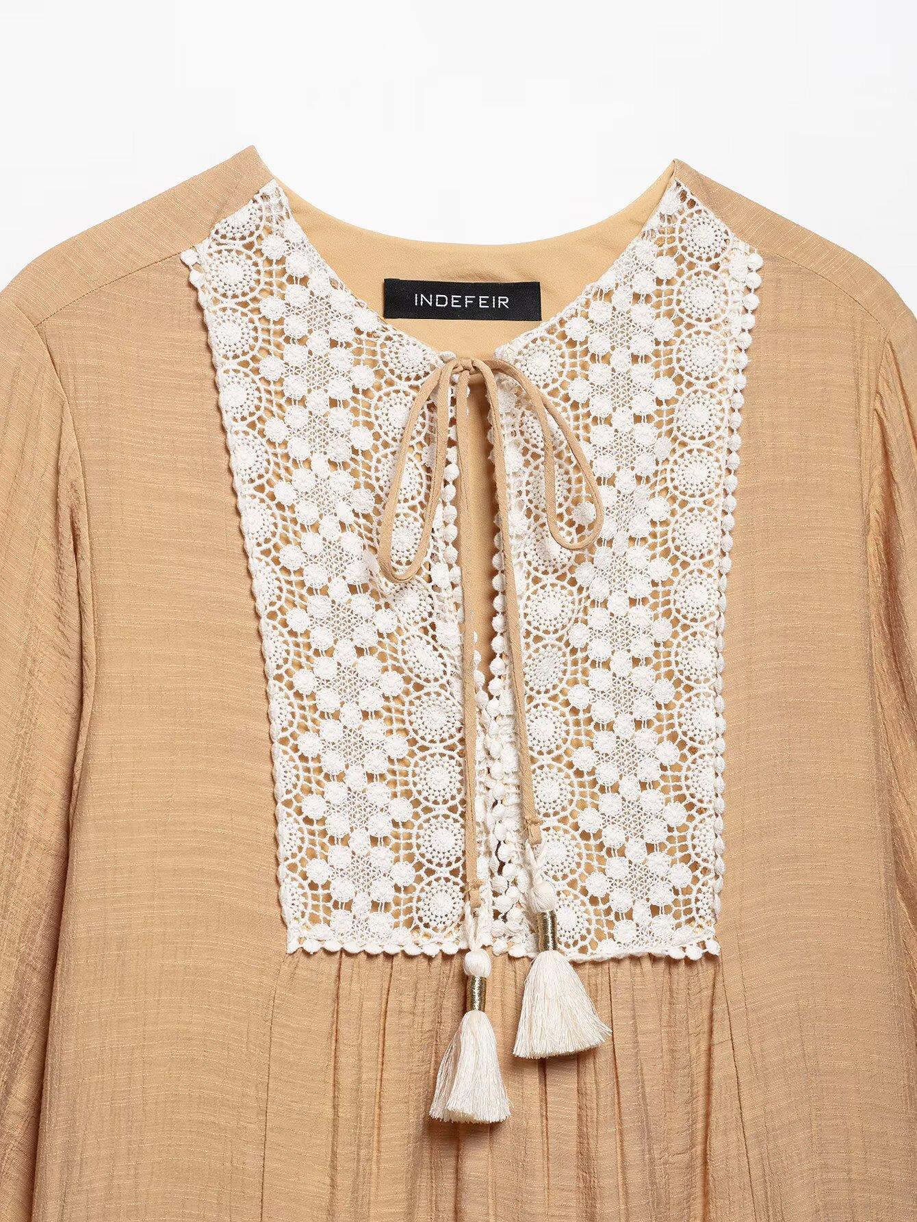 Ropa de Mujer Transfronteriza Europea y Americana 2025 Primavera Nuevo Producto Bordado en Pecho Escote Decorativo con Cordones Vestido Mini Holgado