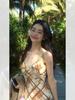 Vestido de Tirantes a Cuadros Tono Retro para Mujer Estilo Francés Estampado Falda Larga Vacaciones Vestido Chaleco