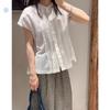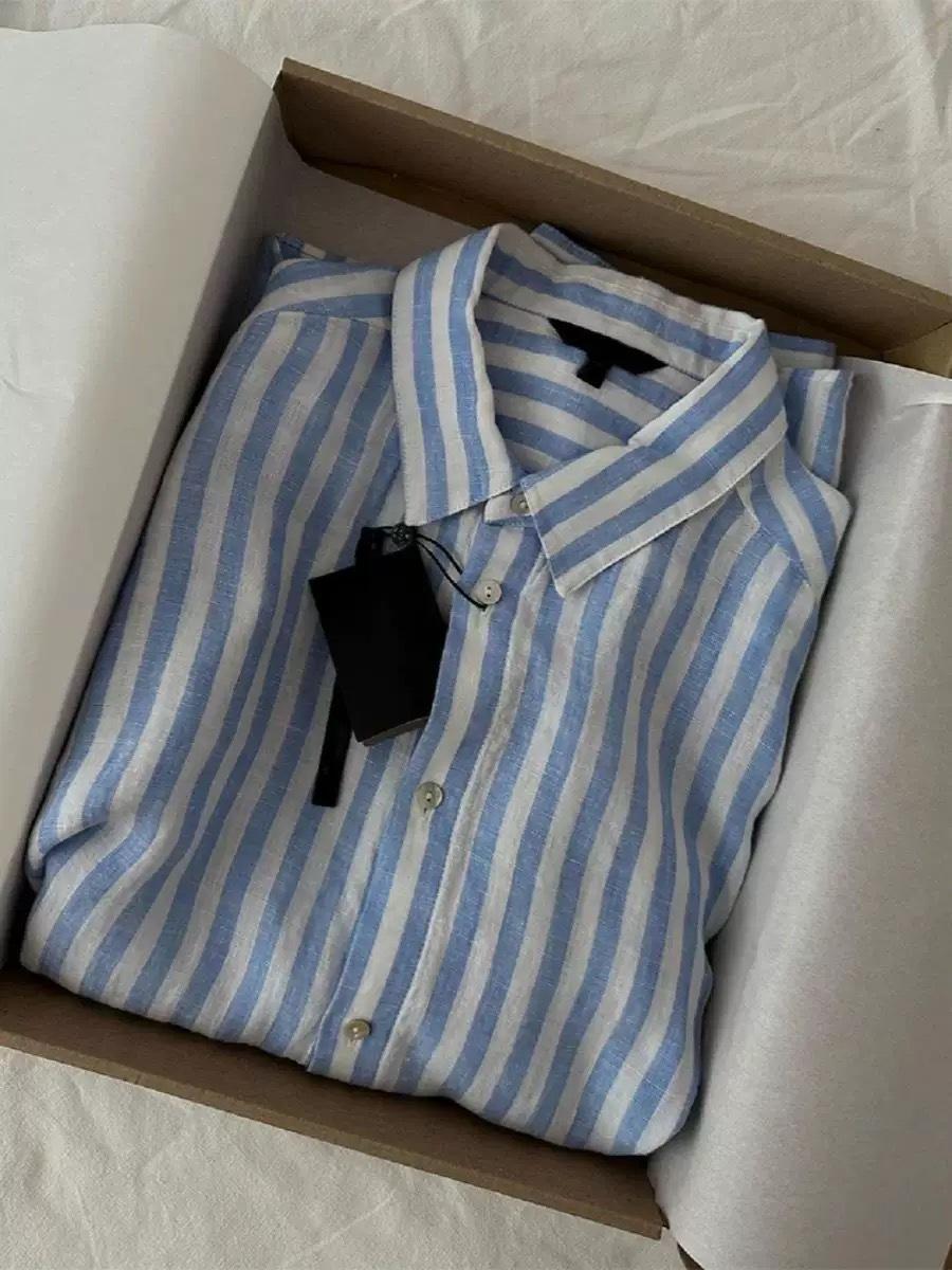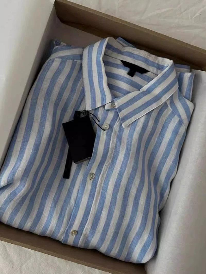Liquidación de Hallazgos~ Productos Asombrosos, Ofertas Enormes! Camisa de Lino de Alto Conteo de Hilos Elegante y a la Moda de Rayas Azules de Este Año para Mujer