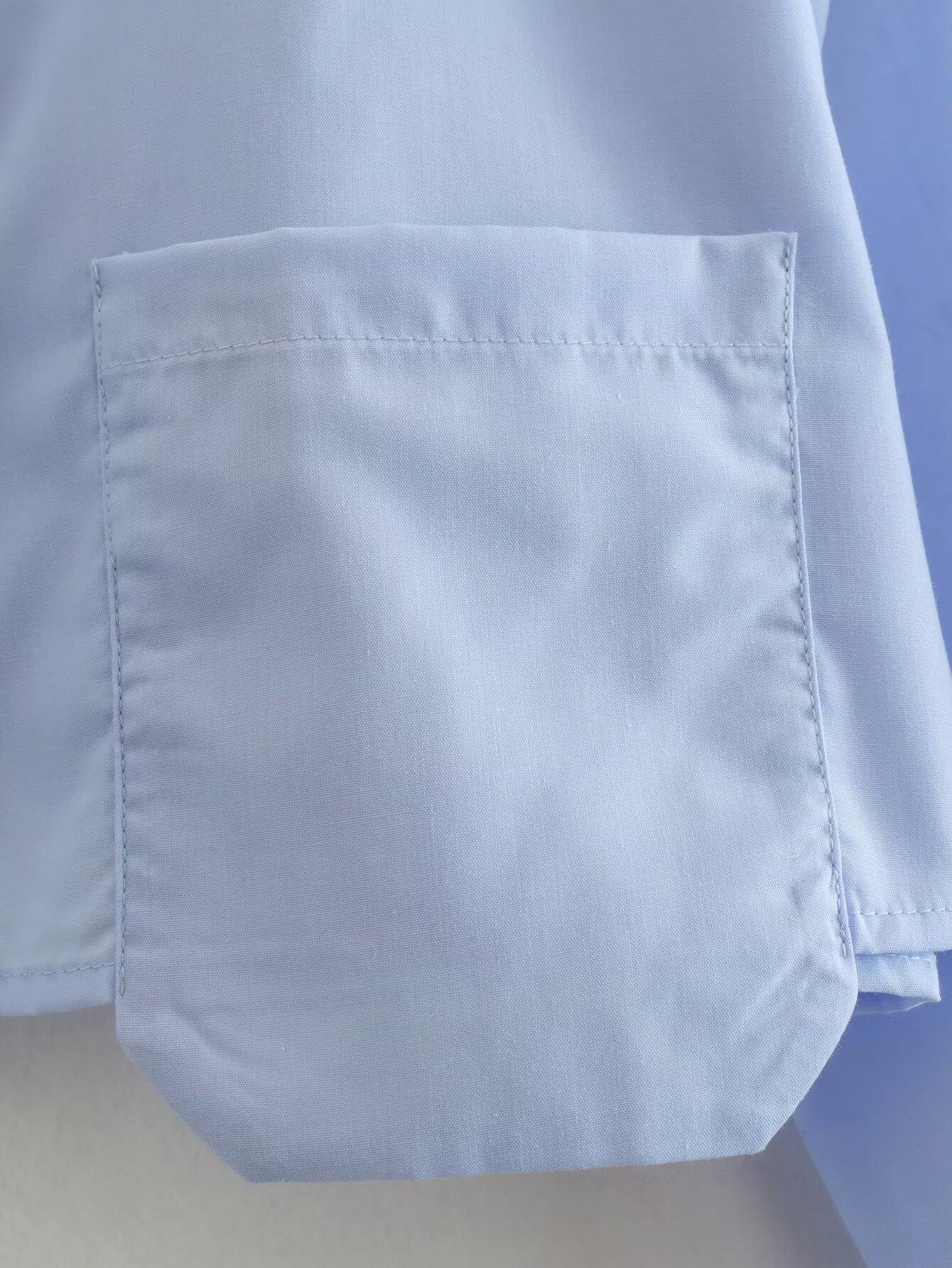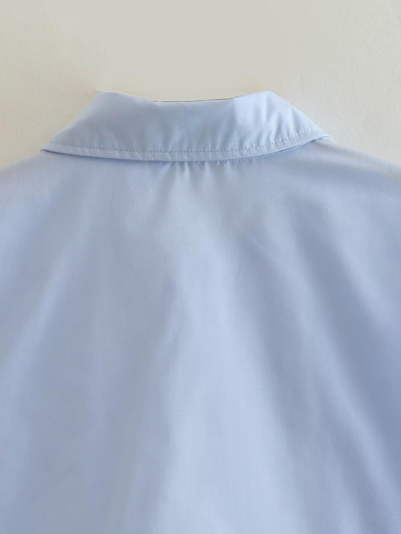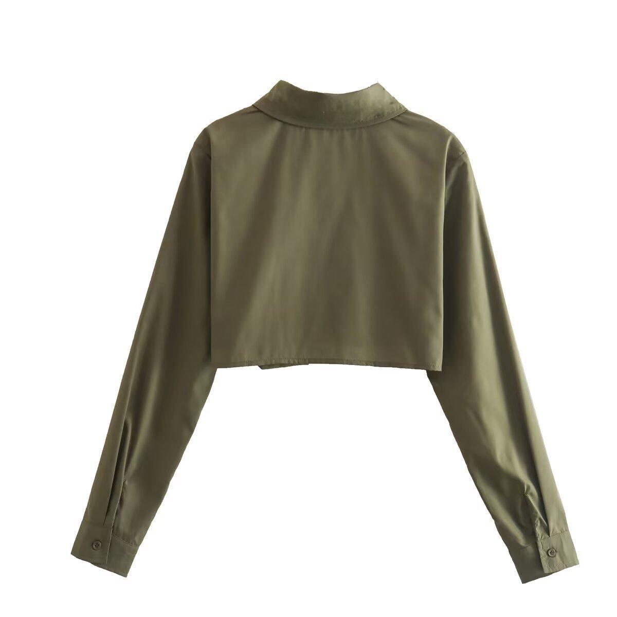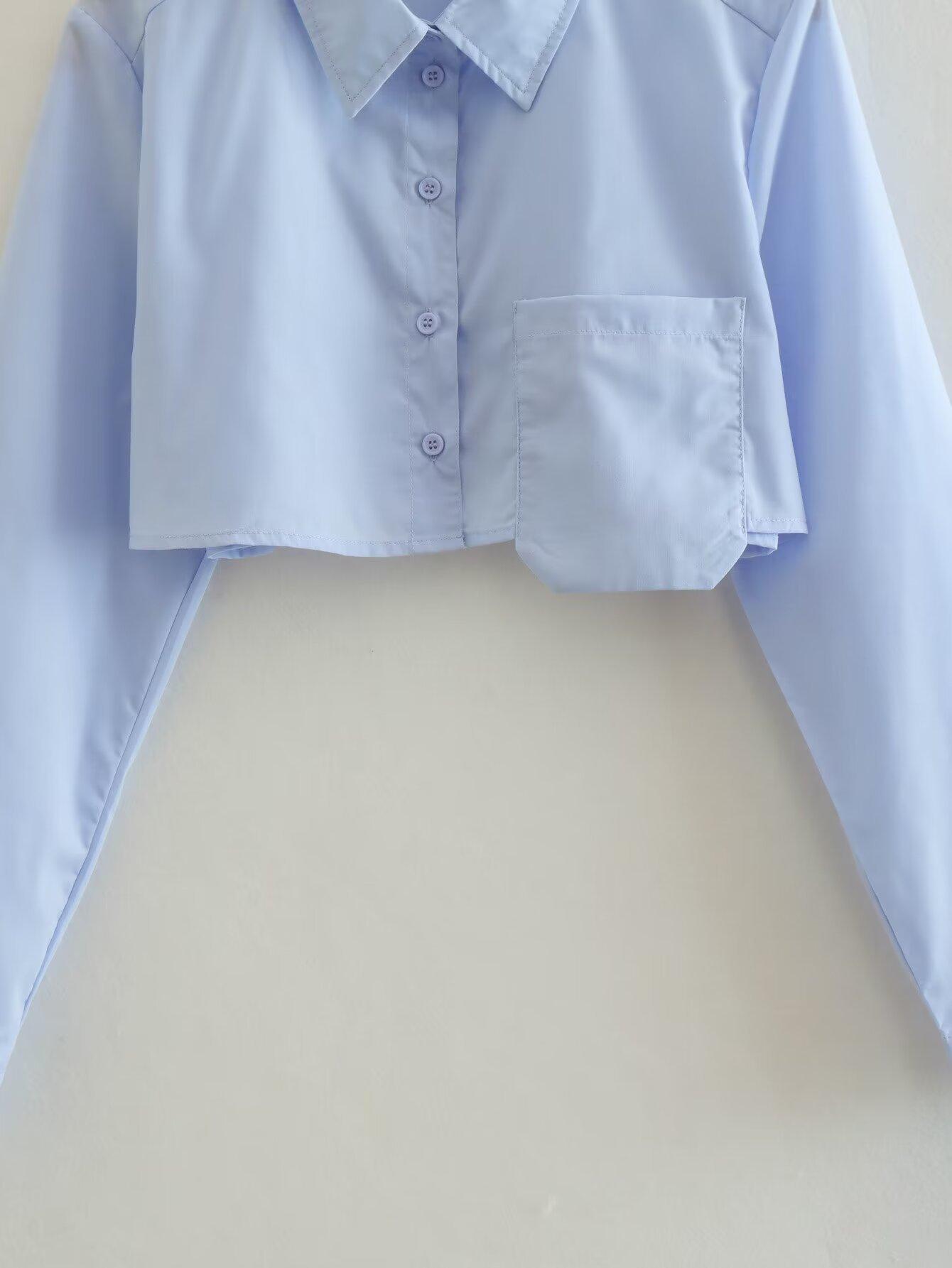 Primavera 2024 Nueva Llegada Moda Casual Transfronteriza Europea y Americana para Mujer Camisa Corta con Decoración de Bolsillo