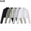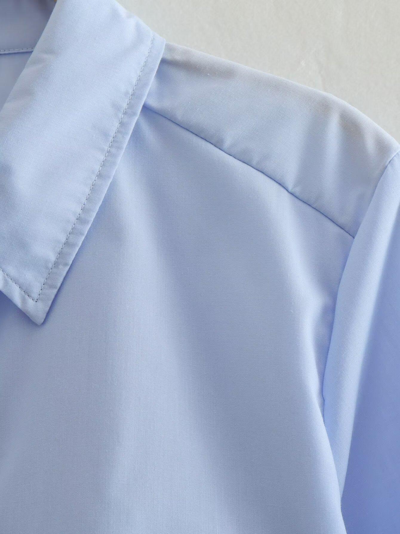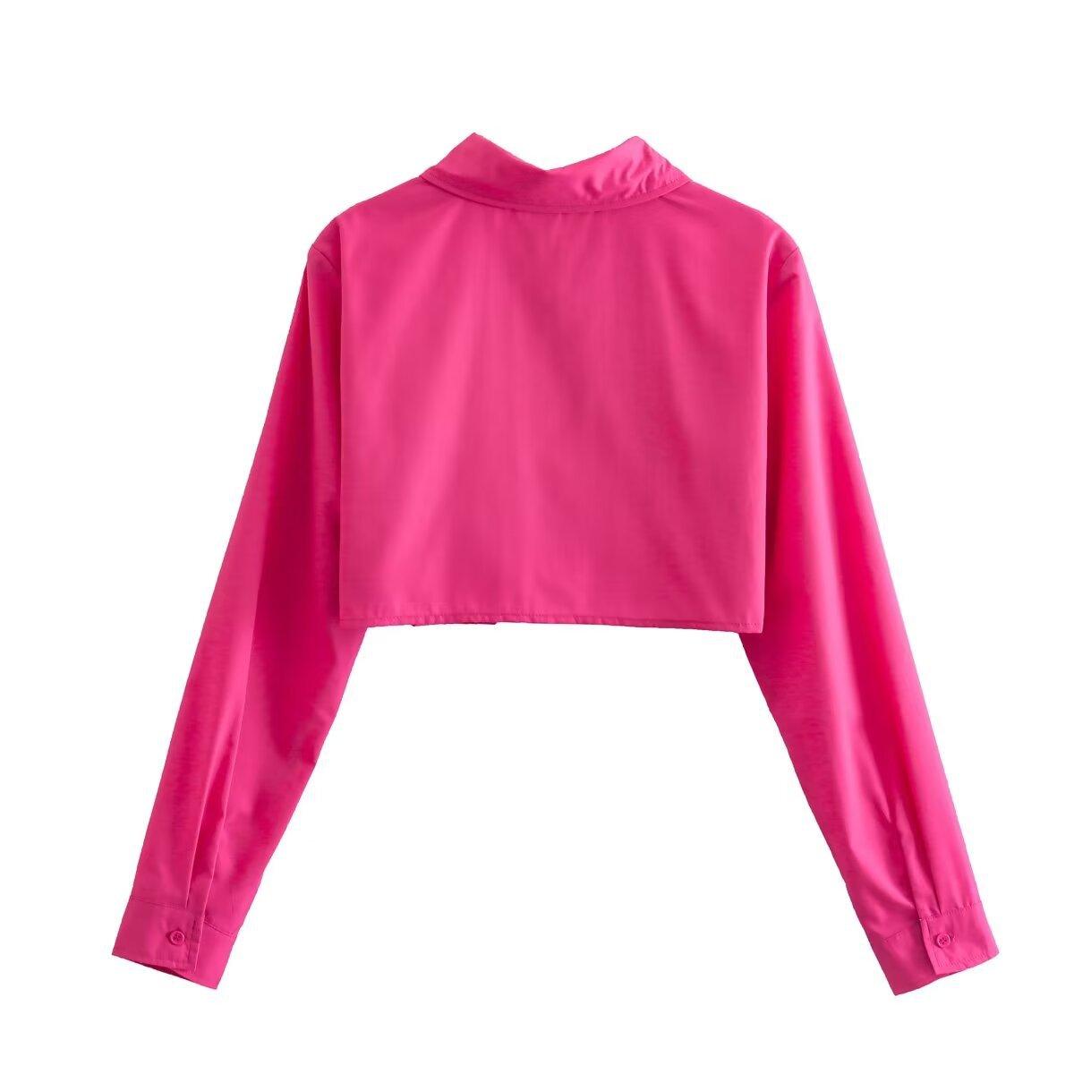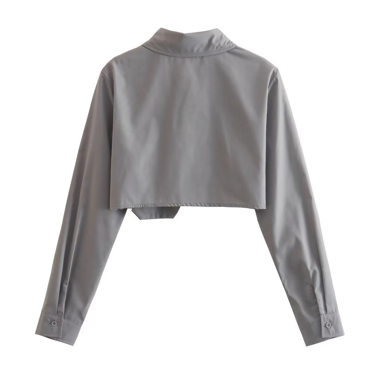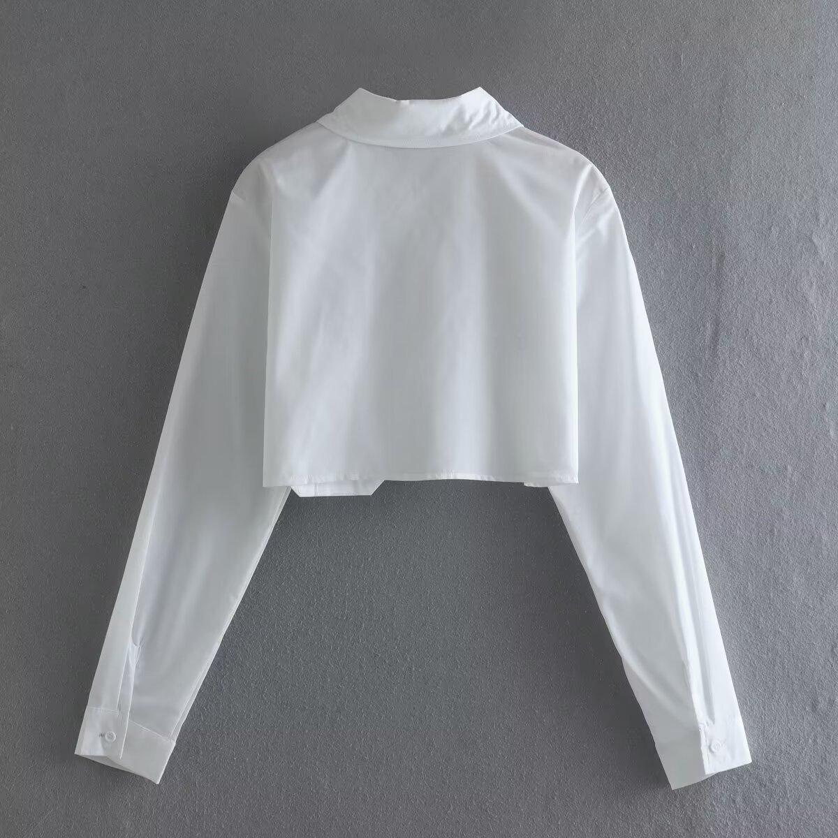 Primavera 2024 Nueva Llegada Moda Casual Transfronteriza Europea y Americana para Mujer Camisa Corta con Decoración de Bolsillo