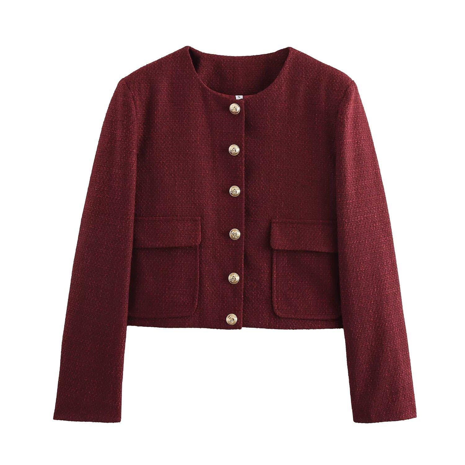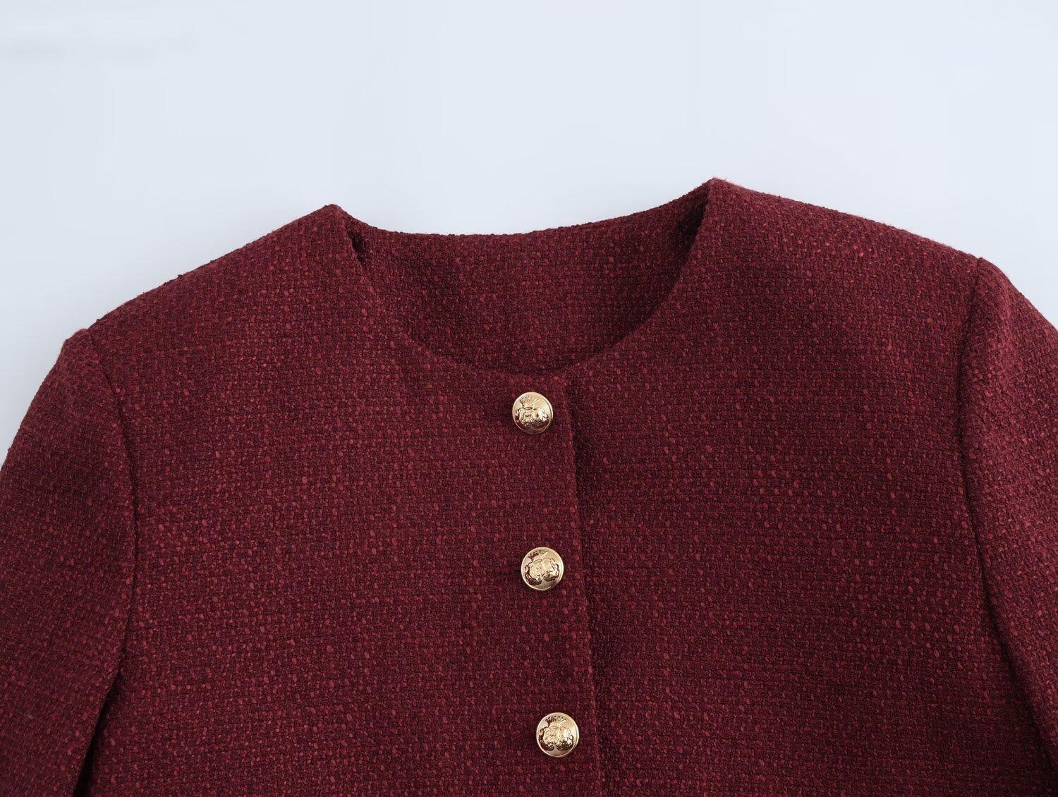 Traje temperamento 2024 estilo pequeño nuevo cuello redondo grueso imitación chaqueta abrigo falda cadera comercio exterior mujer mayoreo