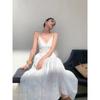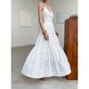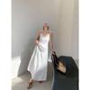 Verano 2025 Look Adelgazante de Cintura Falda Larga Femenina Elegante Blanco Roto Estilo Vacacional Vestido de Tirantes Sin Mangas para Mujer